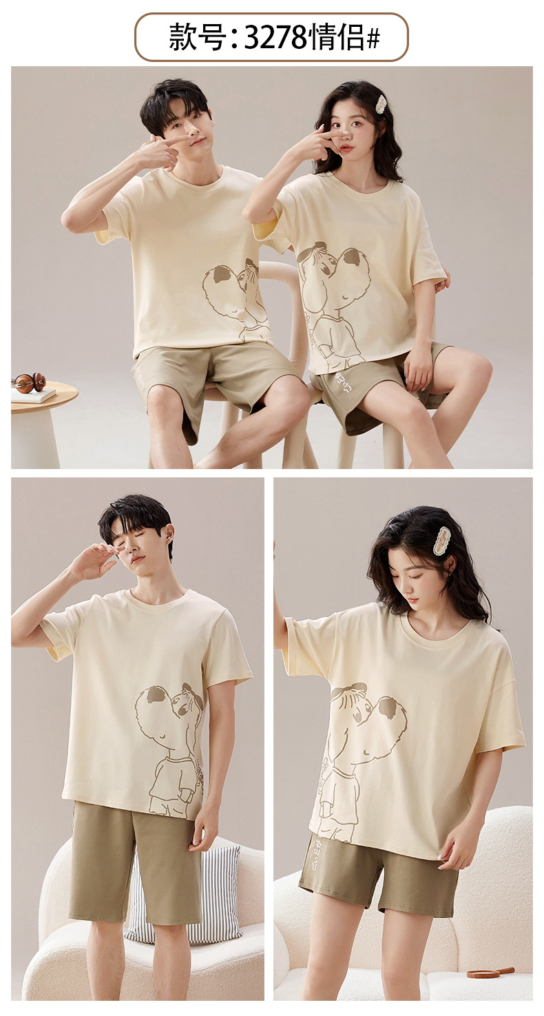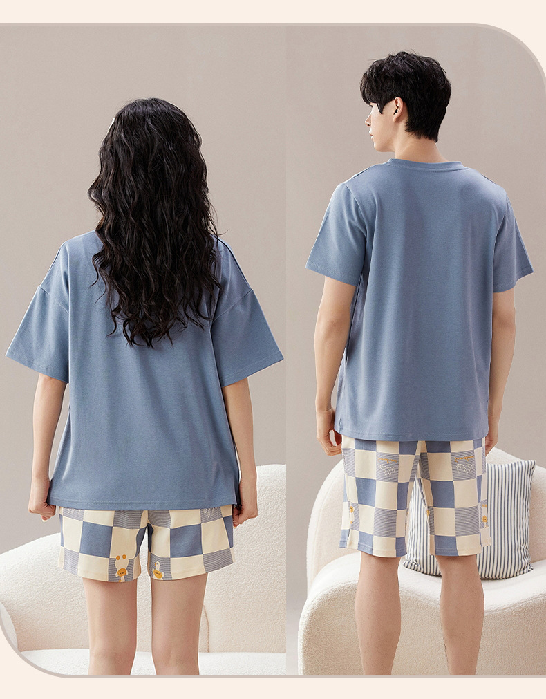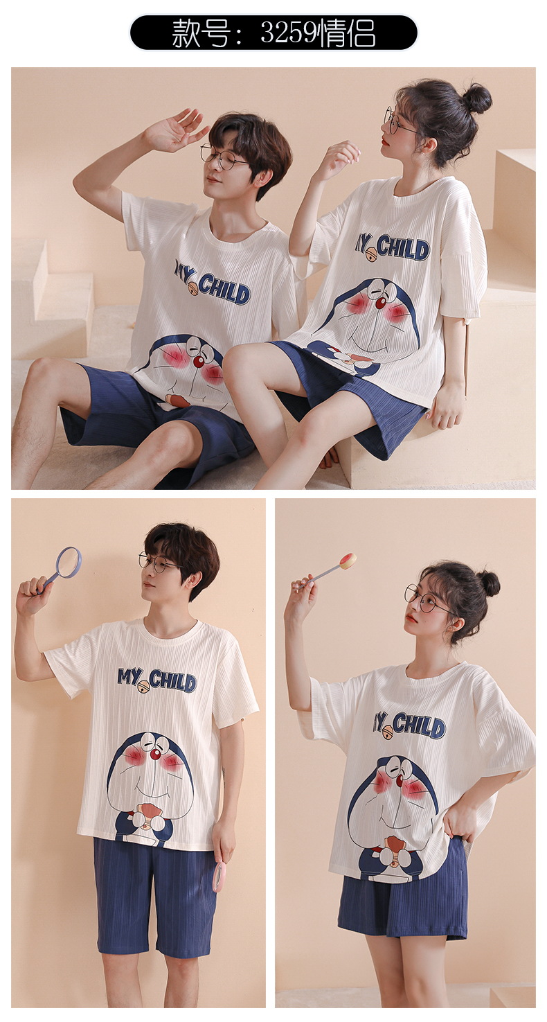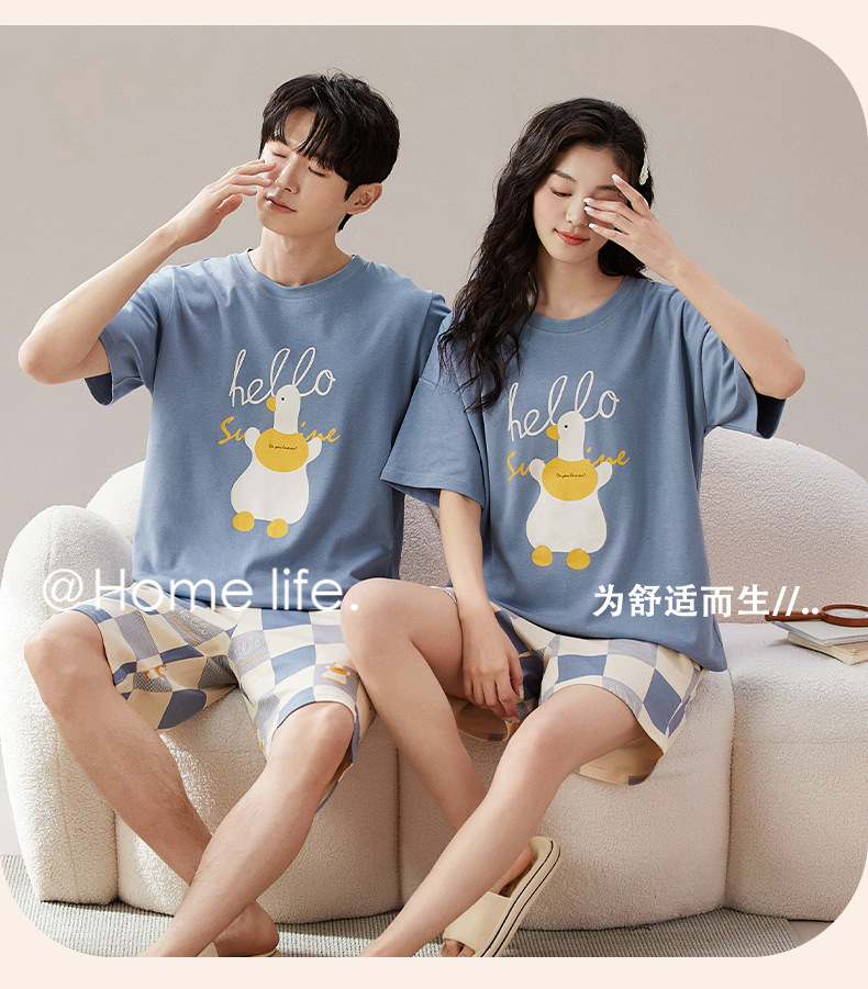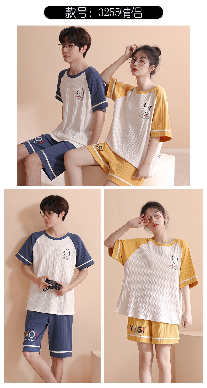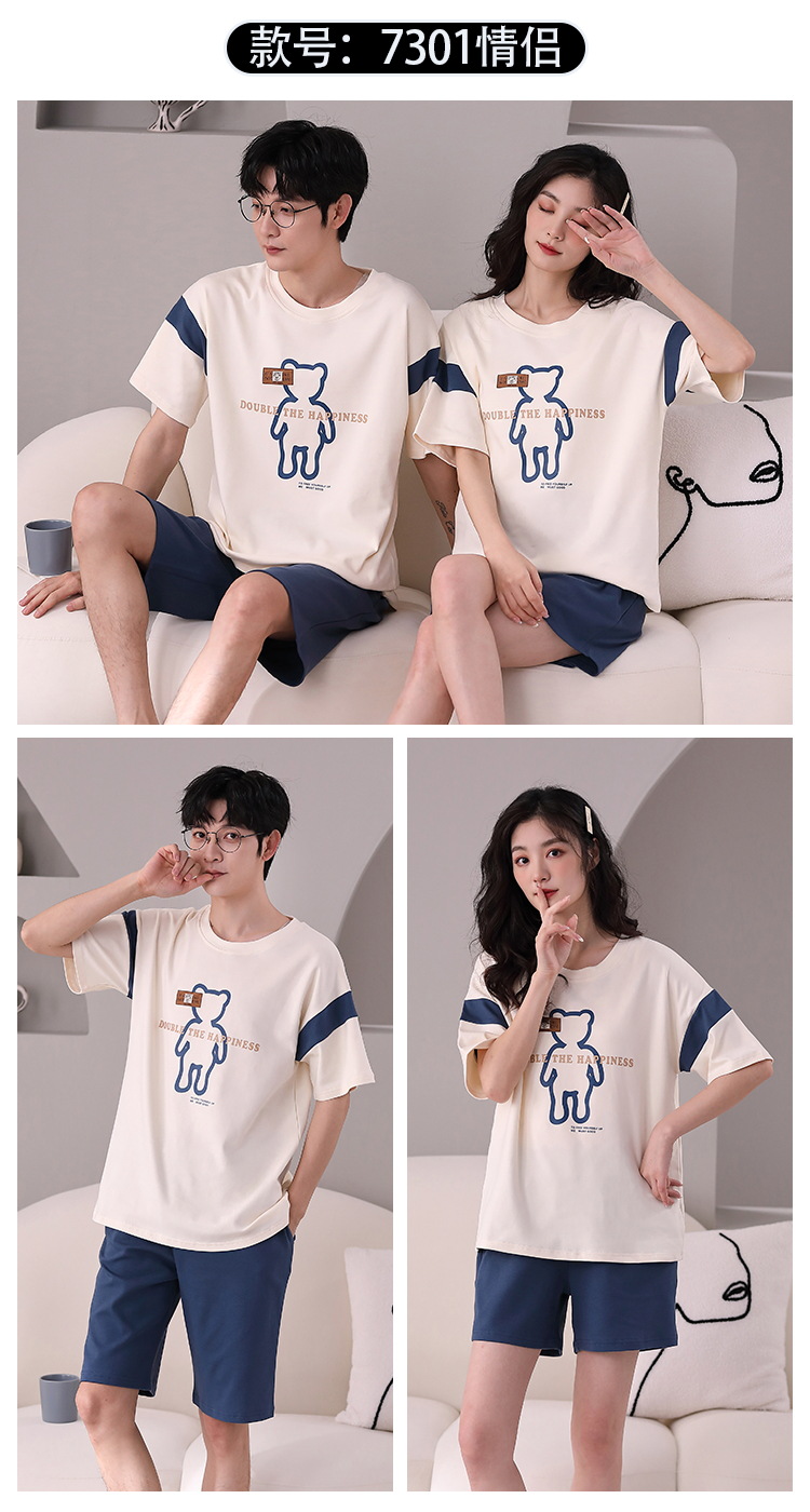 【像云朵一样软绵绵~】情侣睡衣 女夏季短袖短裤 新款套装 简约宽松男士家居服 无印可外穿睡衣-QQ