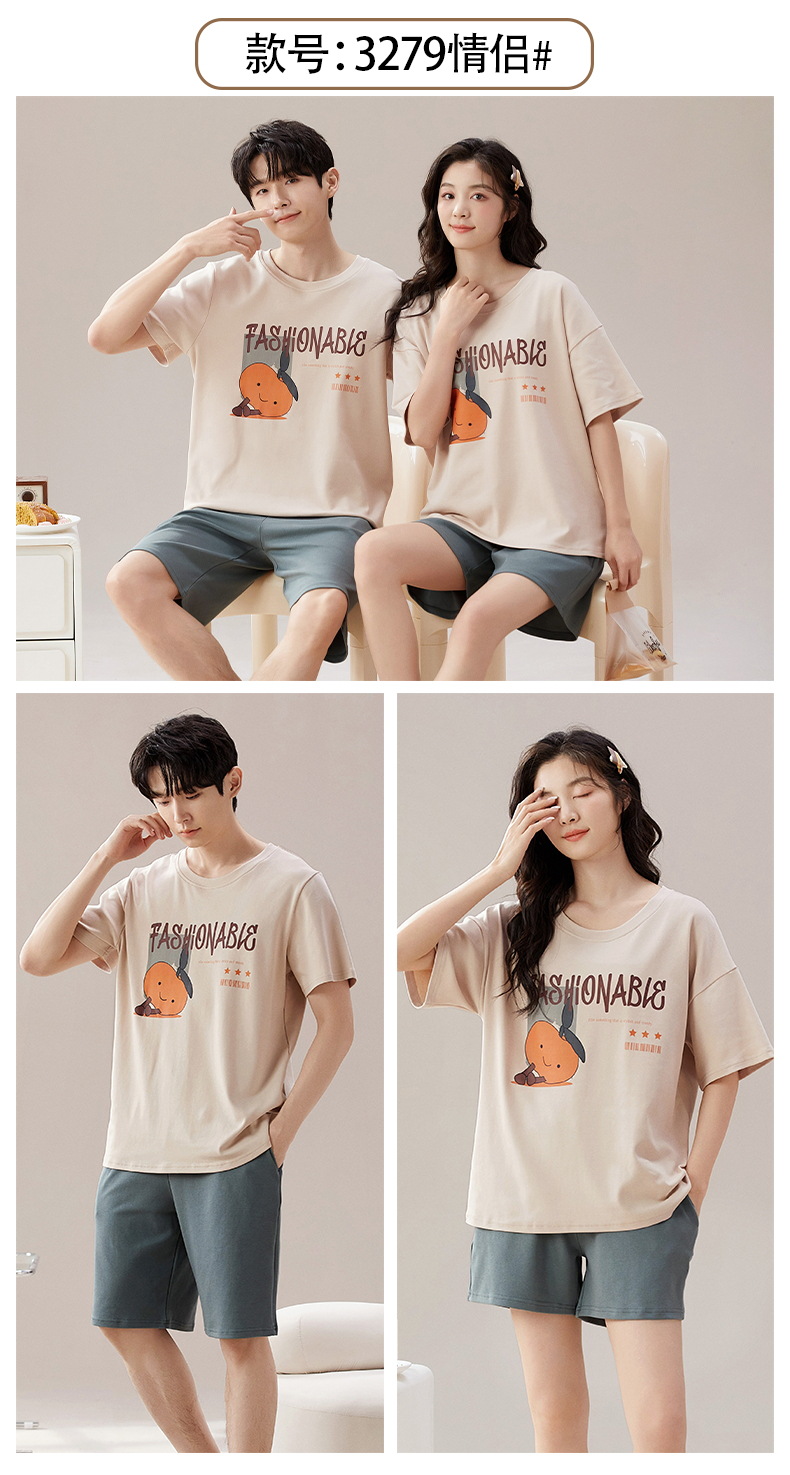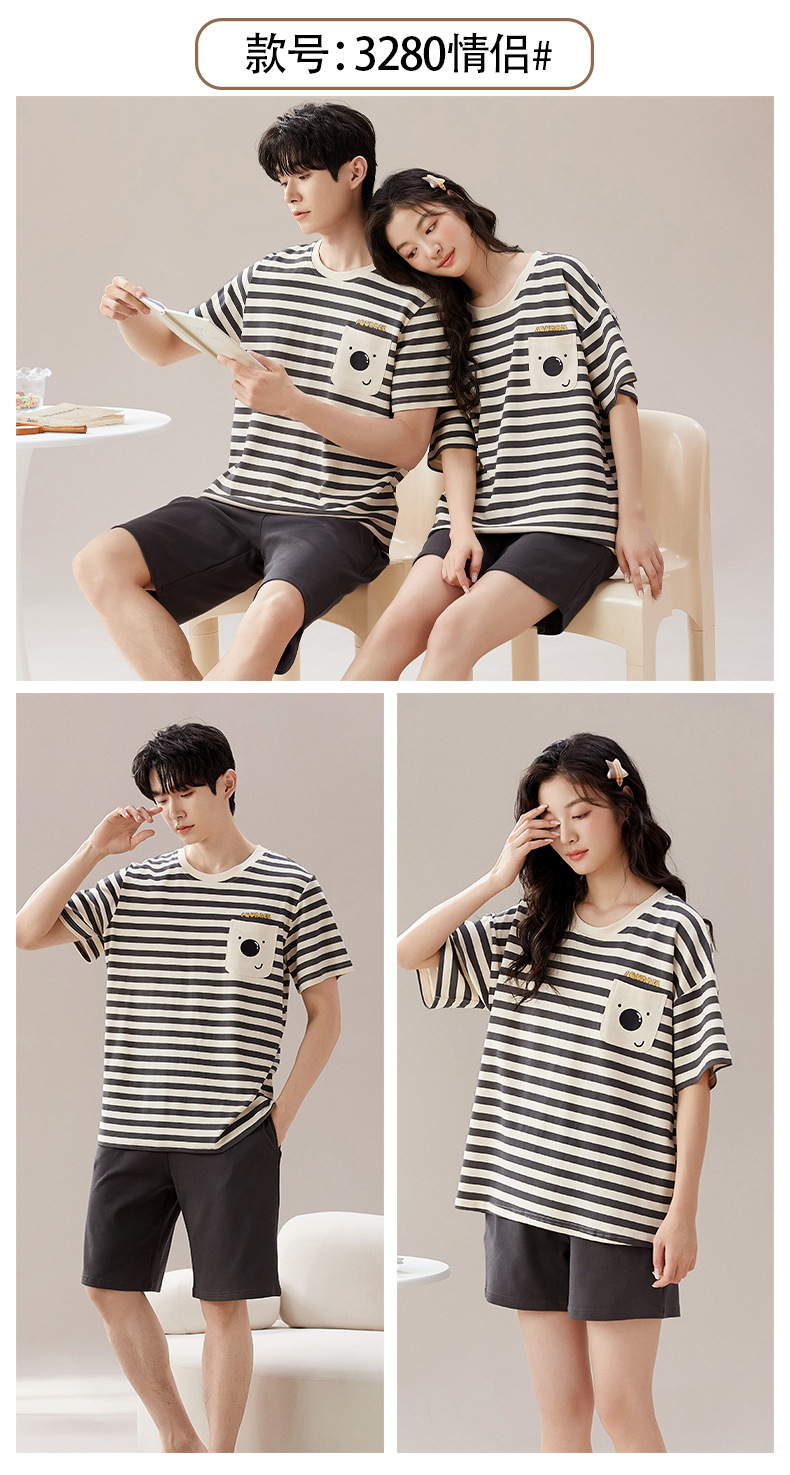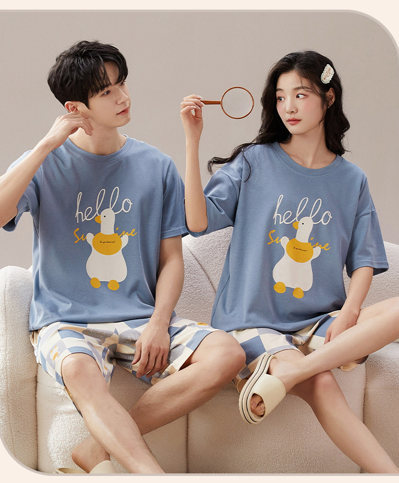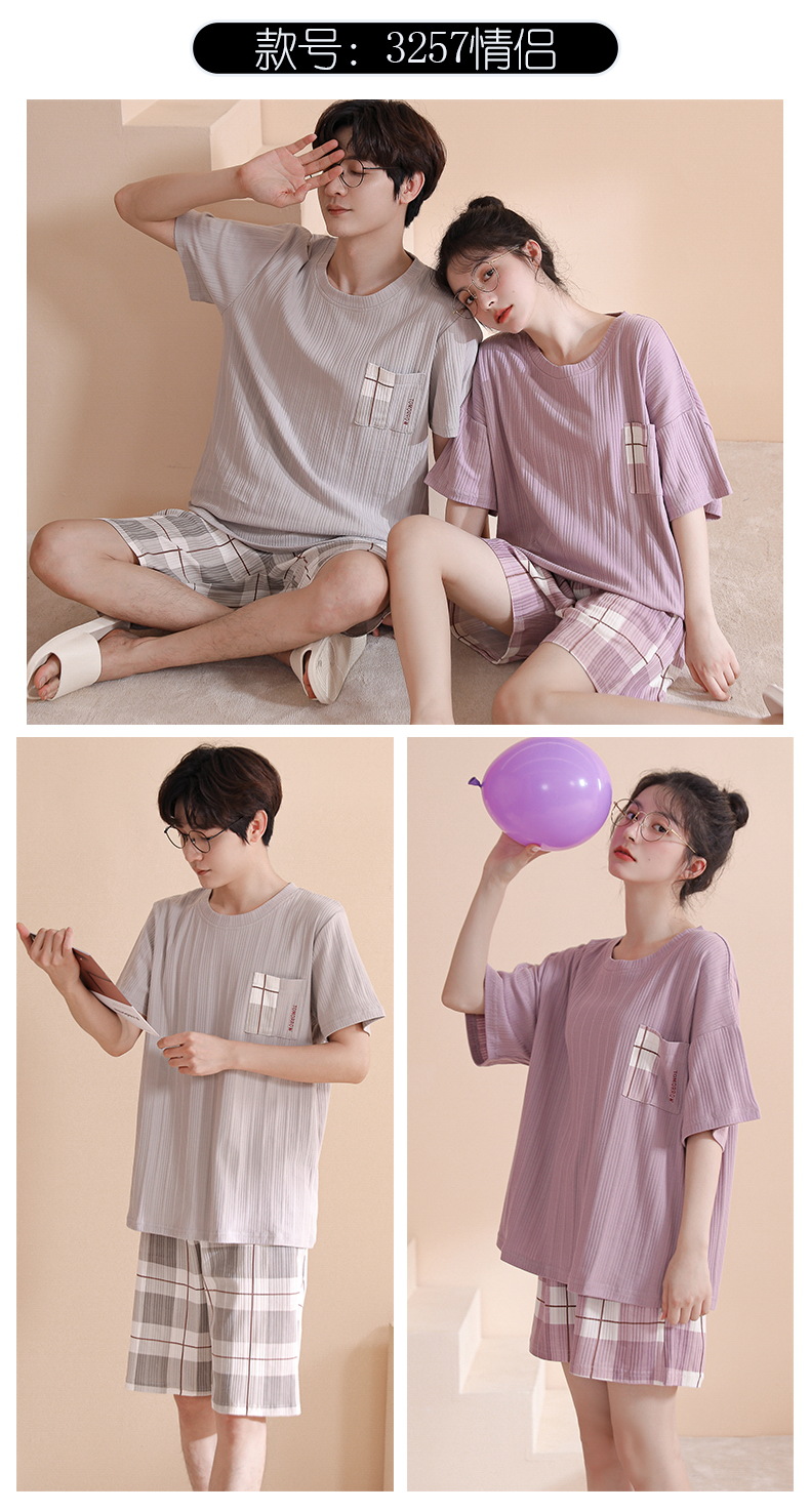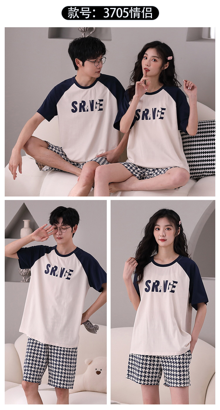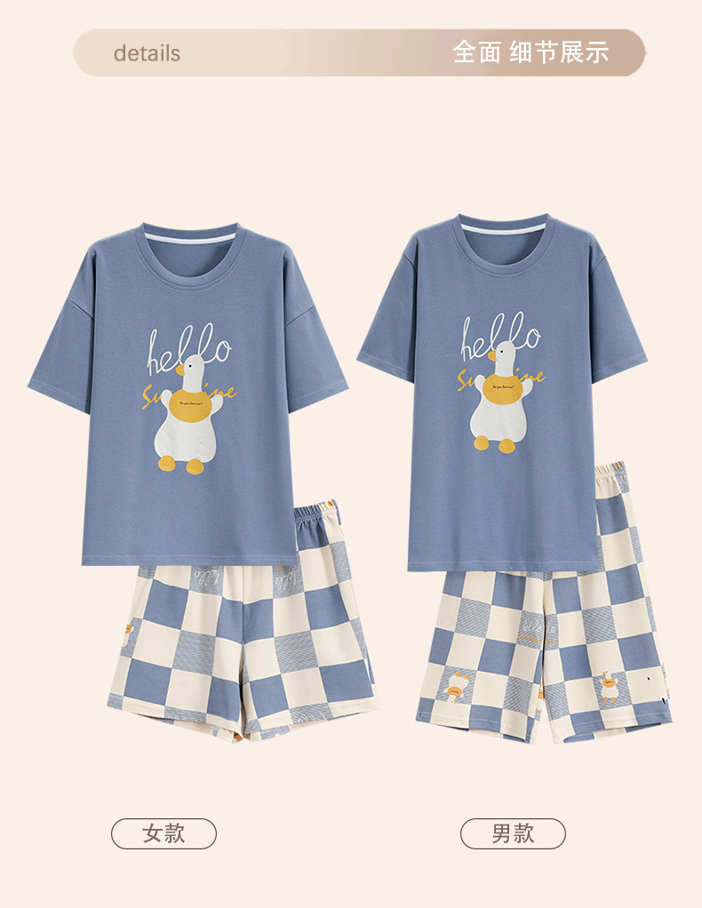 【像云朵一样软绵绵~】情侣睡衣 女夏季短袖短裤 新款套装 简约宽松男士家居服 无印可外穿睡衣-QQ