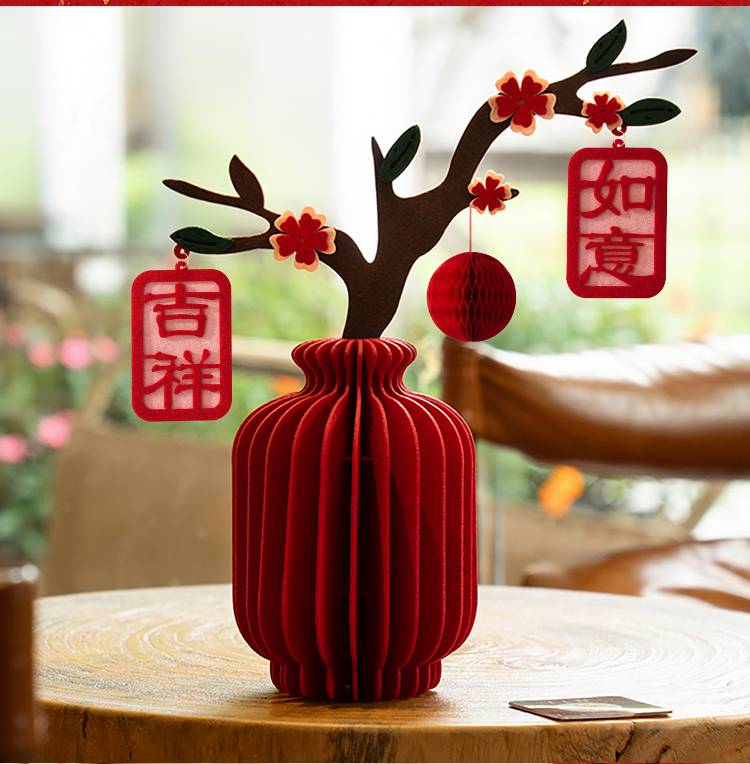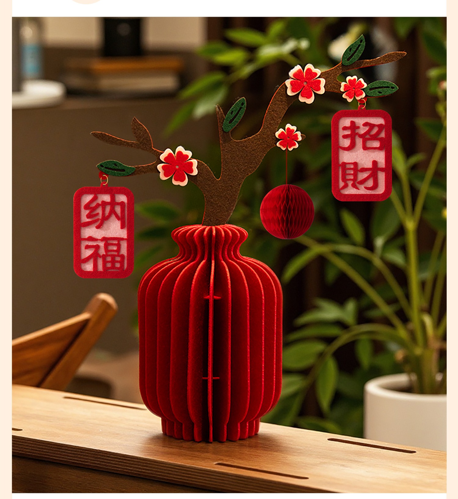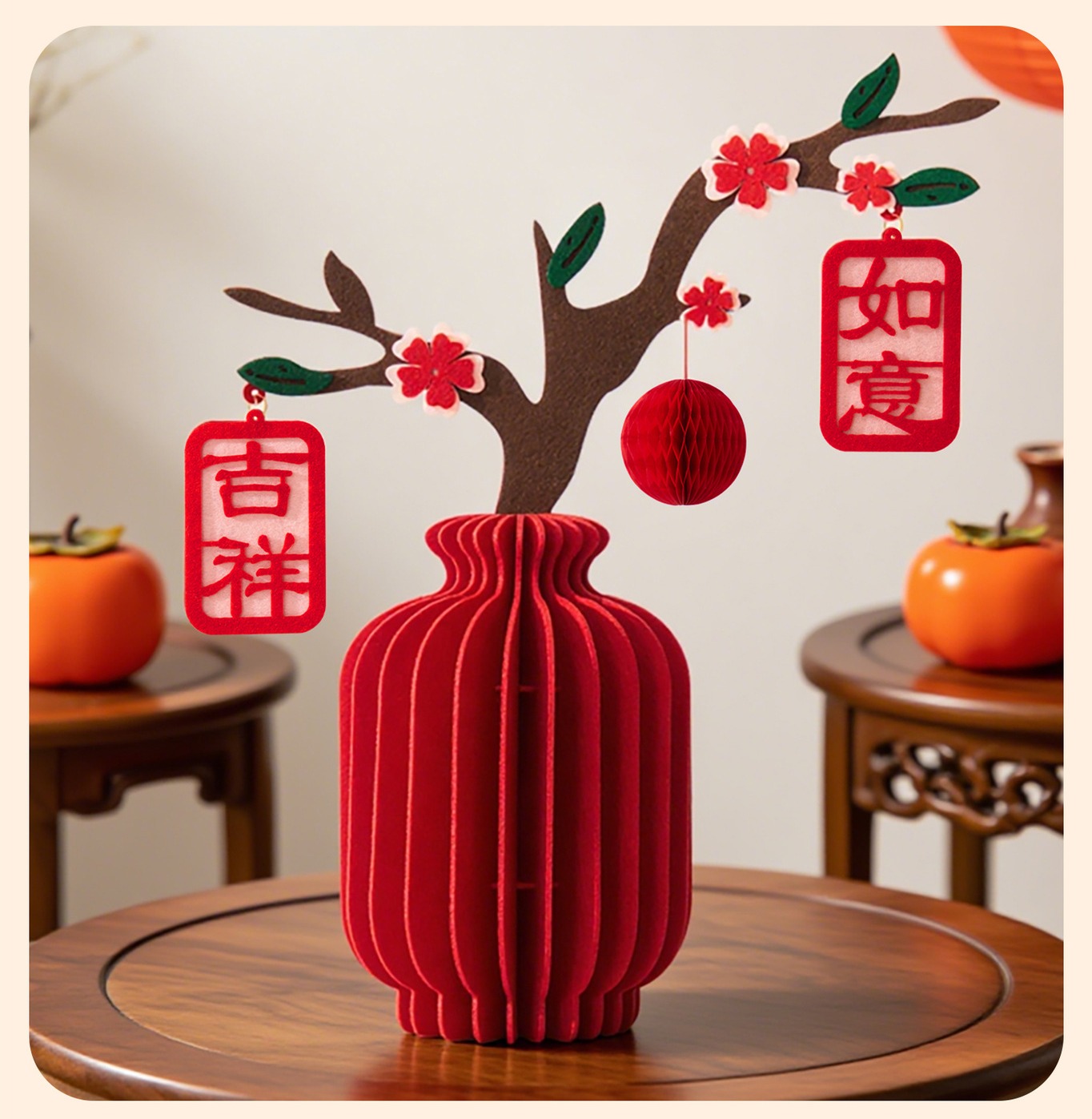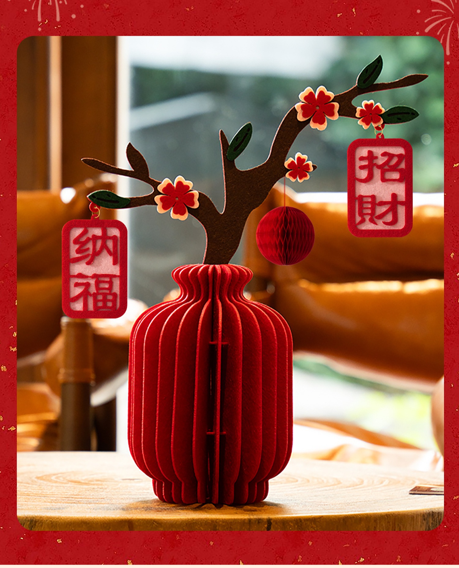 【新年DIY毛毡桌花】2026马年春节喜庆毛毡花瓶摆件