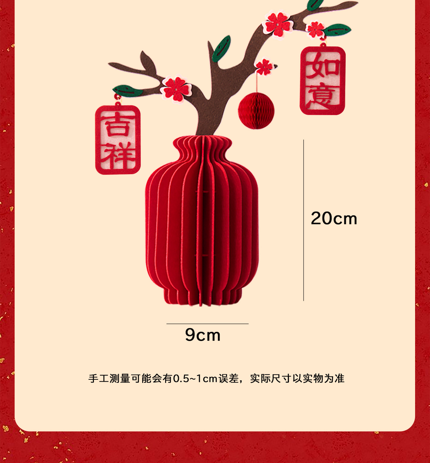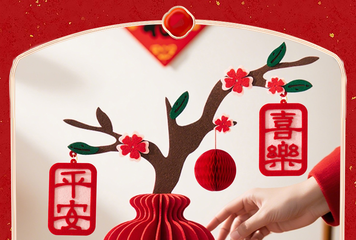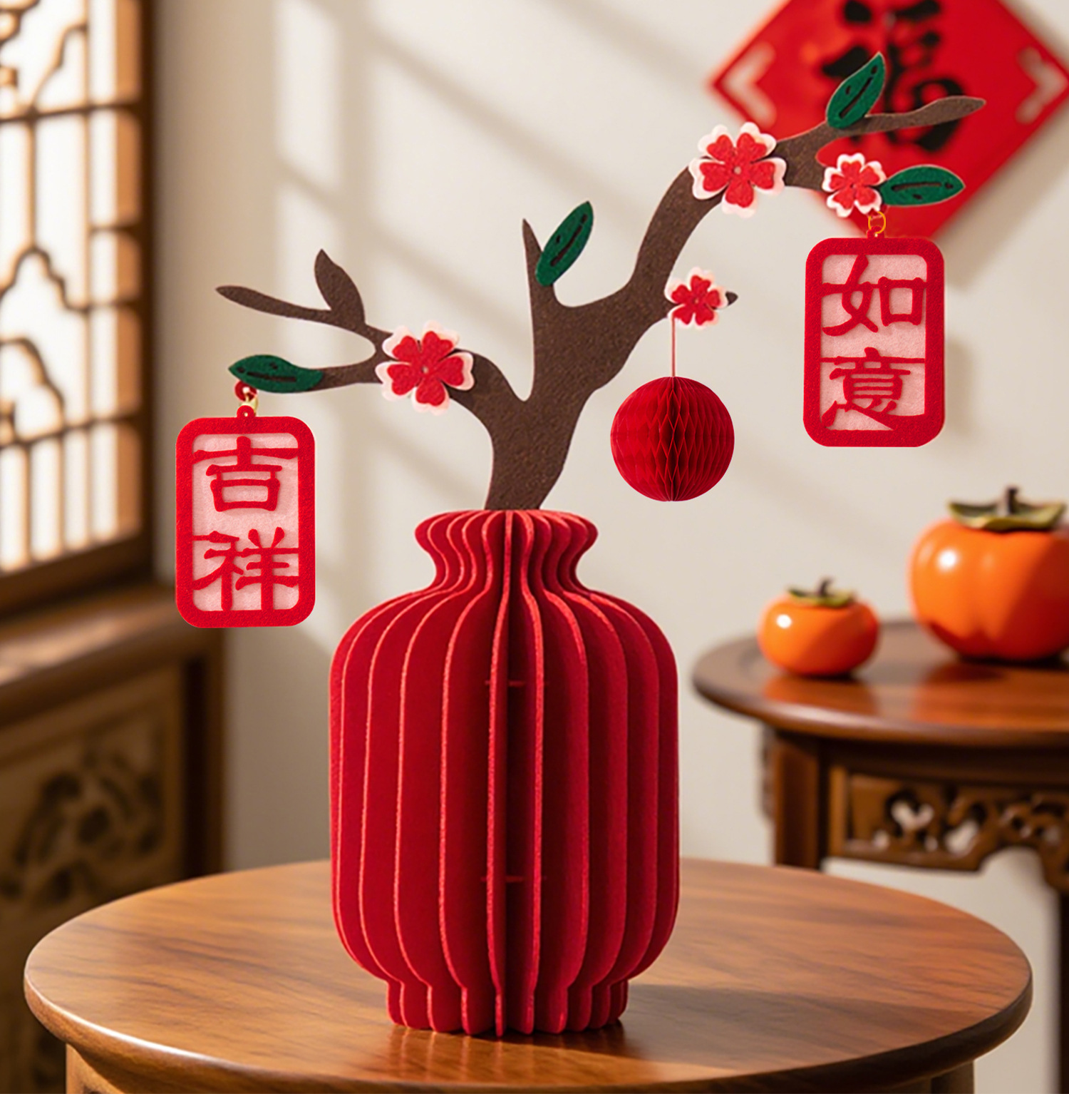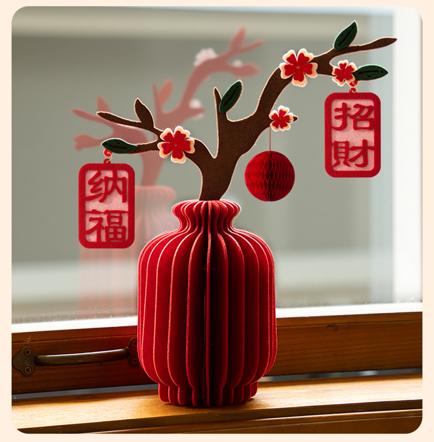 【新年DIY毛毡桌花】2026马年春节喜庆毛毡花瓶摆件