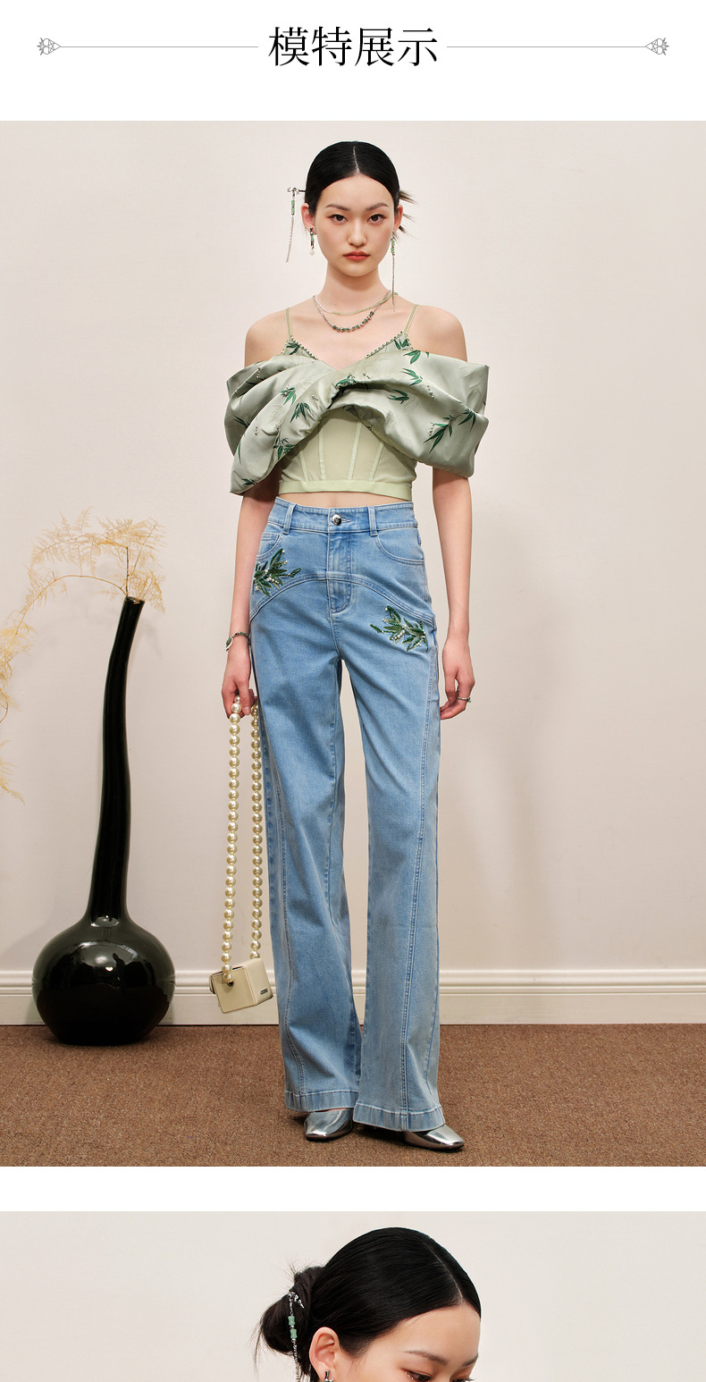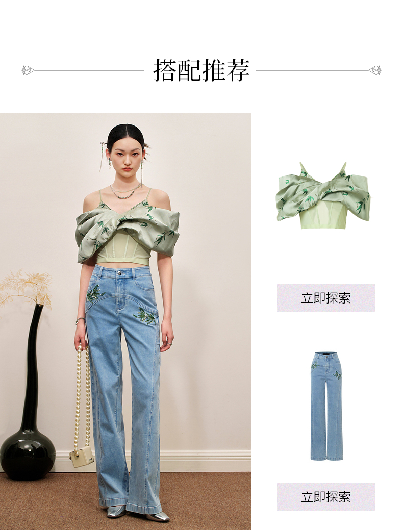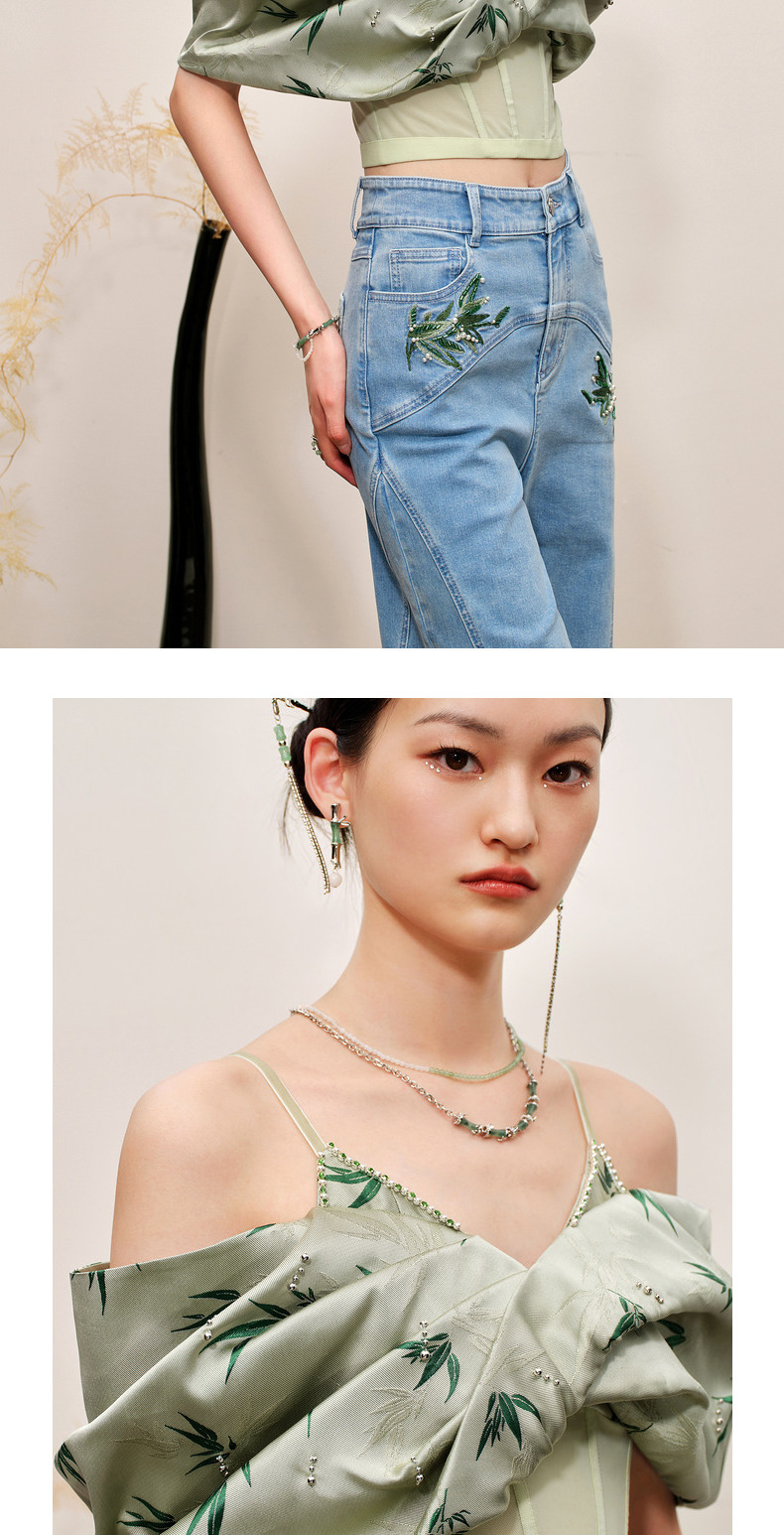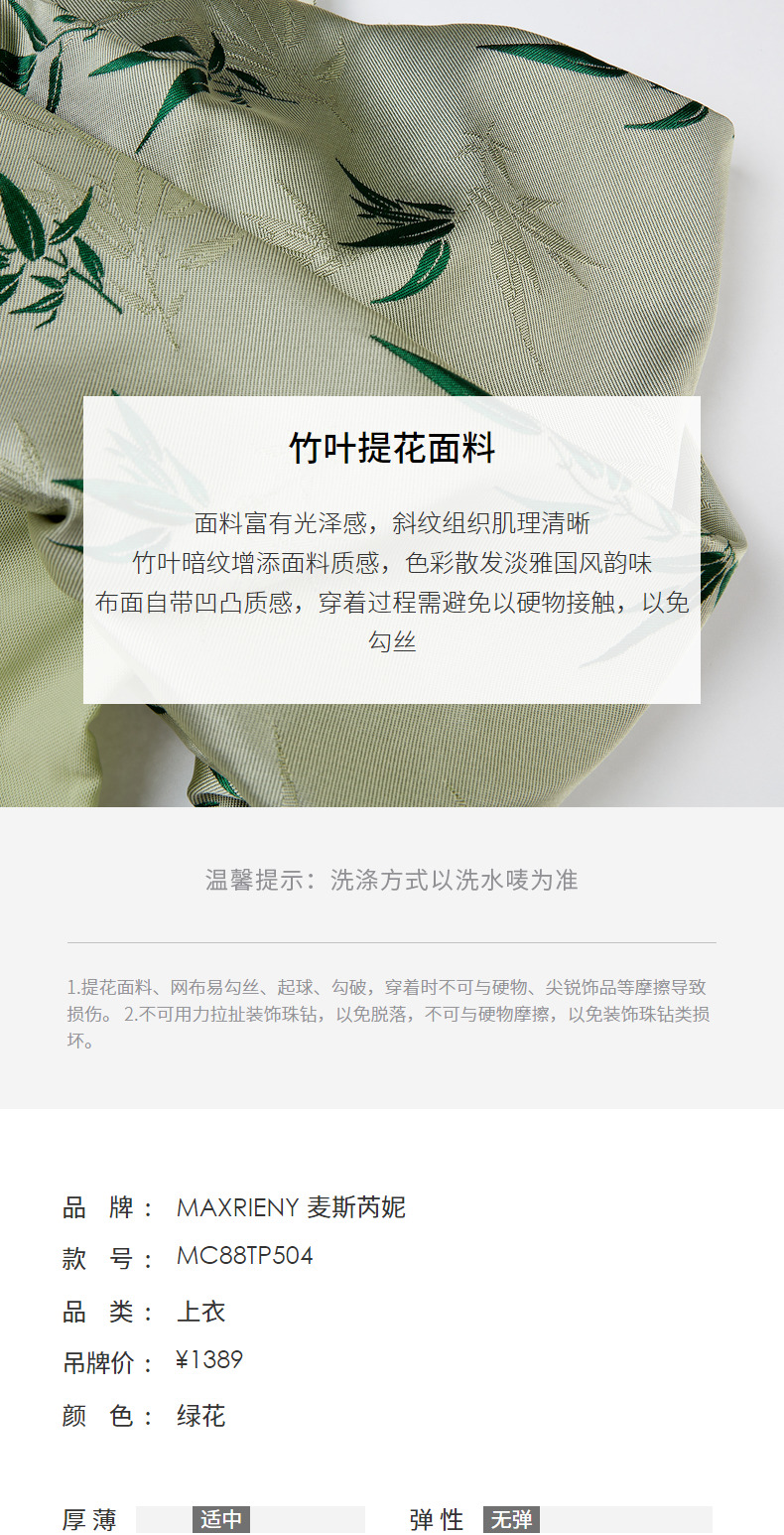 MAXRIENY新中式竹叶提花吊带上衣雪纺衫薄荷曼波风(货号:MC88TP504)