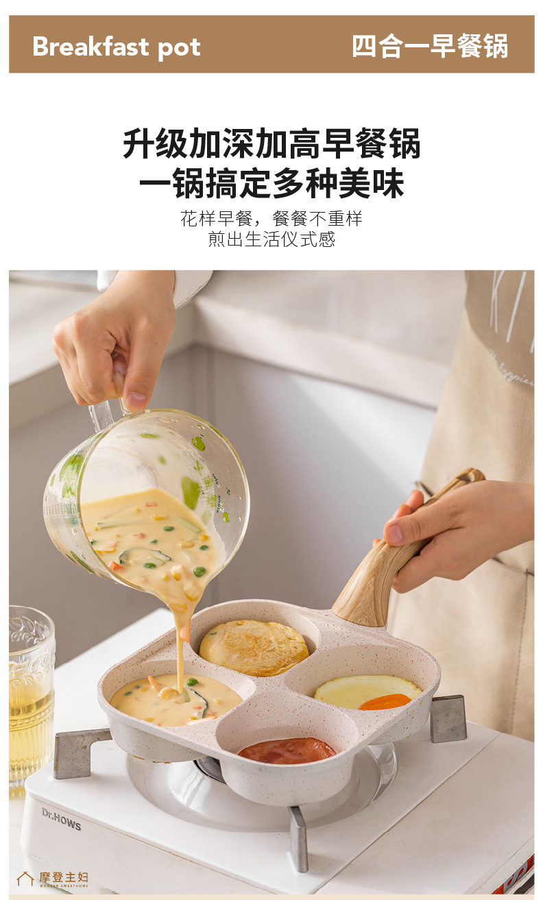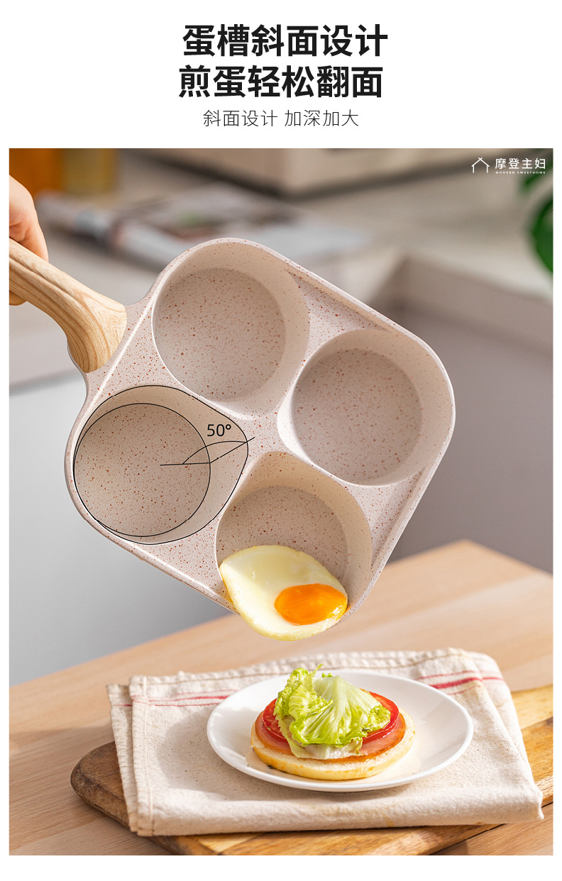摩登主妇鸡蛋汉堡锅加深四孔煎锅早餐锅煎蛋神器家用不粘锅煎蛋锅