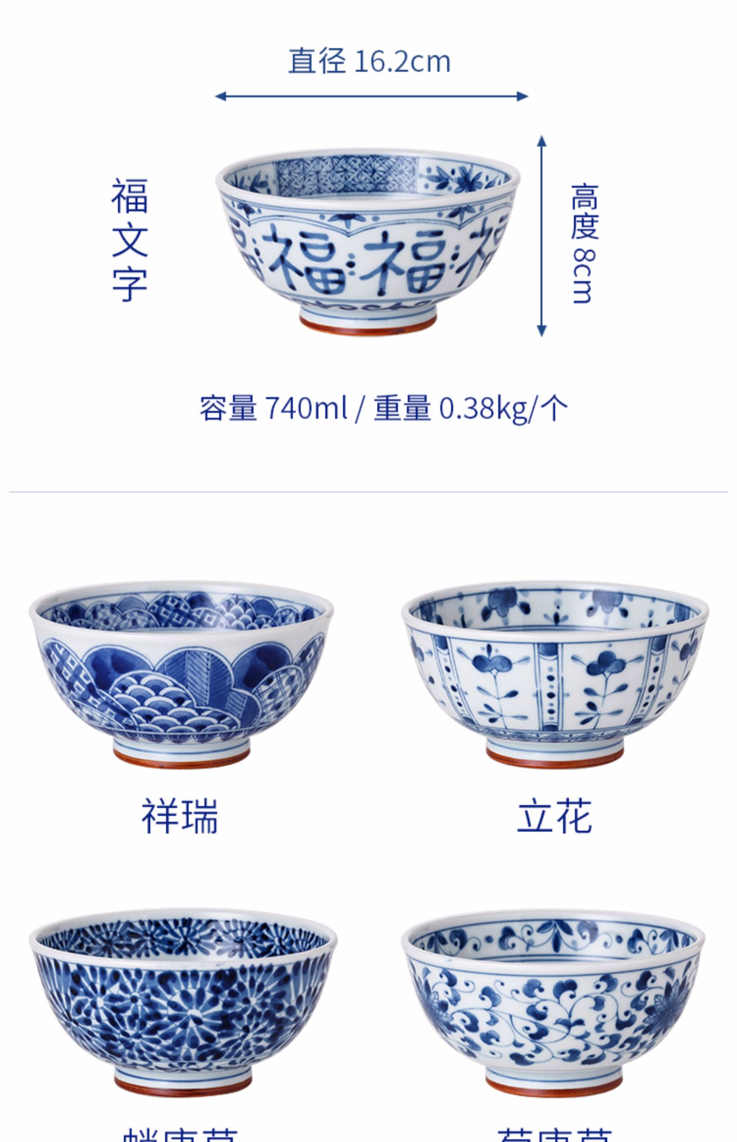 蓝凛堂菊唐草6.5英寸碗(KIKUK56)