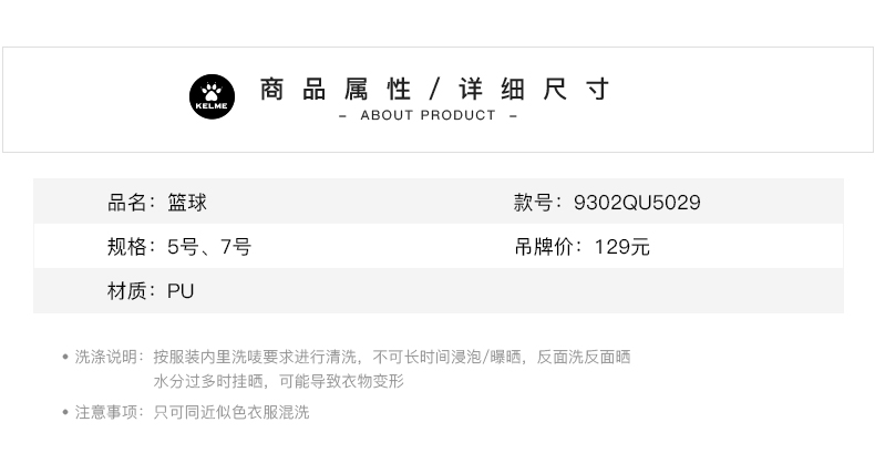 KELME卡尔美篮球7号标准室外训练专用PU耐磨皮球小学生儿童5号球