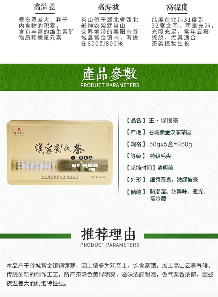 绿茶茶叶2020新茶 毛尖 汉家刘氏 礼盒王·绿银毫装 明前嫩芽250g