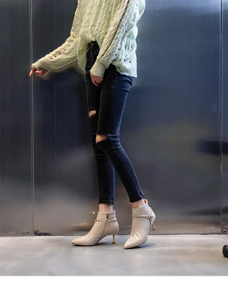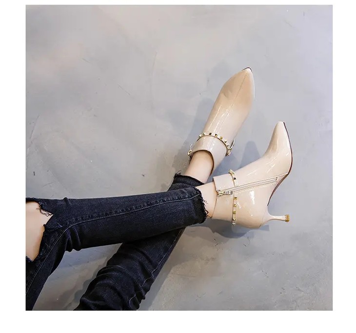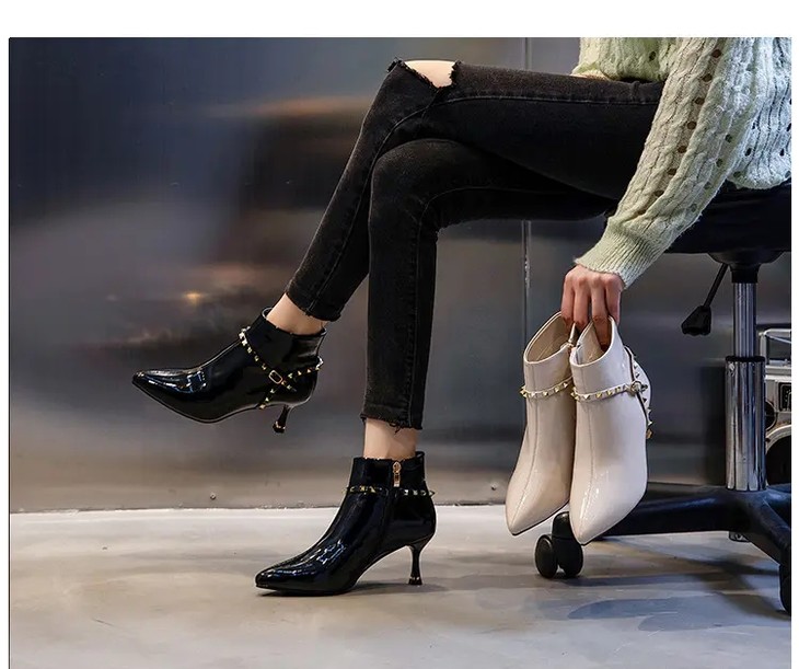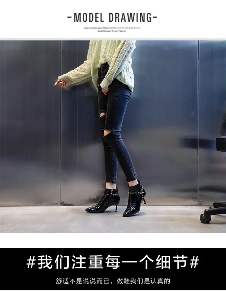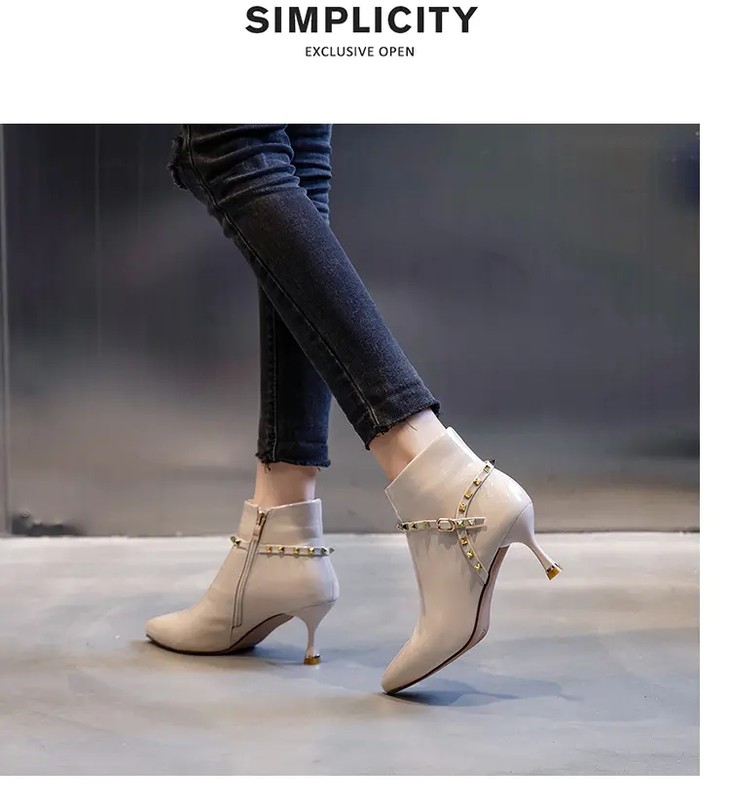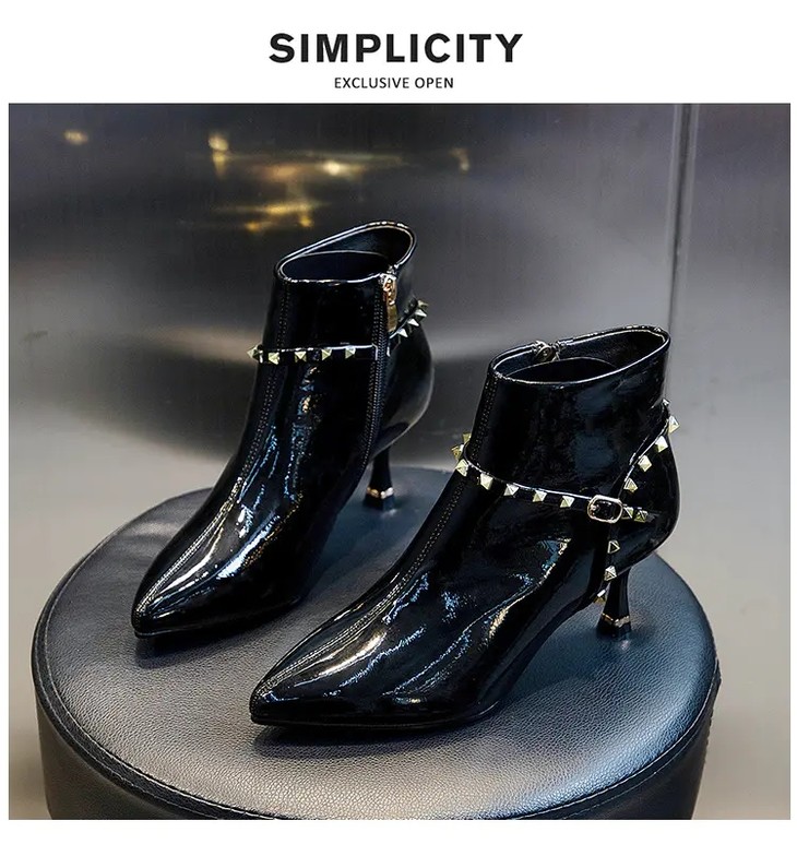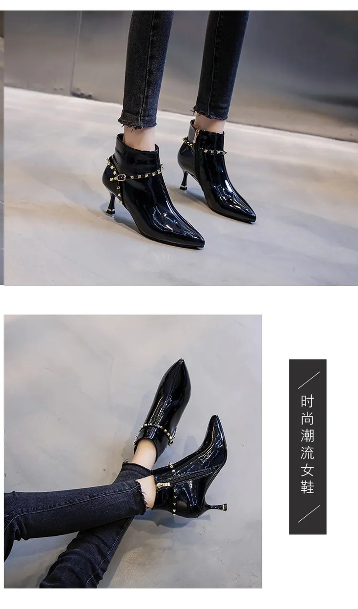 ML-9312 时尚百搭侧拉链尖头细跟高跟短靴