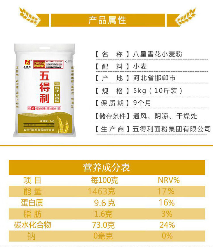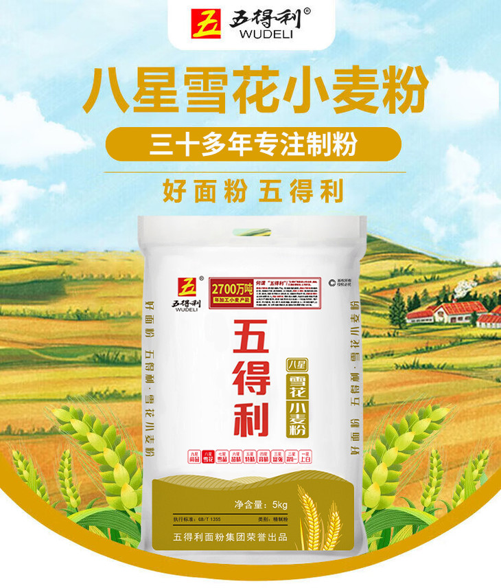 【五得利】八星雪花小麦粉 5kg装 家用多用途包子饺子馒头饼面条