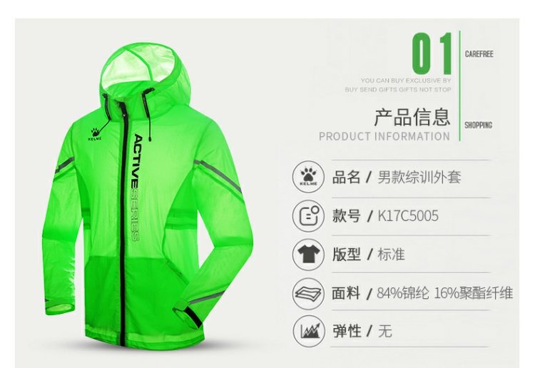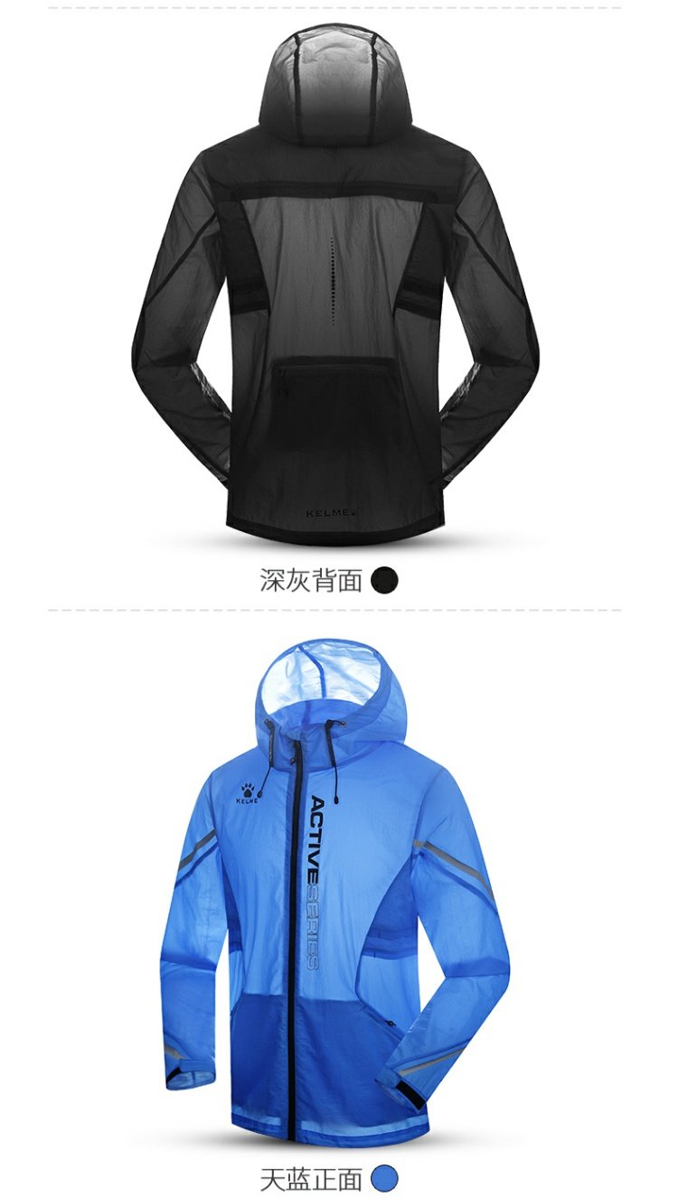 卡尔美户外皮肤衣男轻薄防风防晒透气运动男士健身跑步风衣