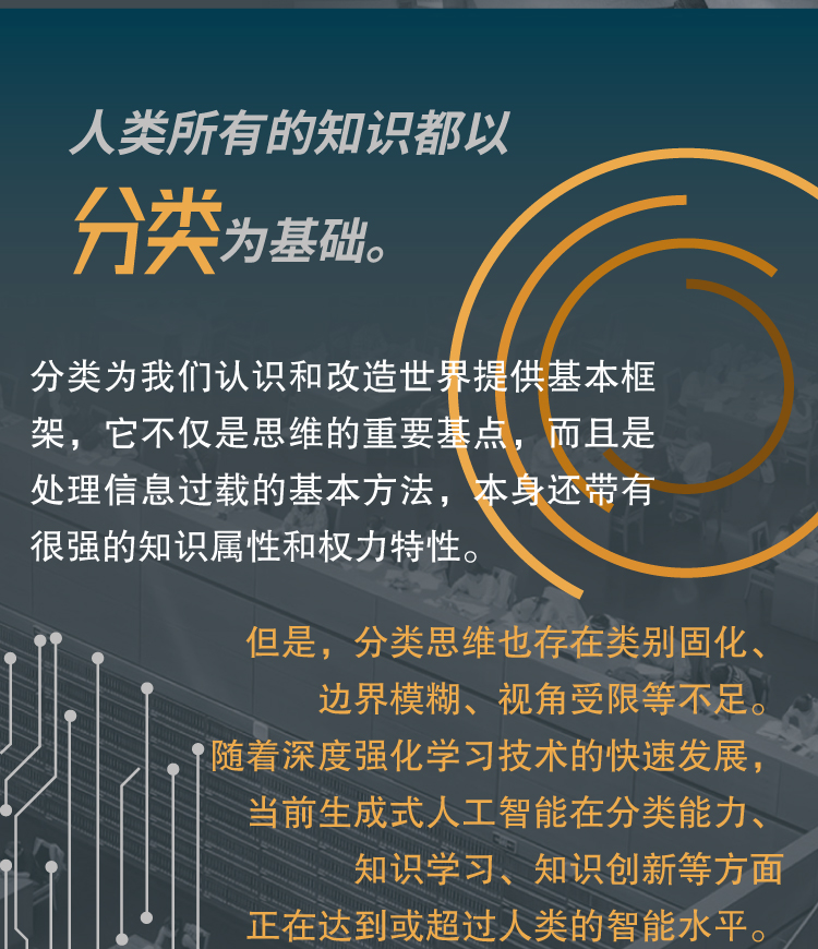分类能力不仅是人类认知的基石,也是人工智能的重要技术底座。当前人工智能已经完美“fuke”甚至超越人类的分类能力,并且能够使用非分类的方法探索人类无法发现的知识。这是人类的知识危机时刻,人类作为知识生产主体的地位正面临前所未有的冲击。《从分类到跨维》深入揭示分类思维背后的语言、知识与权力逻辑,直面类别固化、边界模糊与视角受限三大局限,并结合前沿技术发展提出“跨维”这一AI时代的知识新范式,通过变换分类维度、批判初始分类或整合不同分类,以重建认知与创新的路径。写给每一位不愿被旧的分类思维困住、希望在AI时代掌握知识创新与思考主动权的读者。