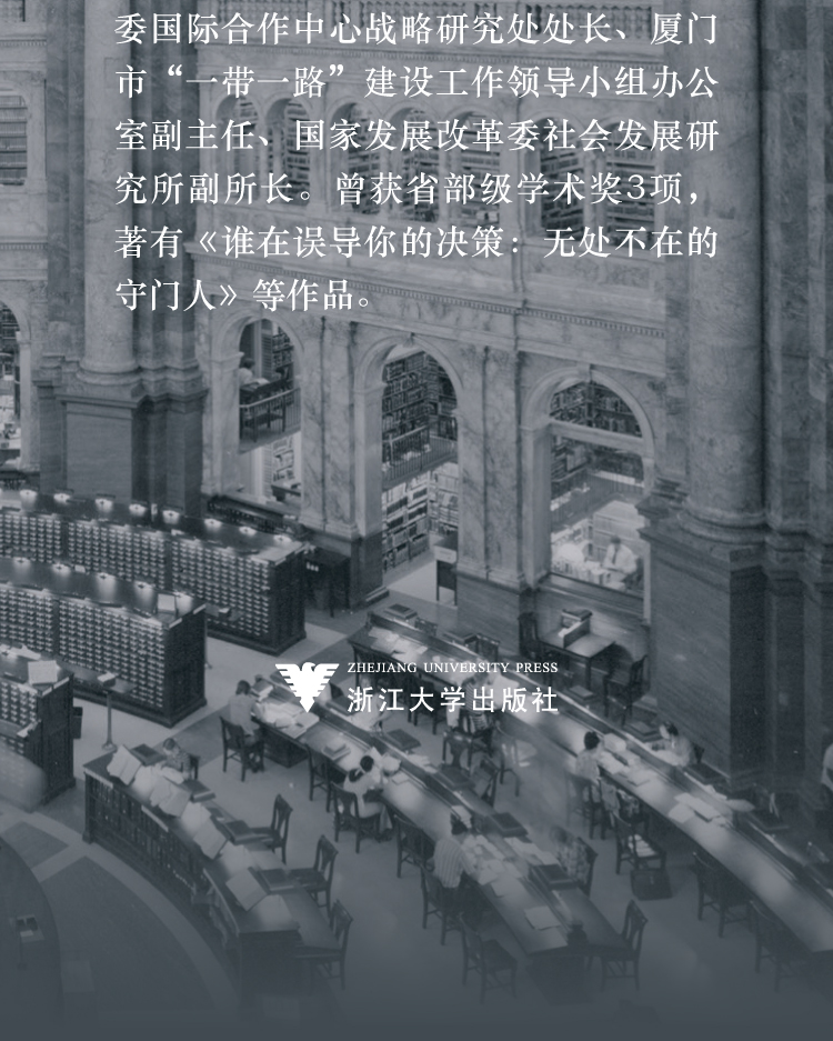 盛思鑫,国家发展改革委宏观经济研究院研究员、决策咨询部副主任。澳大利亚新南威尔士大学哲学博士(组织管理专业),美国哈佛大学费正清中国研究中心访问学者,先后担任新加坡国立大学东亚研究所研究专员、国家发展改革委国际合作中心战略研究处处长、厦门市“一带一路”建设工作领导小组办公室副主任、国家发展改革委社会发展研究所副所长。曾获省部级学术奖3项,著有《谁在误导你的决策:无处不在的守门人》等作品。