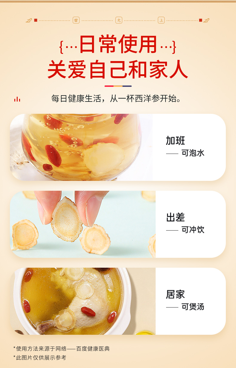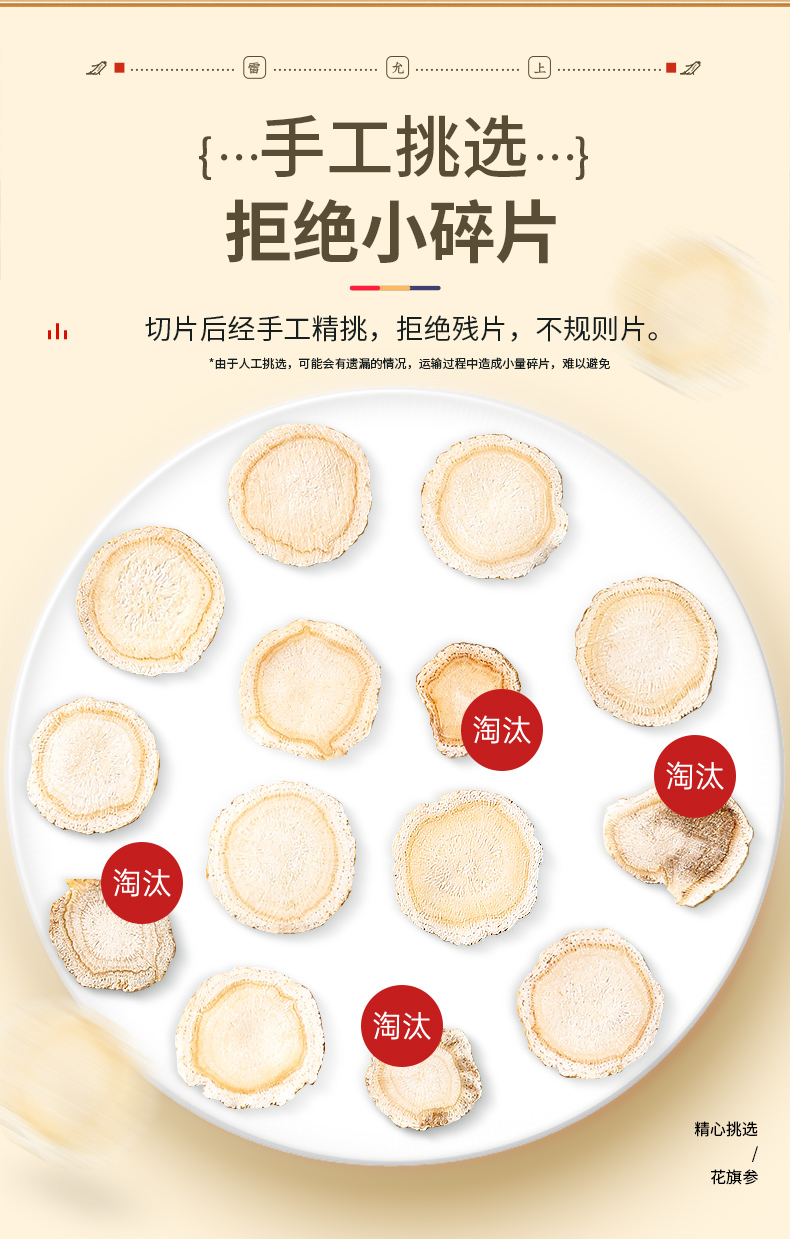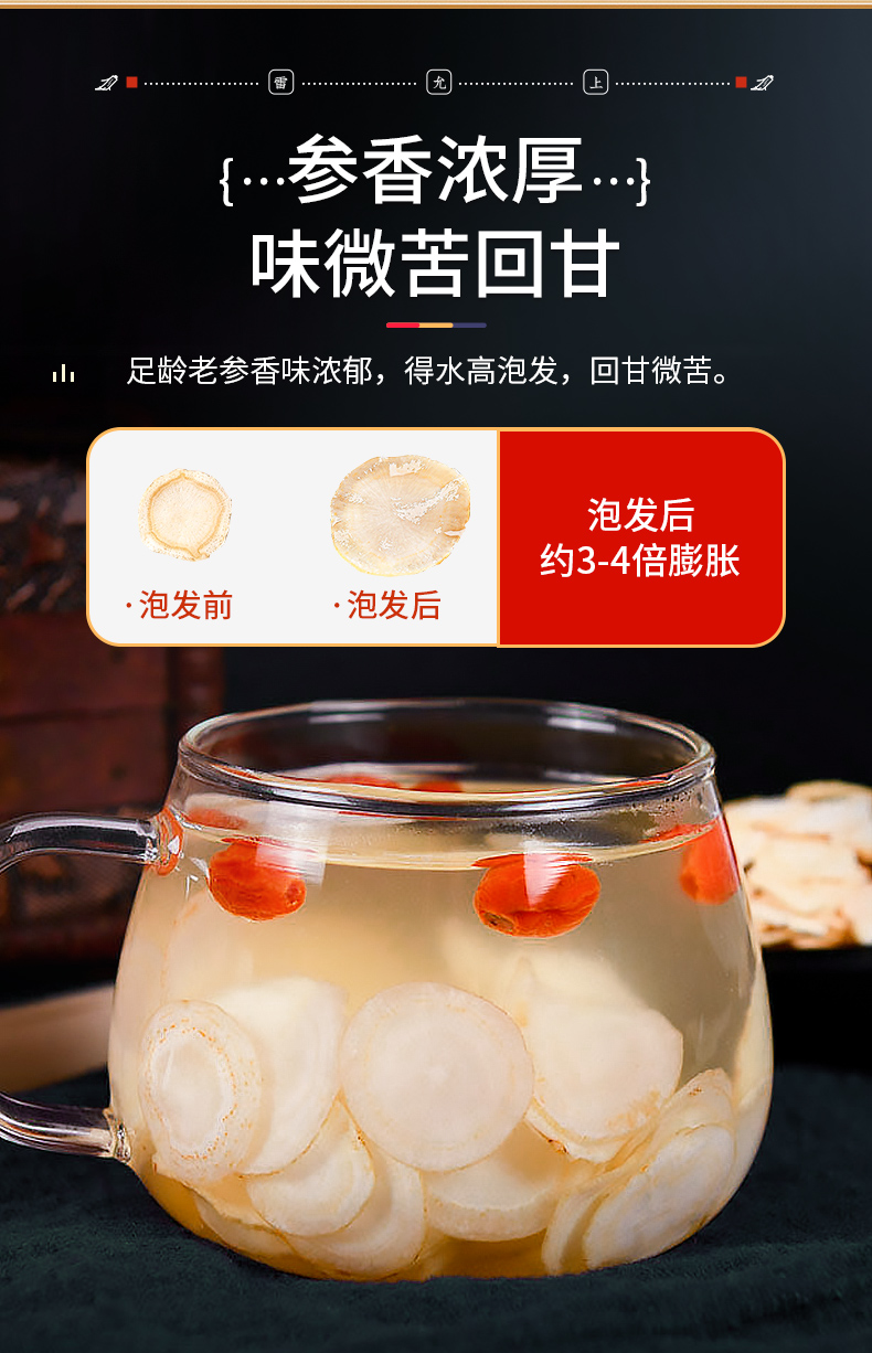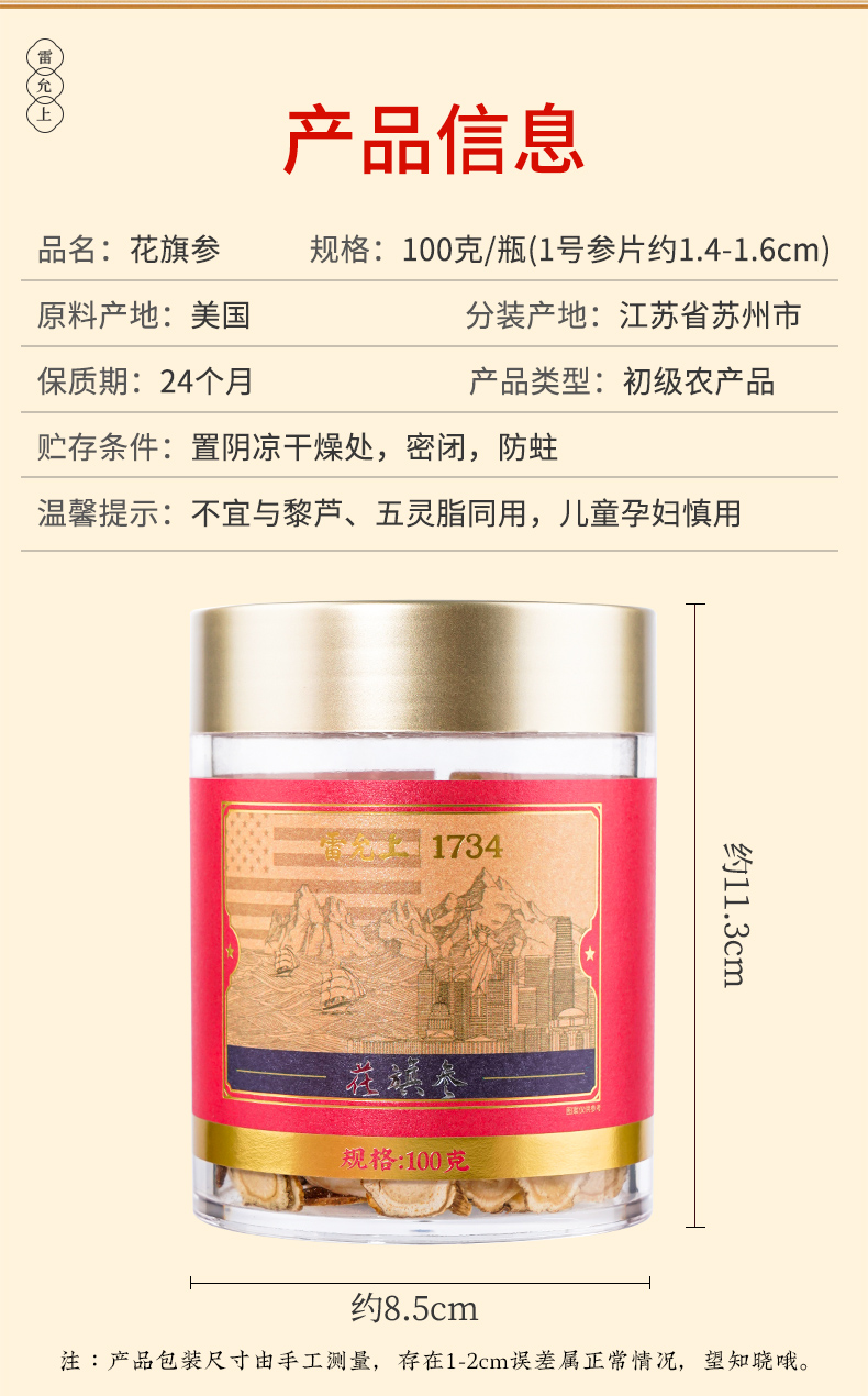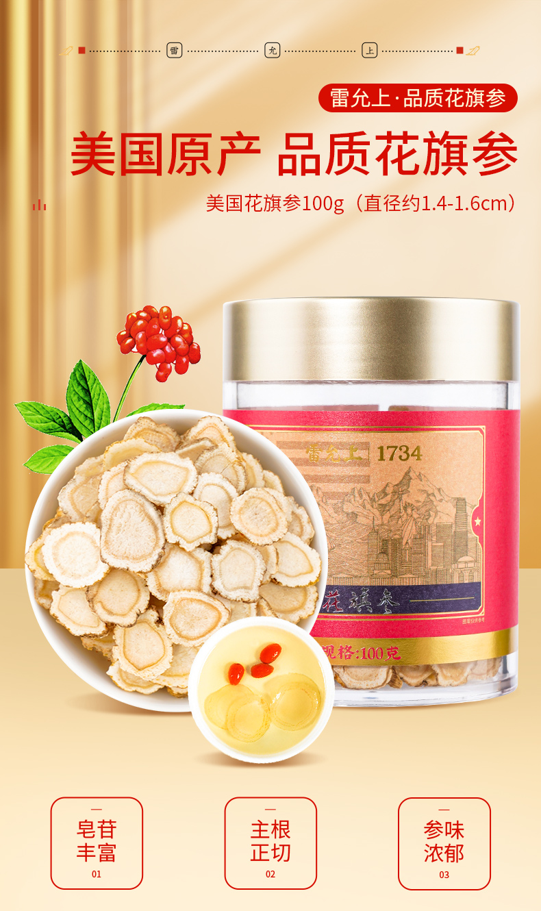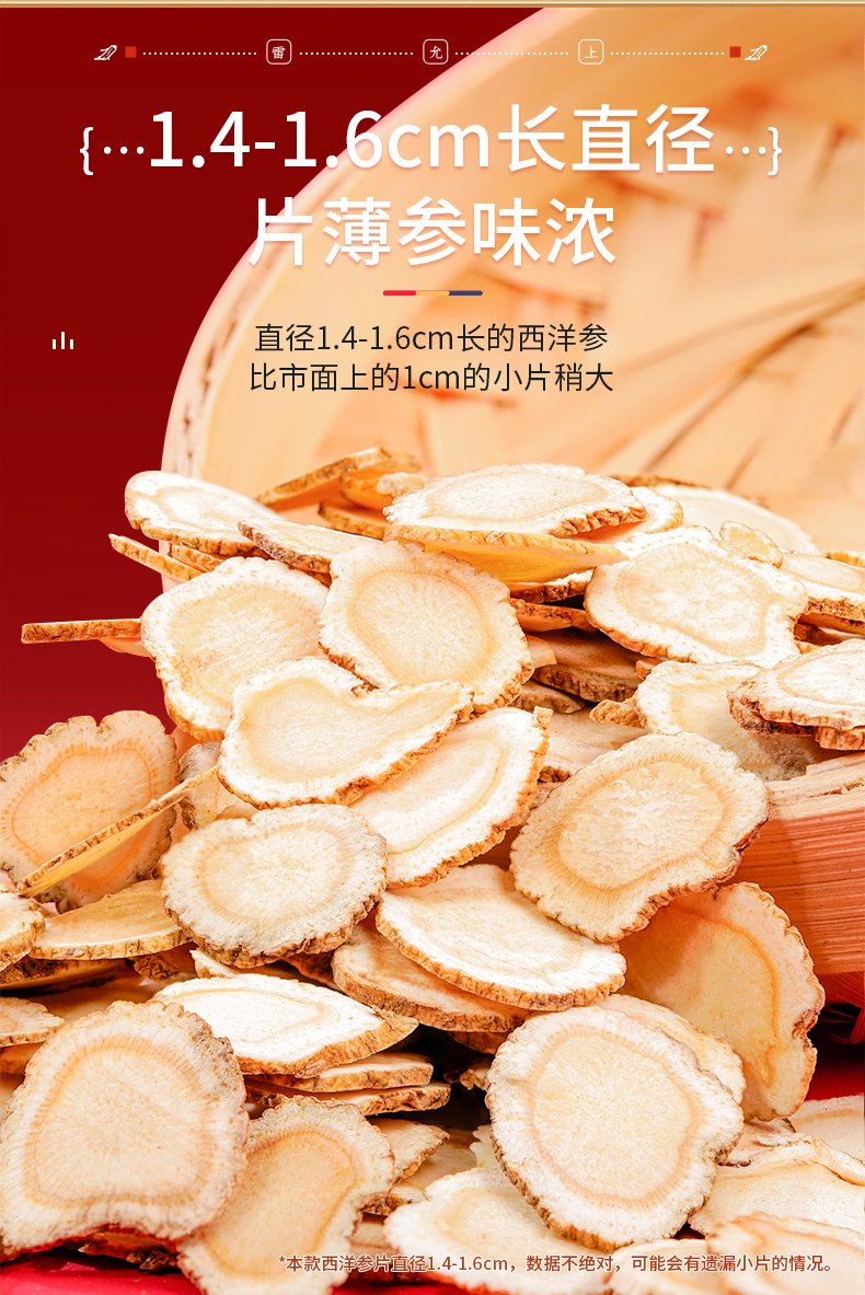 雷允上直营 | 美国进口花旗参片100g/罐(1.4-1.6cm) 参味浓郁 泡茶煲汤