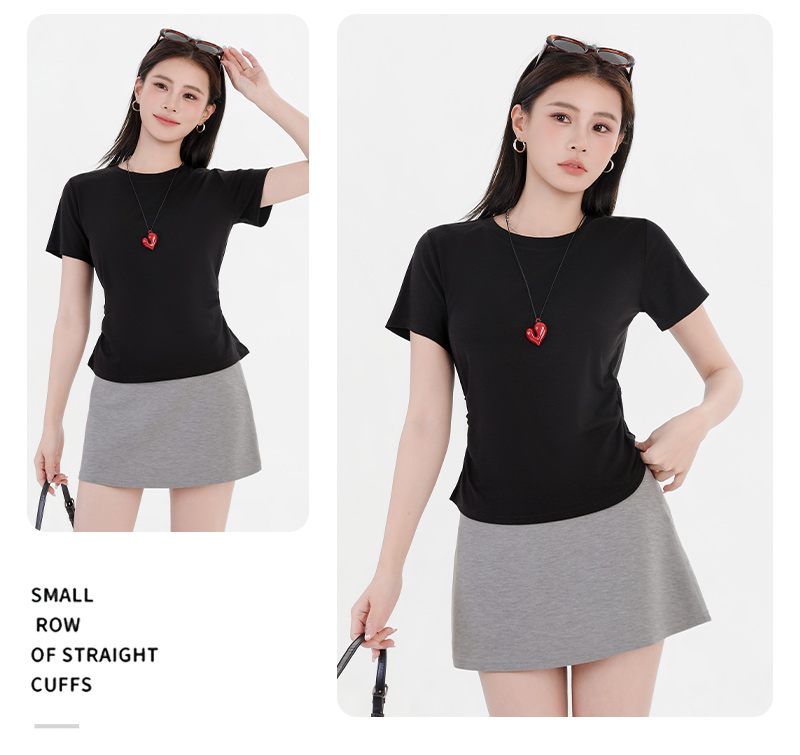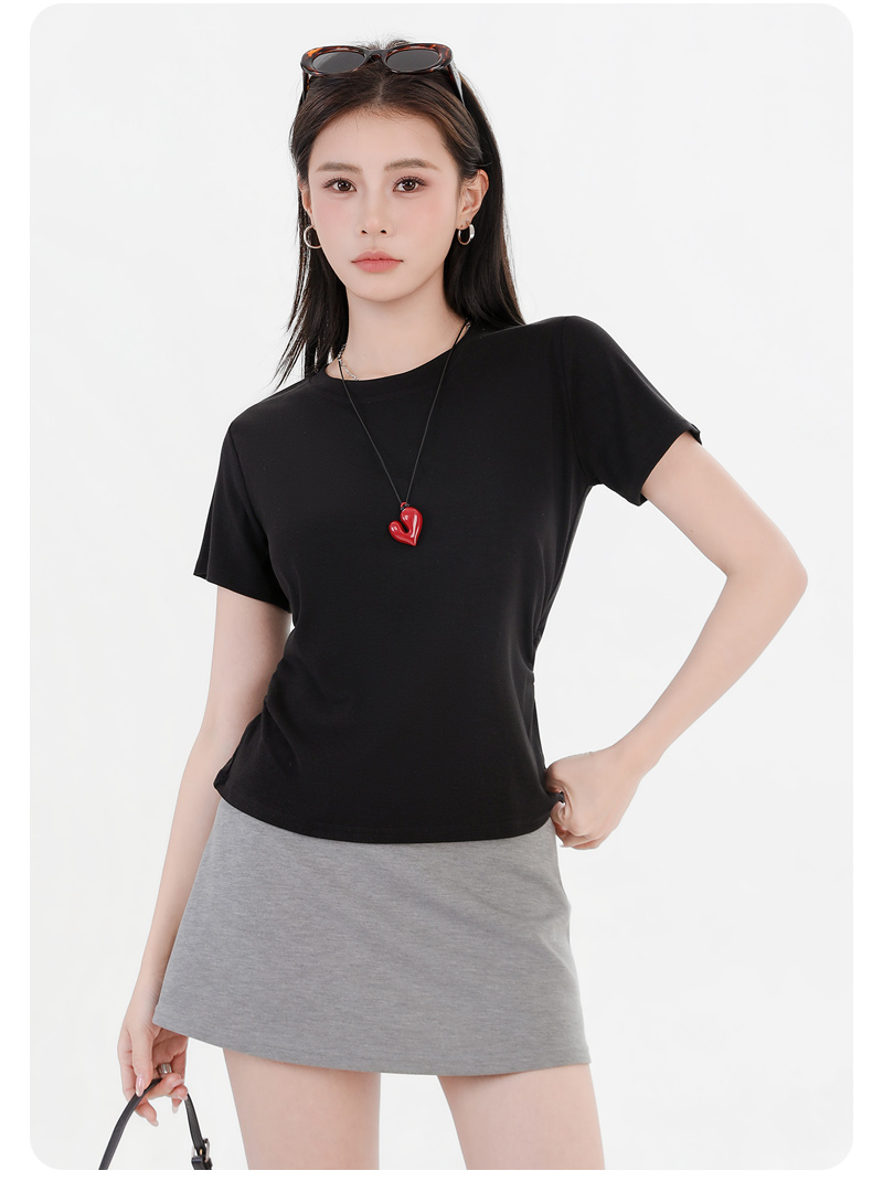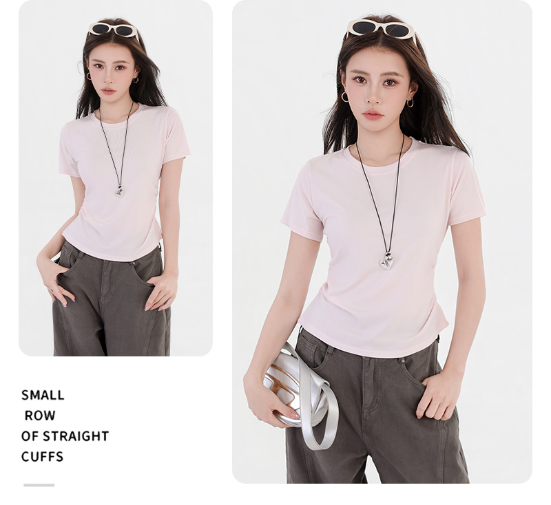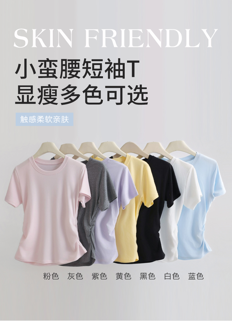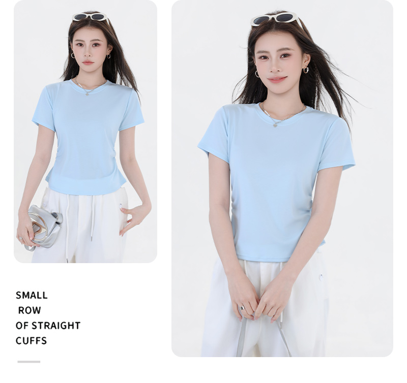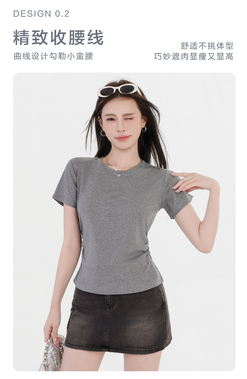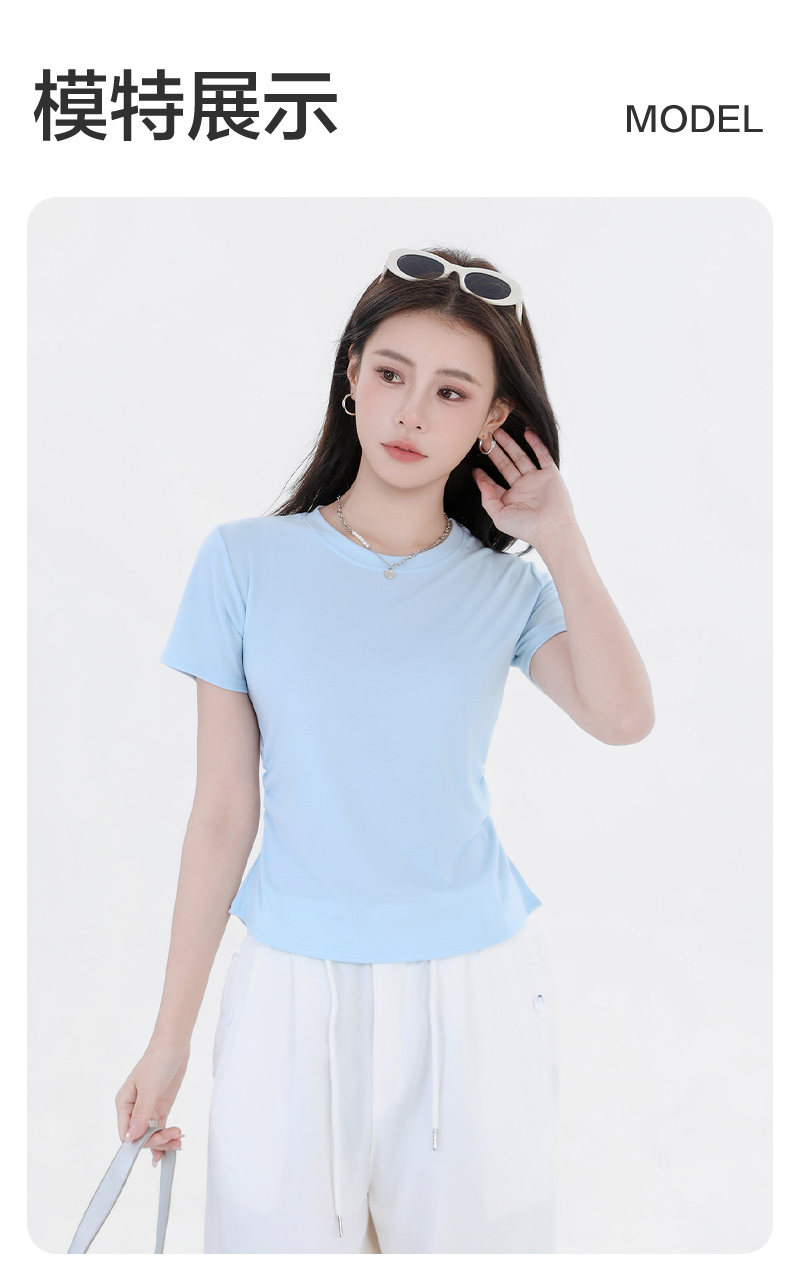 收腰显瘦~【板嫣莱赛尔褶皱正肩T恤】93%莱赛尔+7%氨纶的黄金比例 轻盈透气 吸汗不闷热 高弹力 面料柔滑细腻 上身凉丝丝的 收腰版型藏住小肚腩 修饰腰臀线