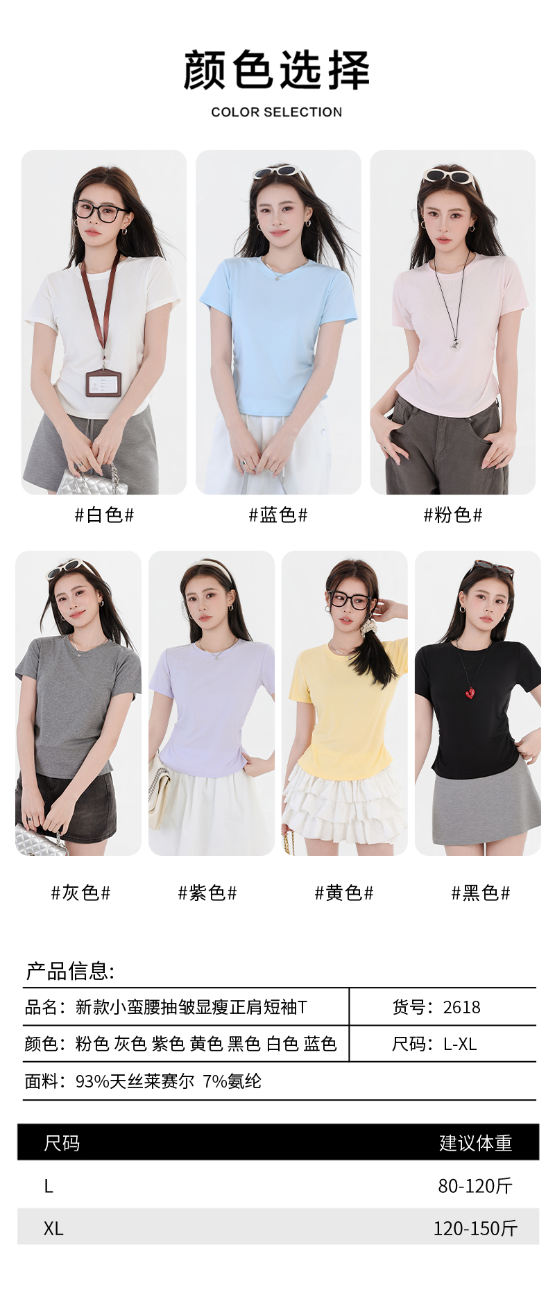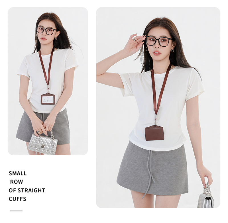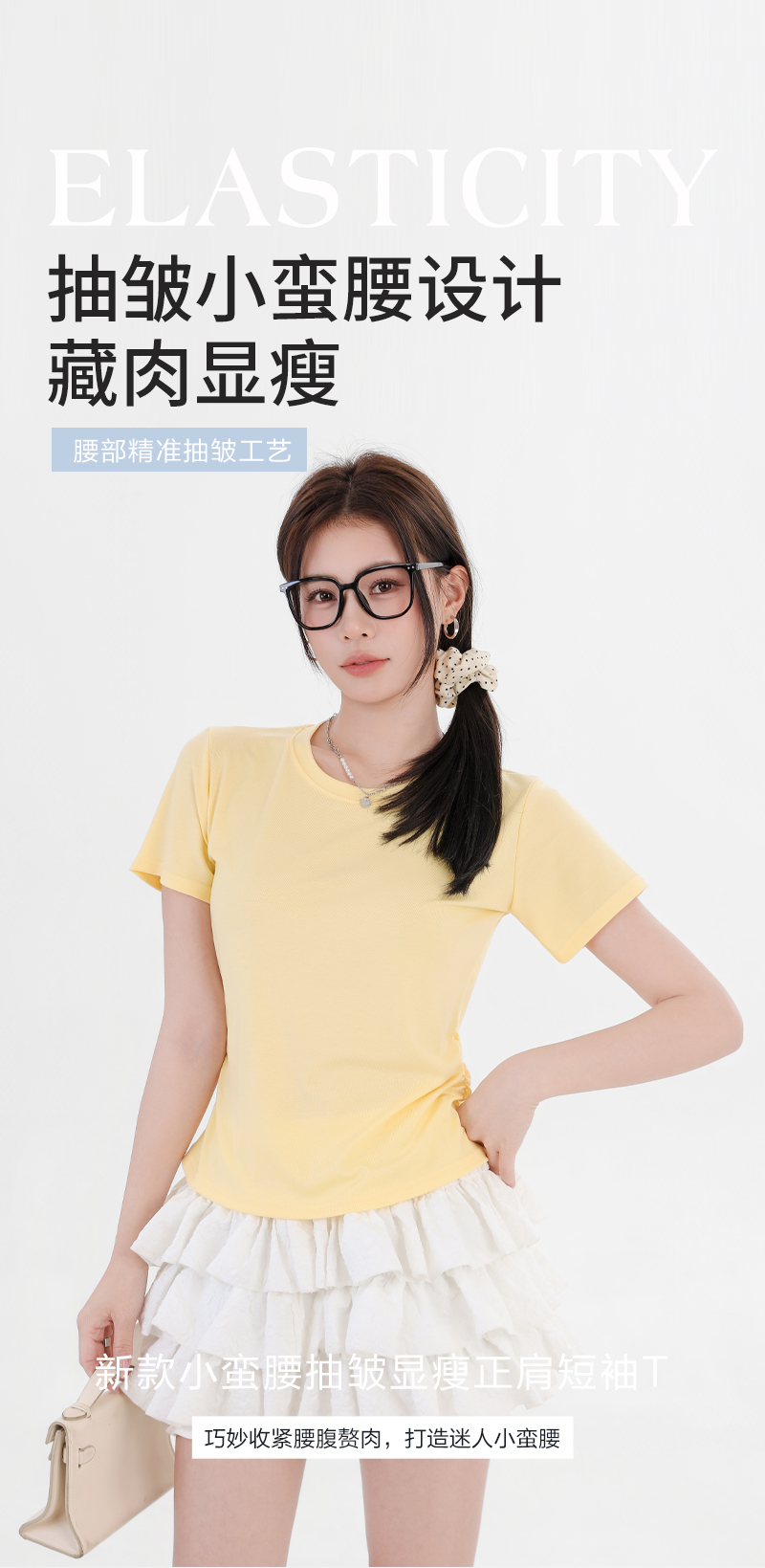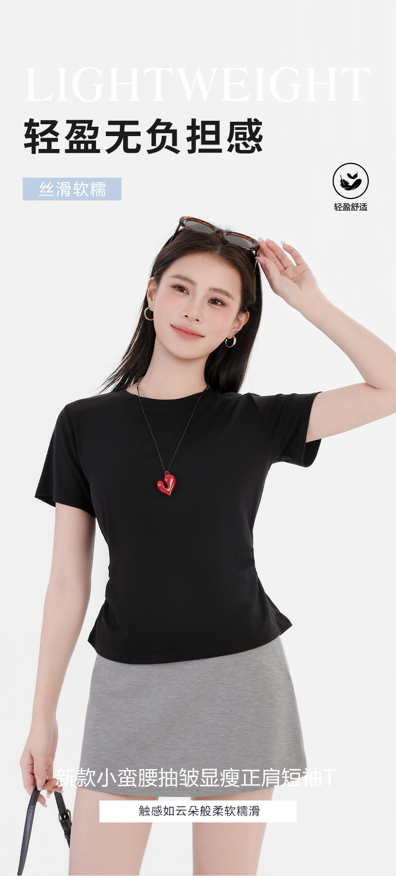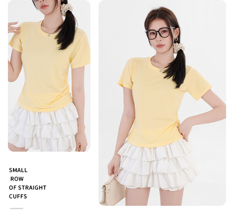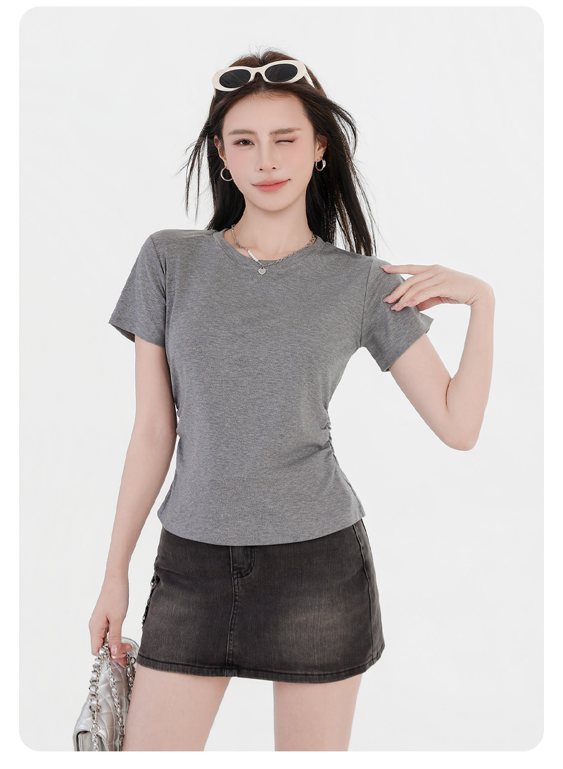 收腰显瘦~【板嫣莱赛尔褶皱正肩T恤】93%莱赛尔+7%氨纶的黄金比例 轻盈透气 吸汗不闷热 高弹力 面料柔滑细腻 上身凉丝丝的 收腰版型藏住小肚腩 修饰腰臀线