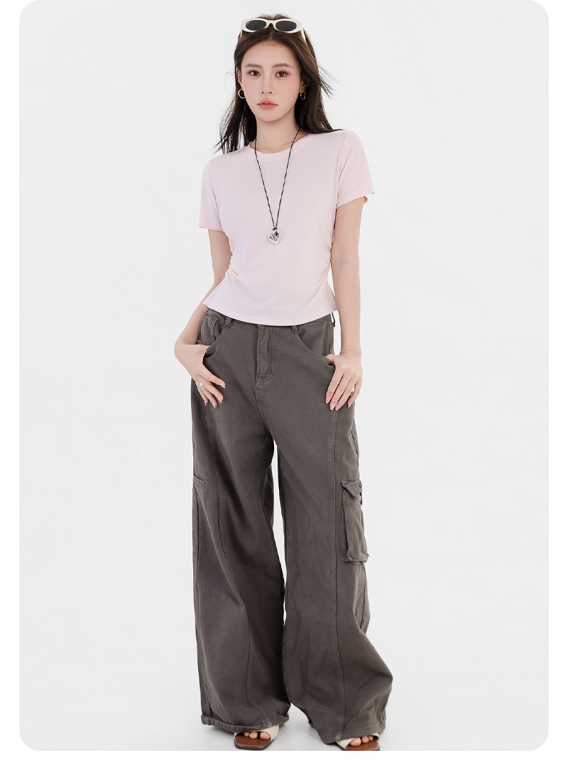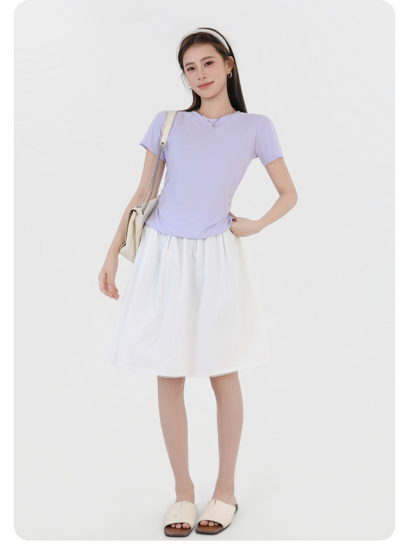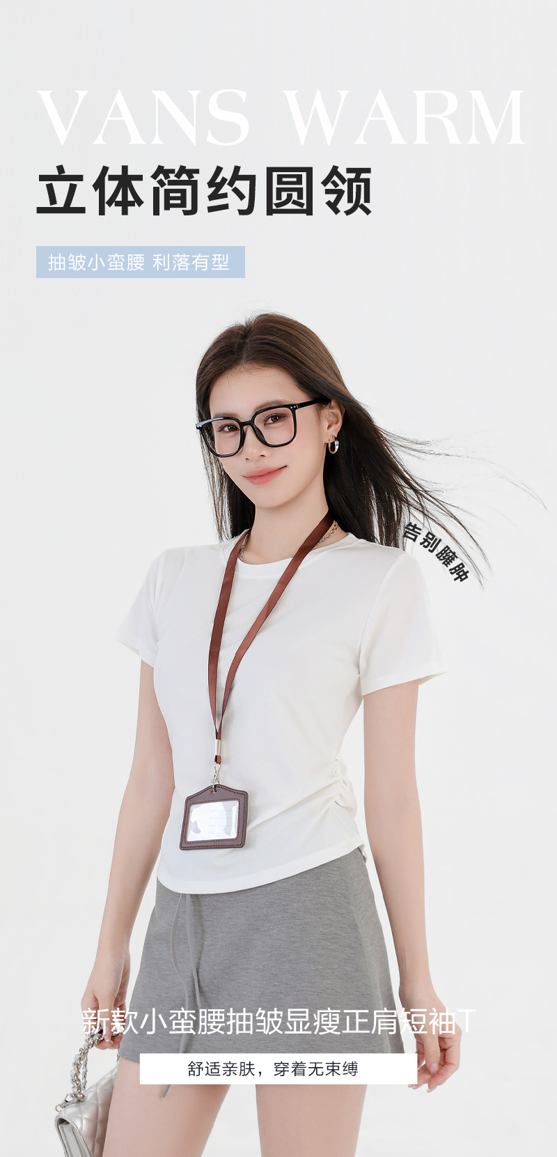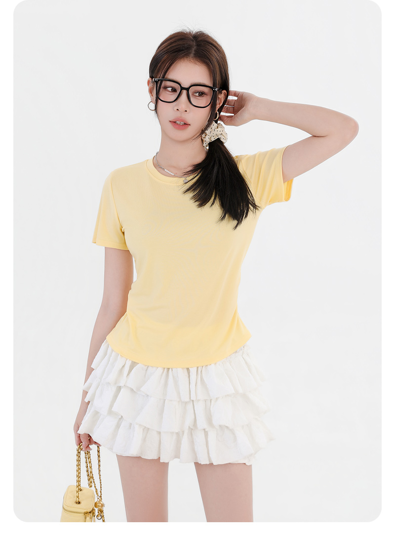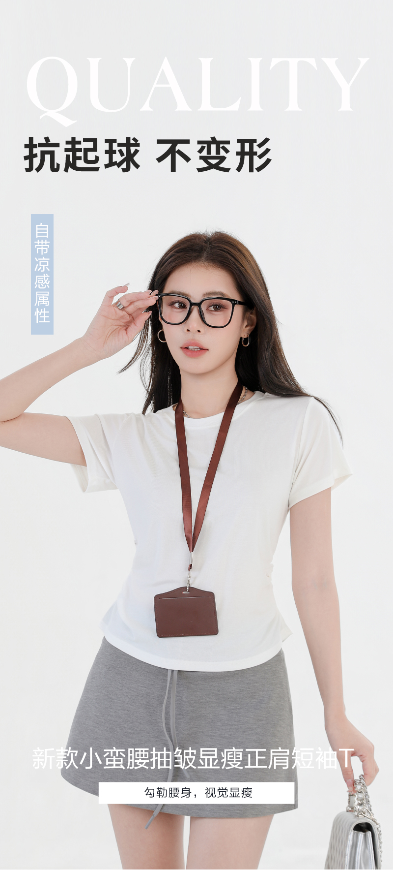 收腰显瘦~【板嫣莱赛尔褶皱正肩T恤】93%莱赛尔+7%氨纶的黄金比例 轻盈透气 吸汗不闷热 高弹力 面料柔滑细腻 上身凉丝丝的 收腰版型藏住小肚腩 修饰腰臀线