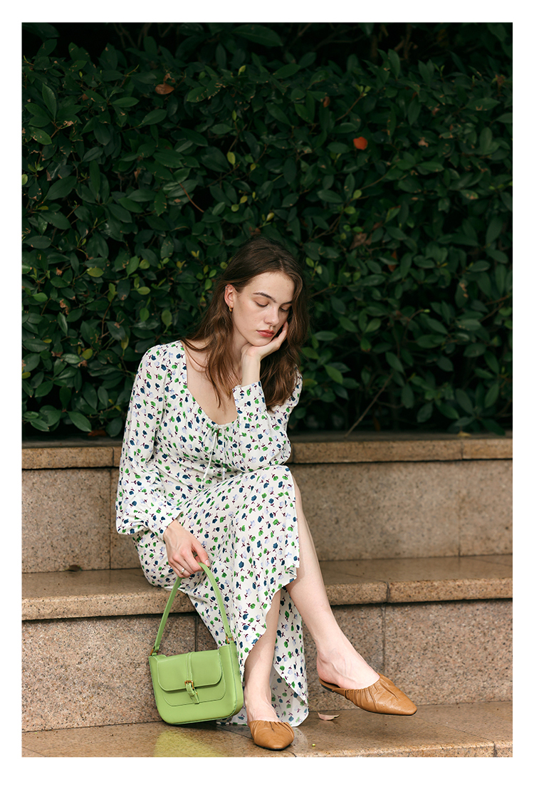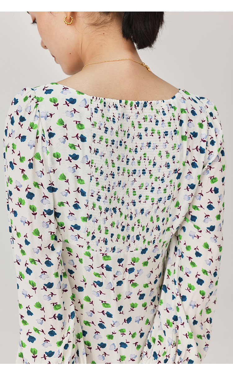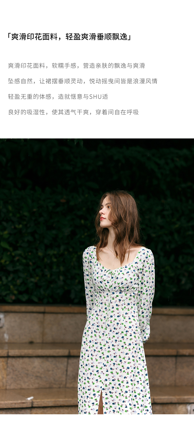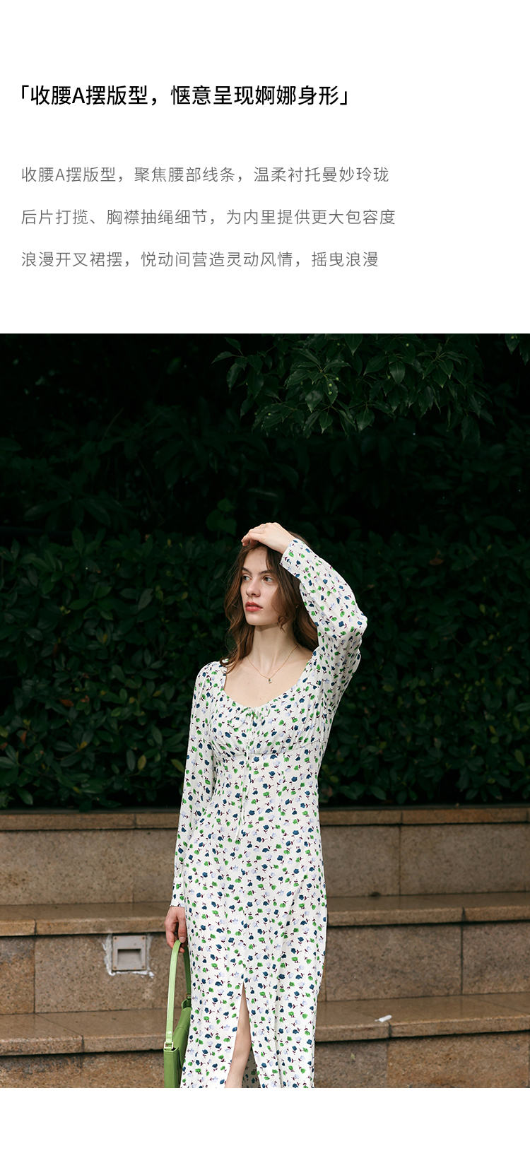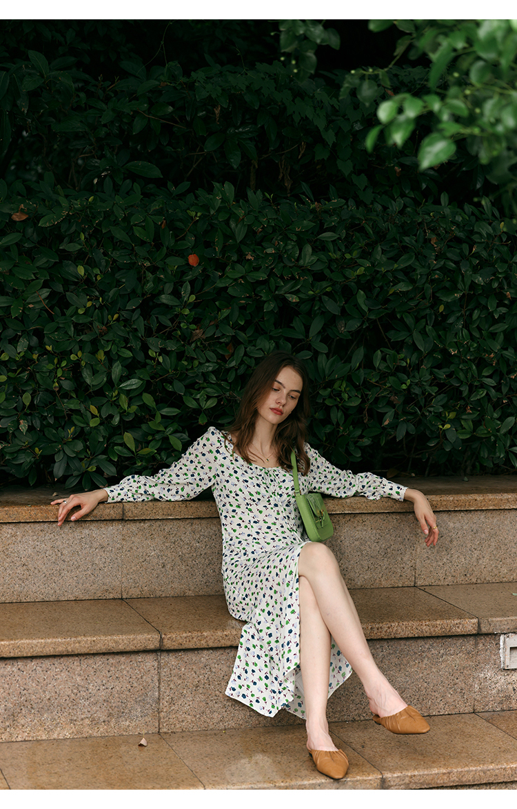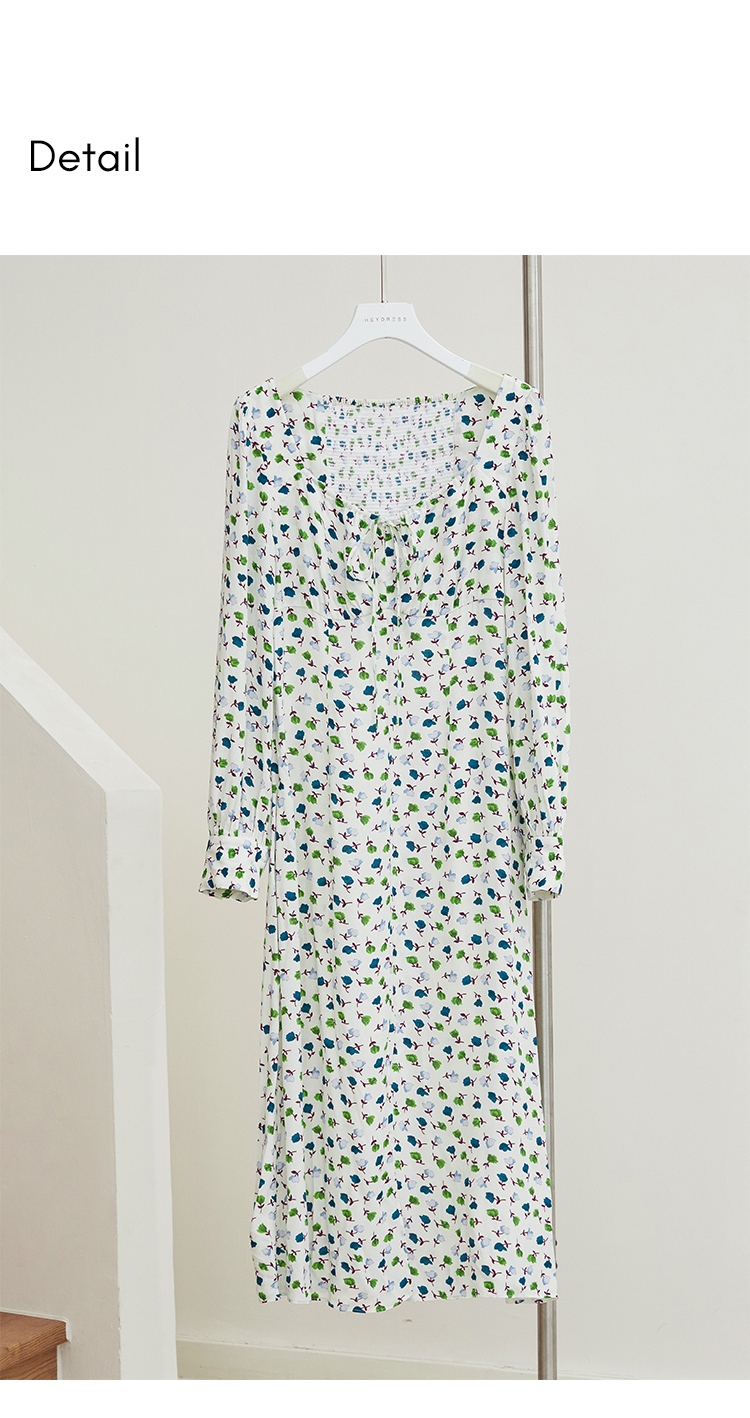 【周四精选福利】HeyDress法式方领连衣裙女复古收腰开叉设计长袖气质碎花裙子