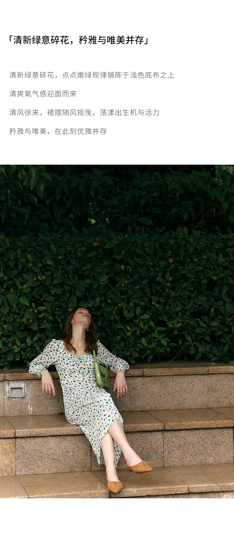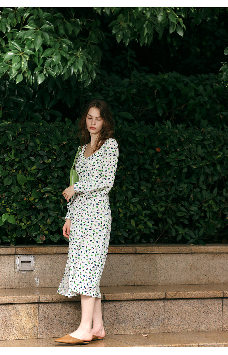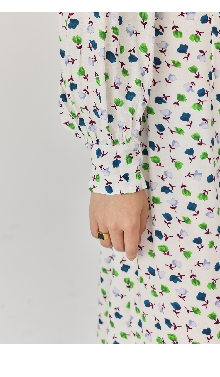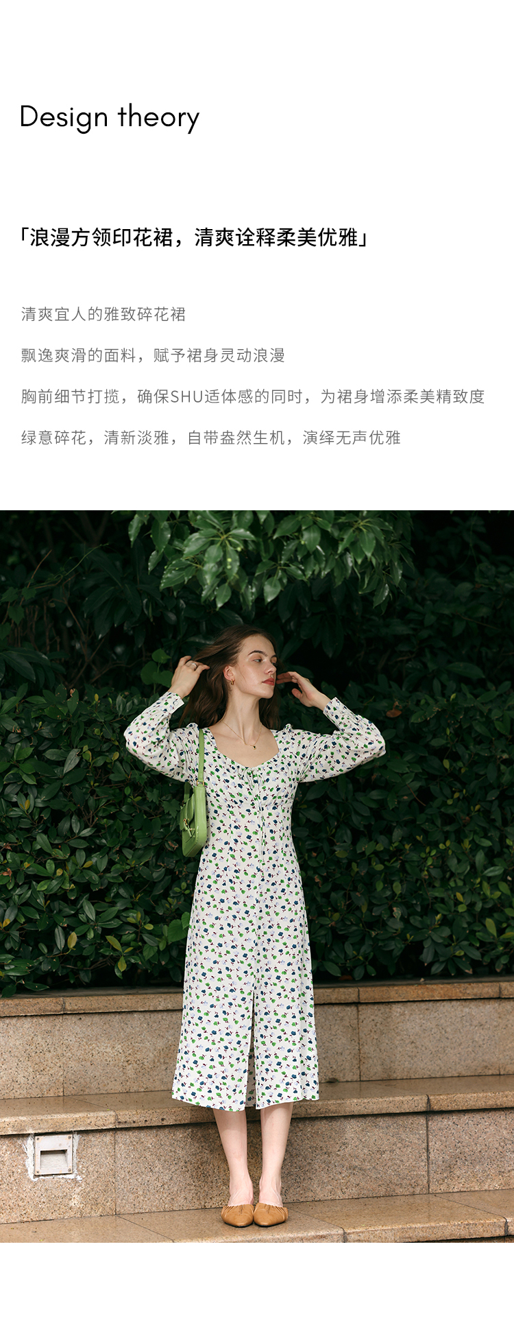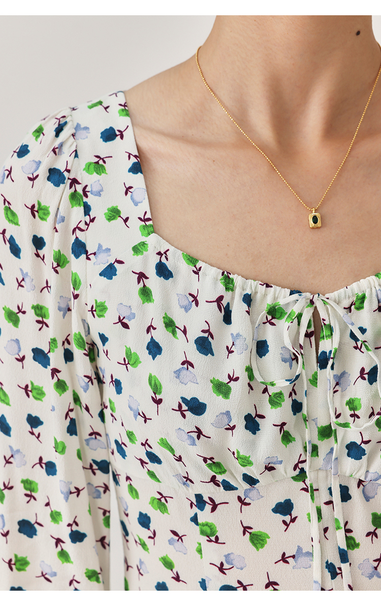 【周四精选福利】HeyDress法式方领连衣裙女复古收腰开叉设计长袖气质碎花裙子