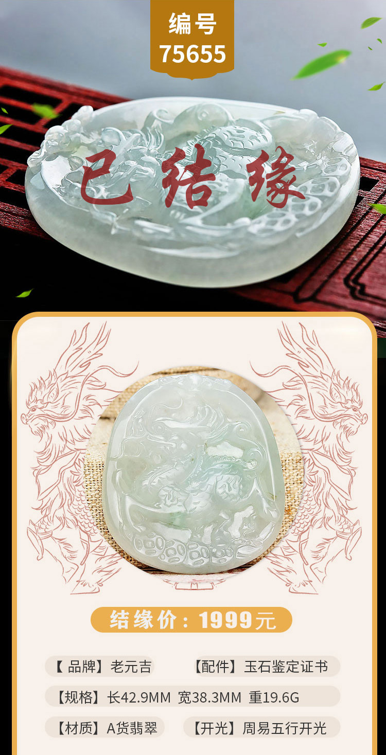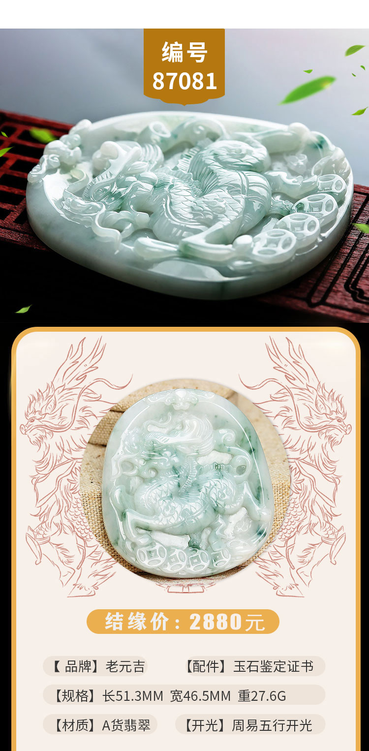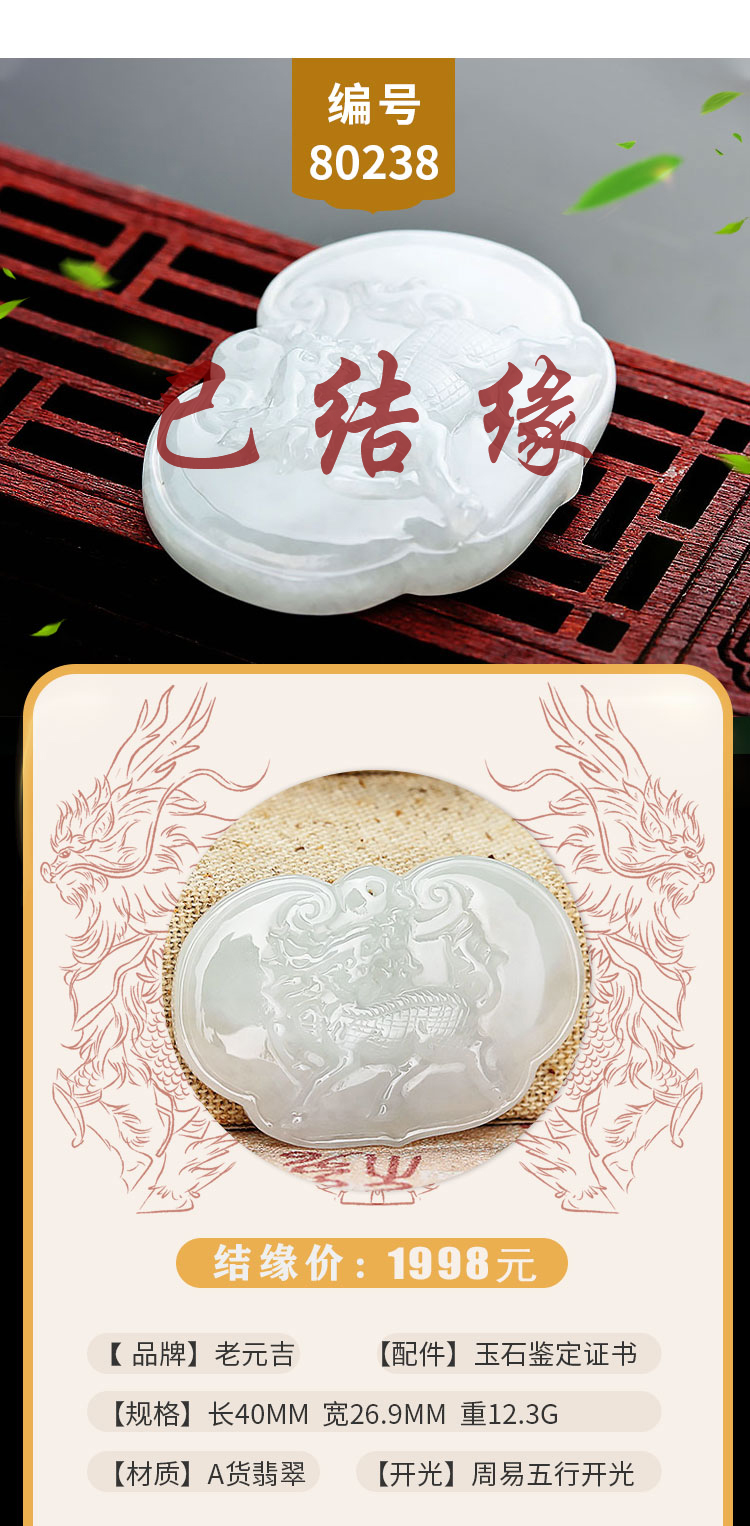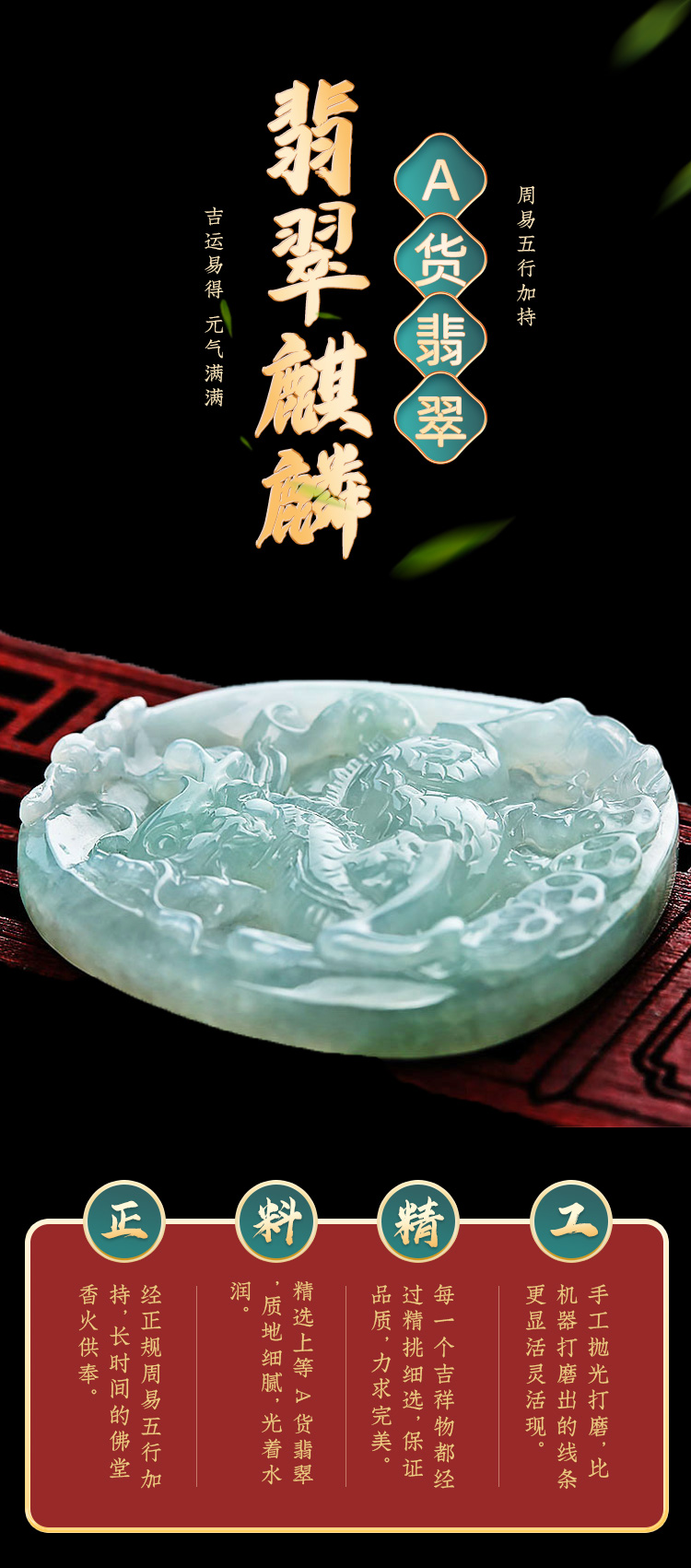 老元吉A货翡翠麒麟吊坠玉石挂件玉坠