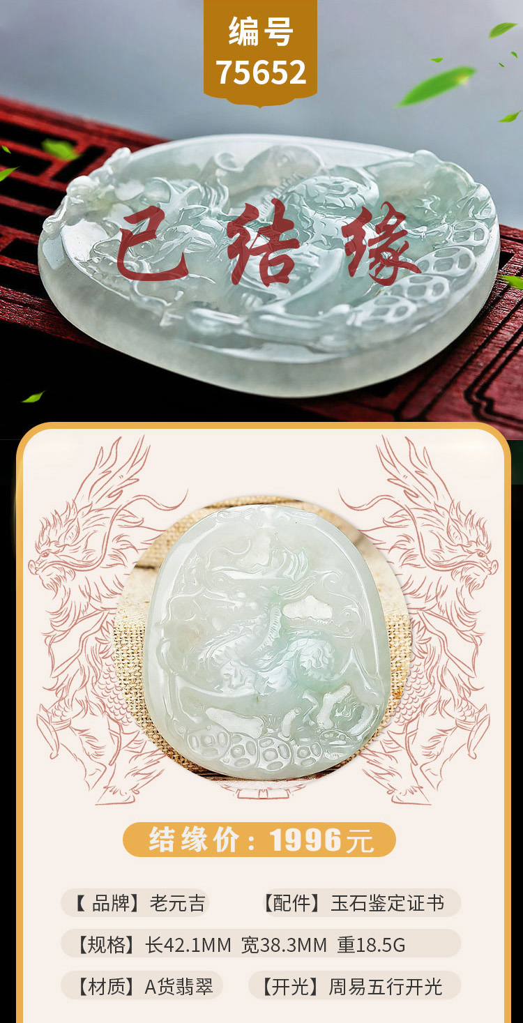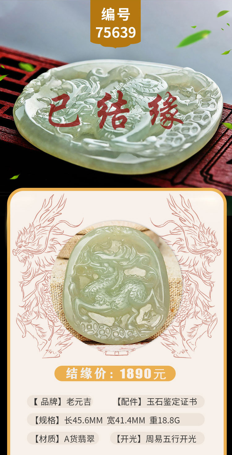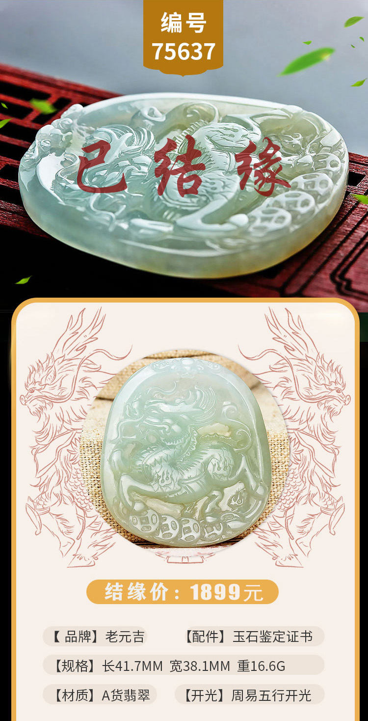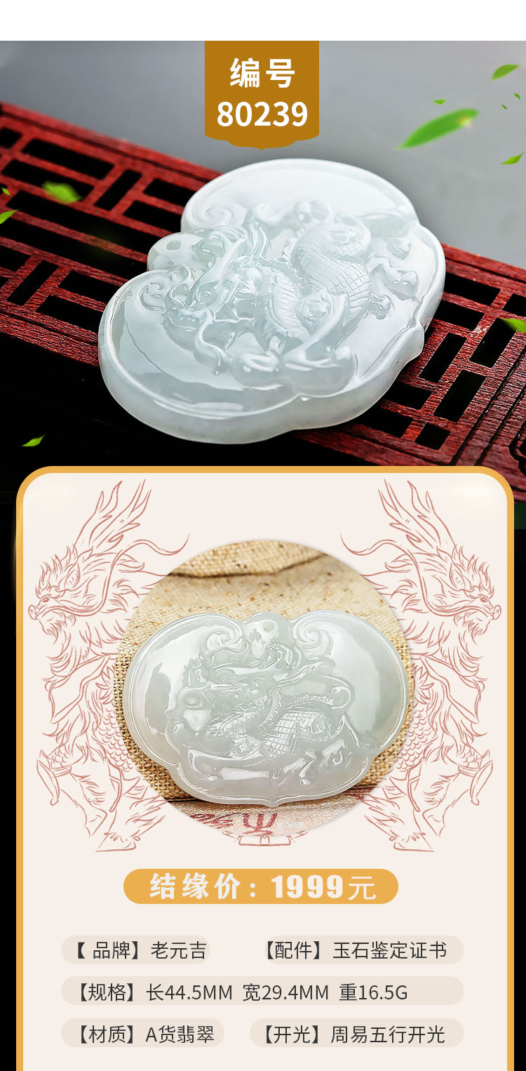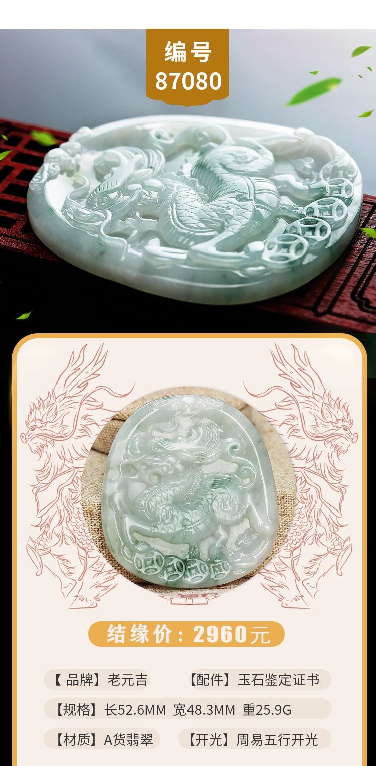 老元吉A货翡翠麒麟吊坠玉石挂件玉坠