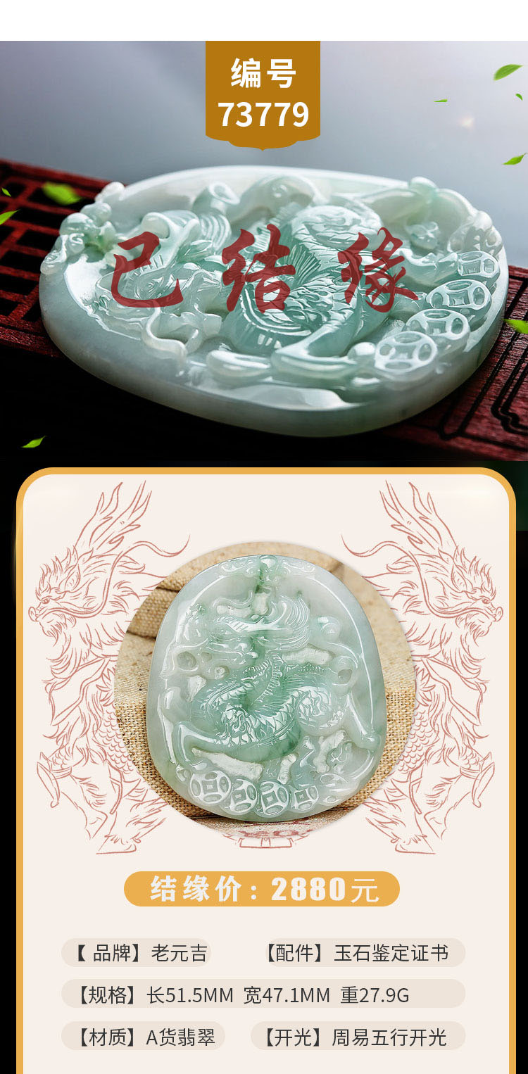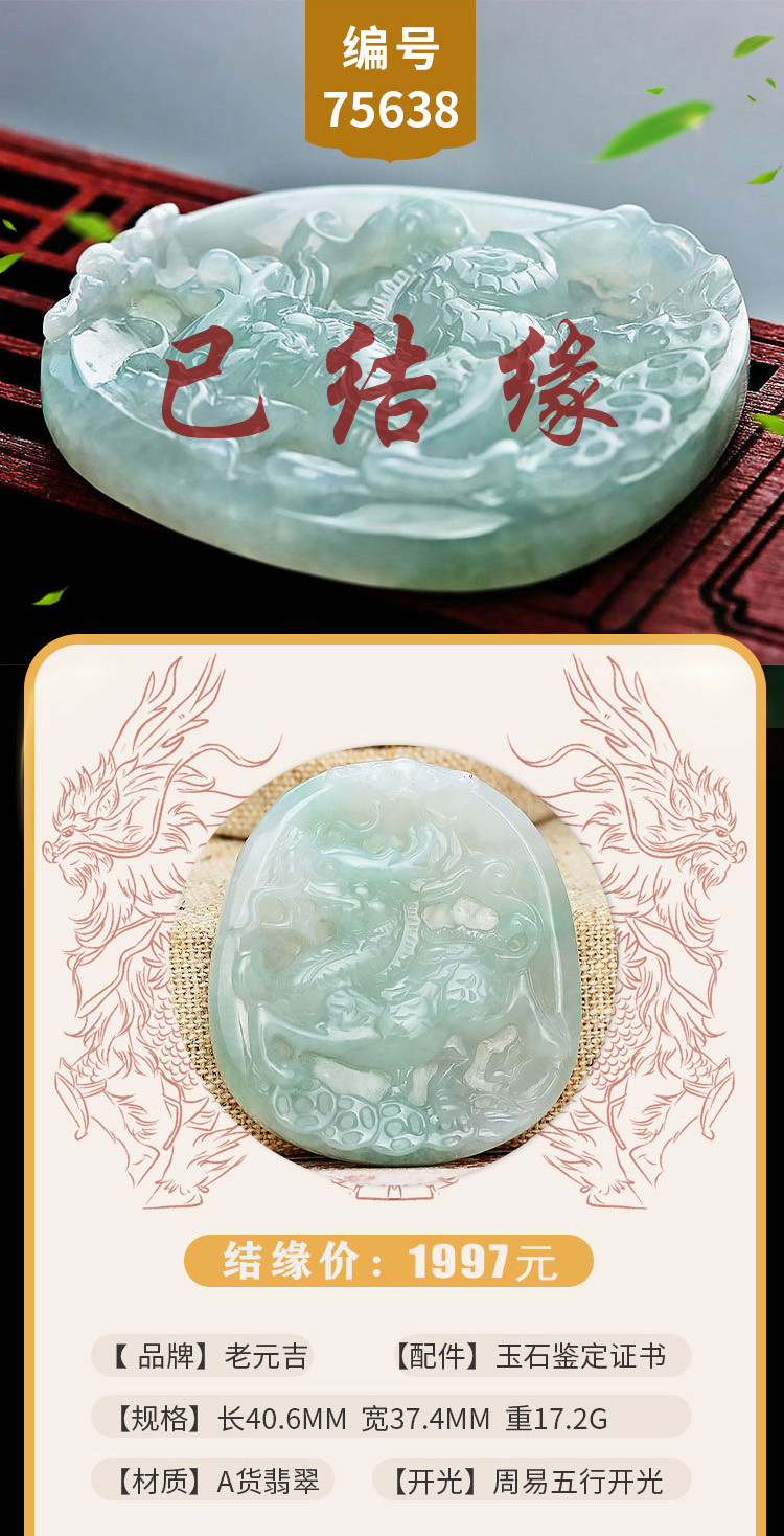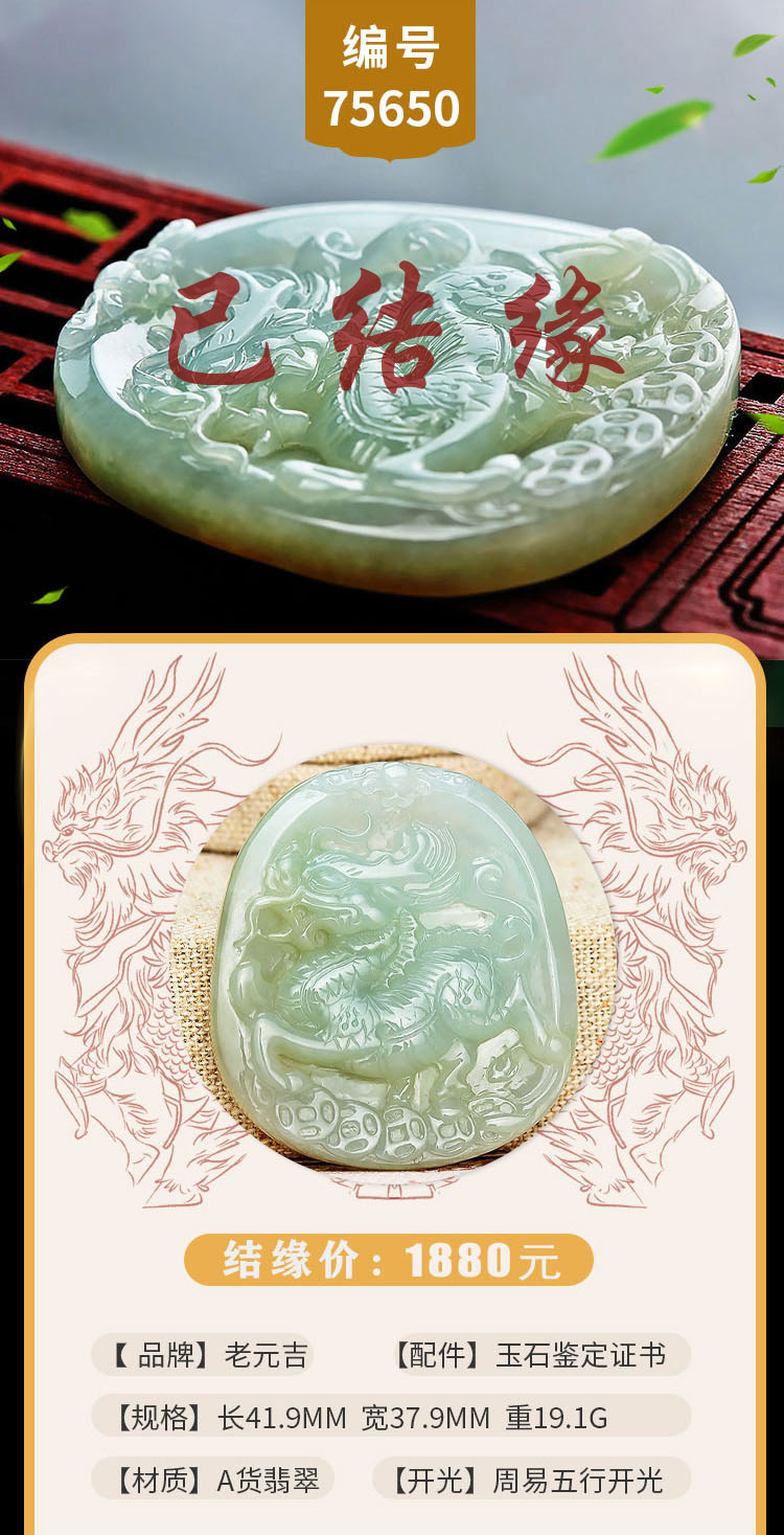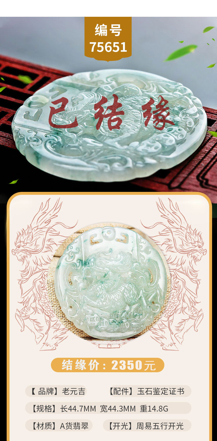 老元吉A货翡翠麒麟吊坠玉石挂件玉坠