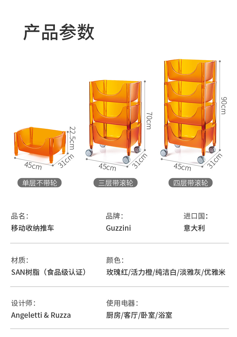 【利快】收纳架子意大利落地多层可移动小推车置物架厨房客厅卧室零食