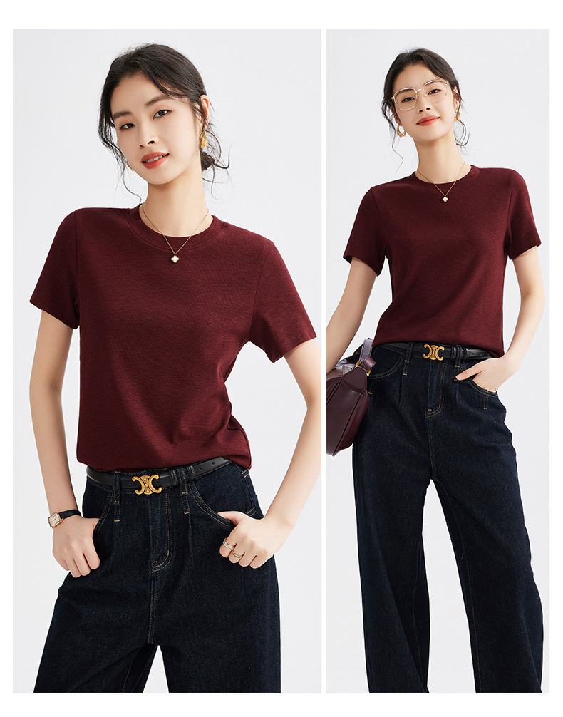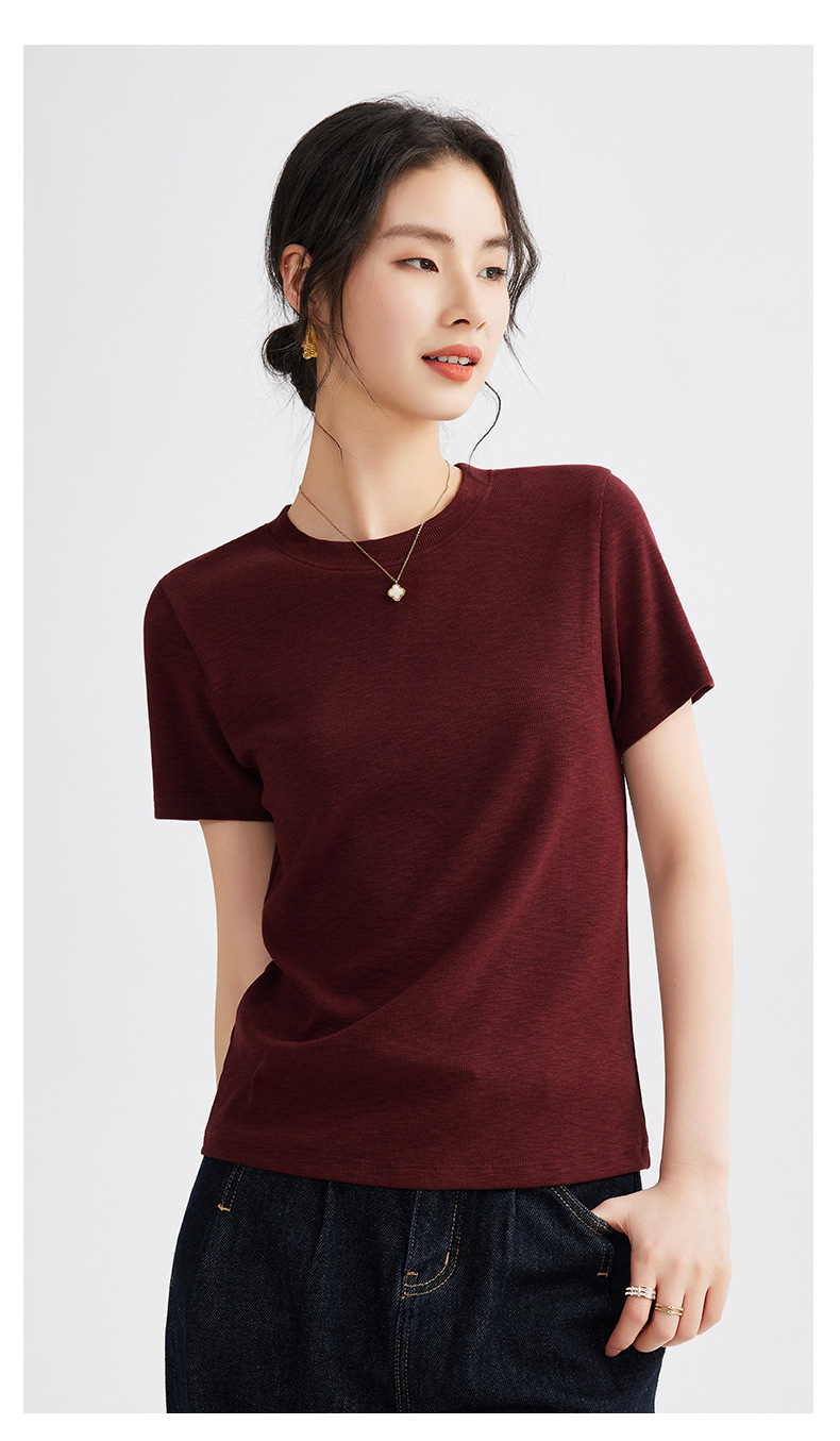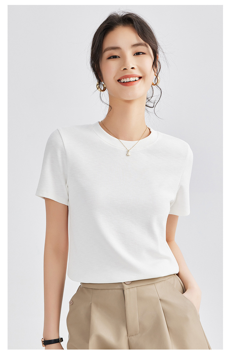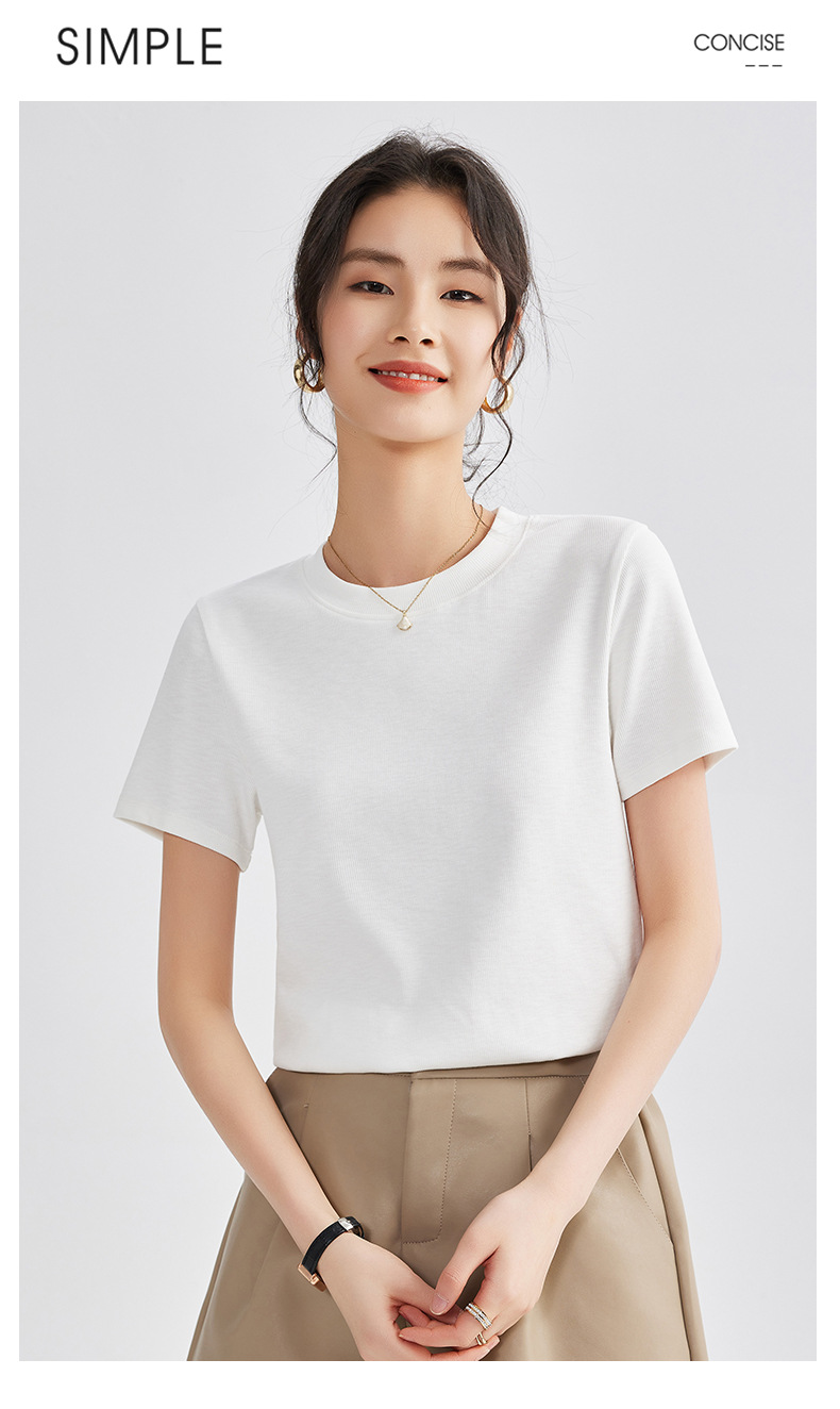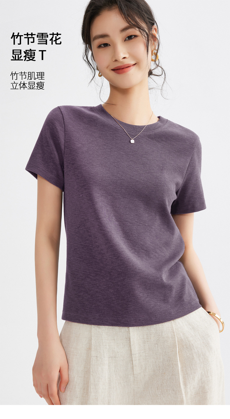 丁摩 圆领纯色百搭重磅竹节雪花棉t恤女新款基础款正肩弹力上衣女5ZF-M677