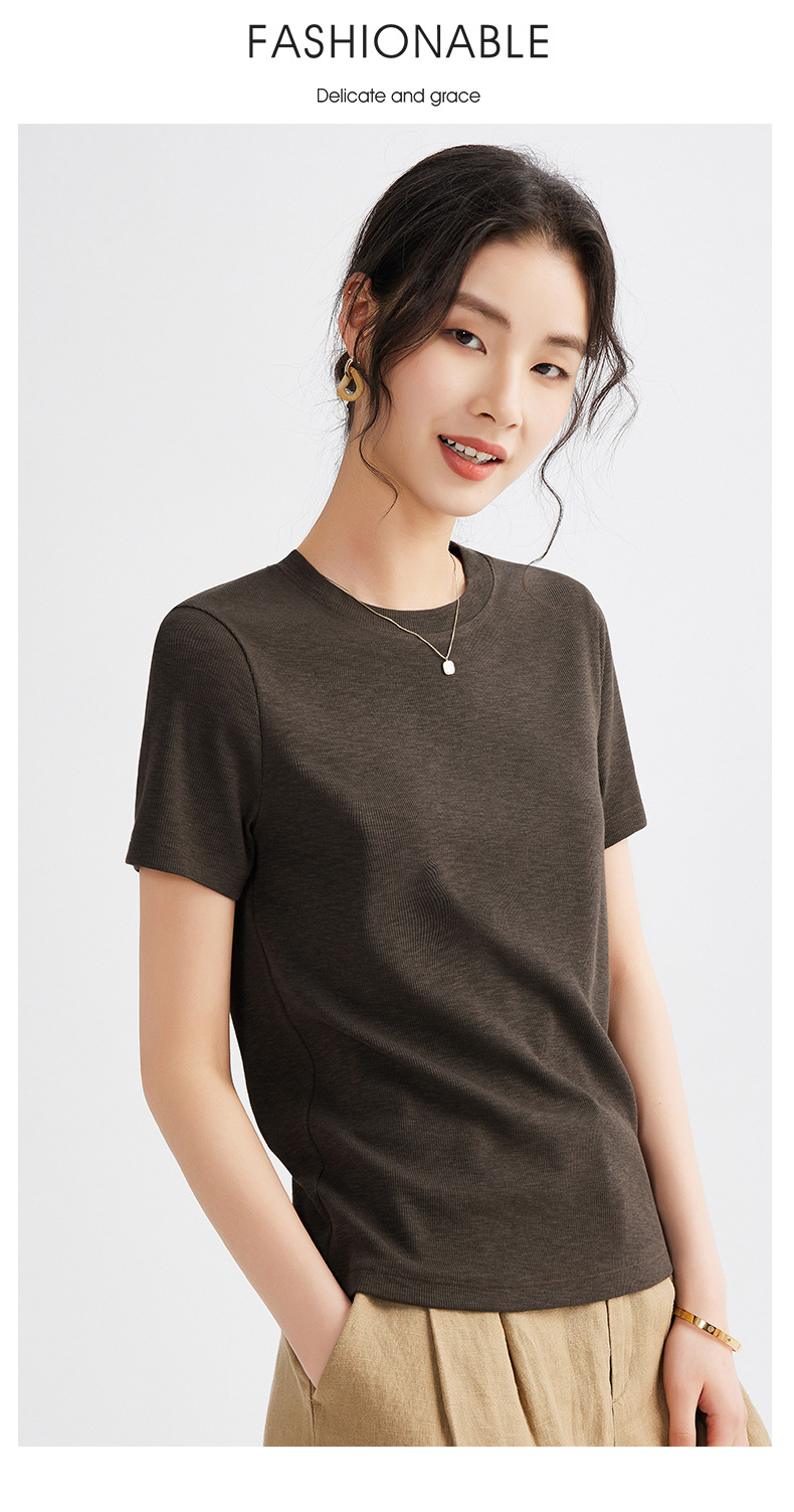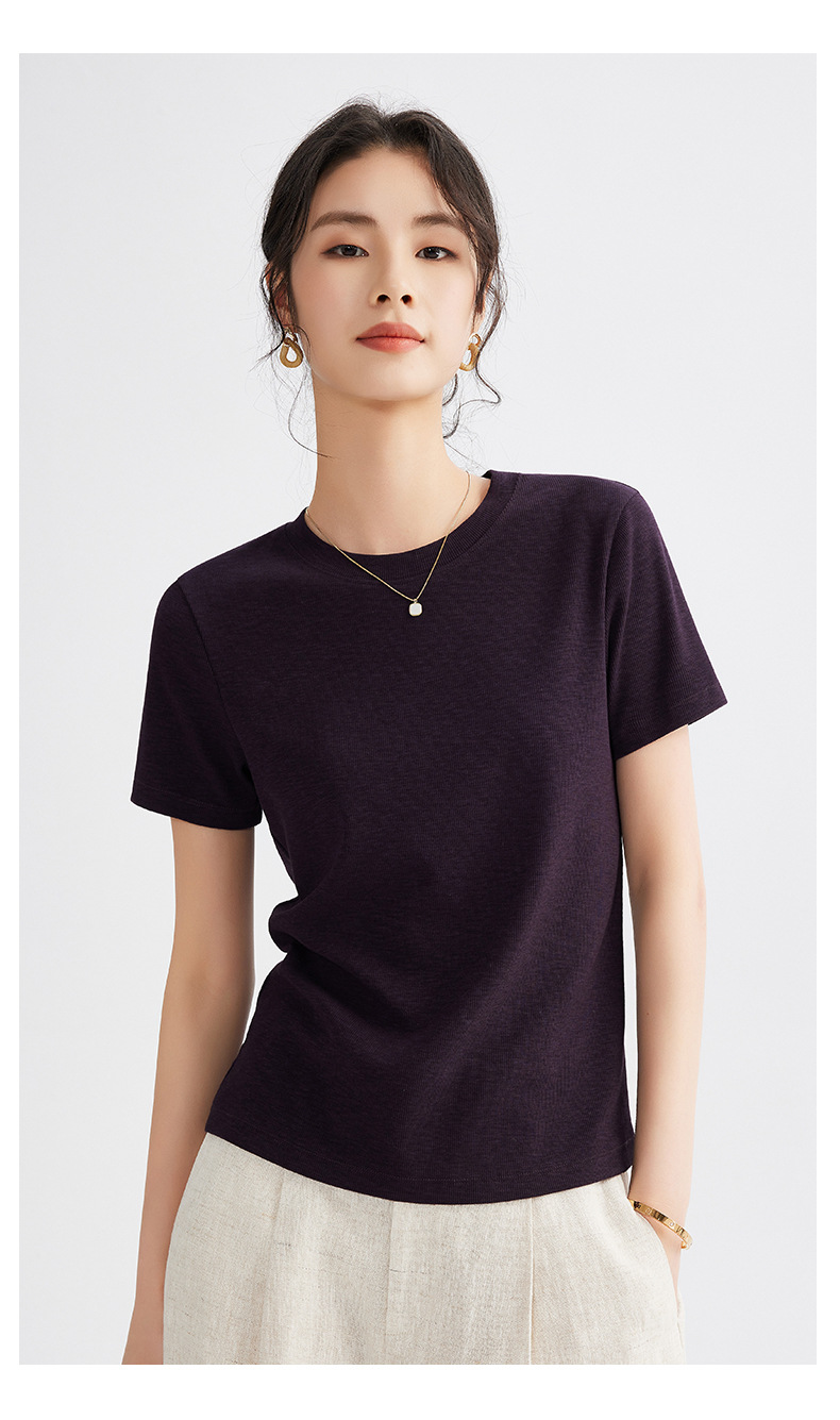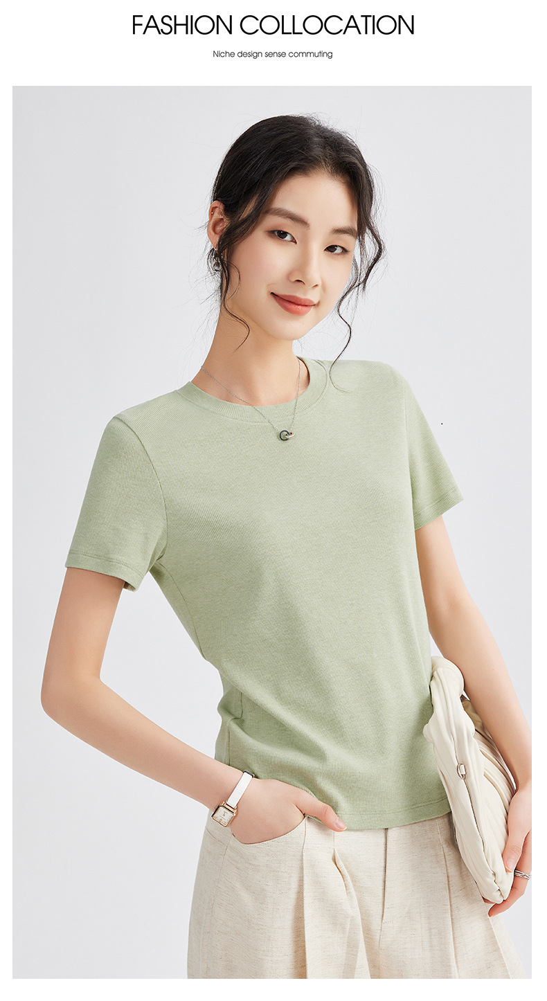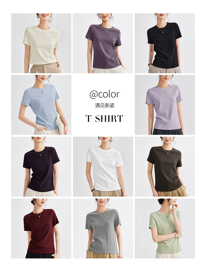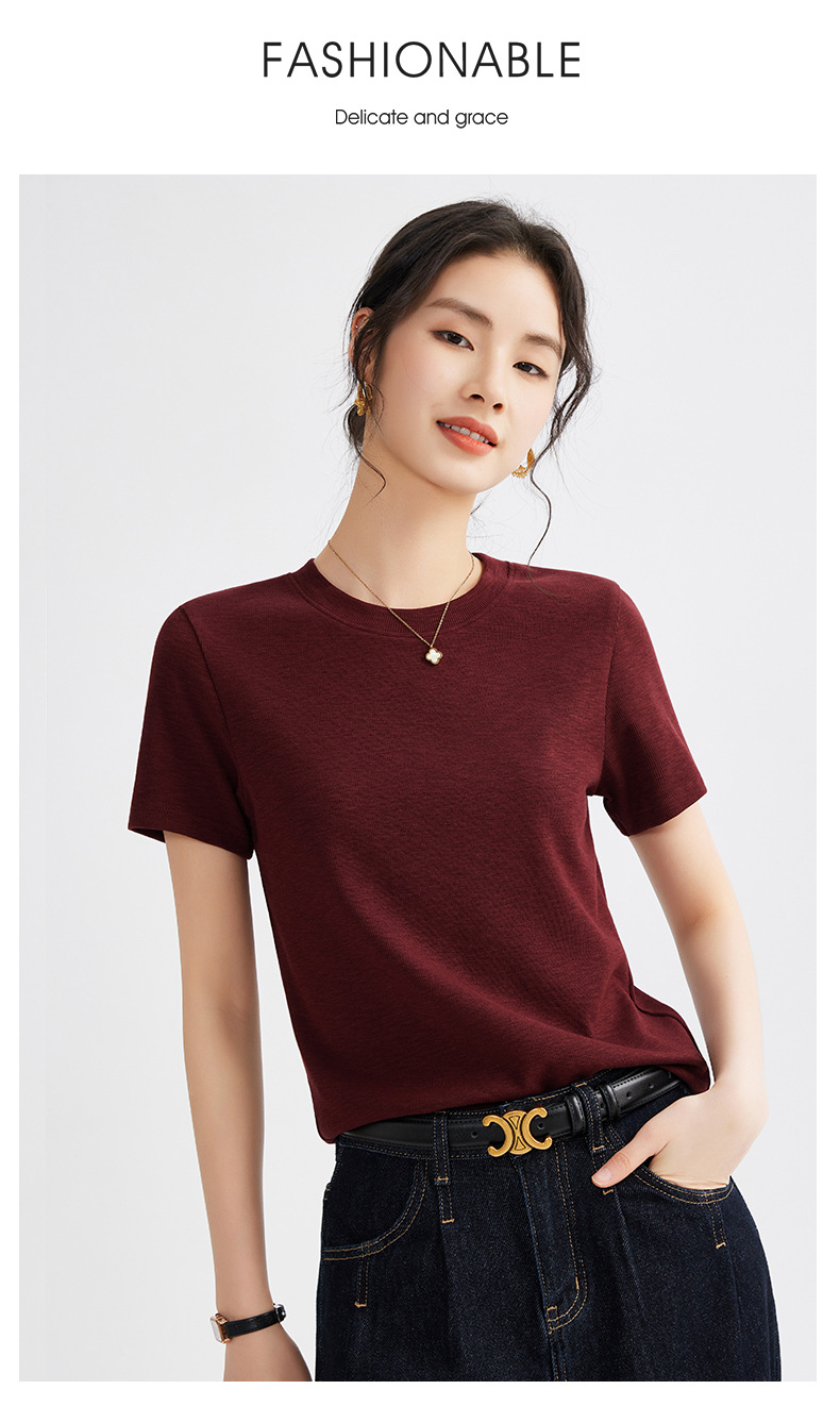 丁摩 圆领纯色百搭重磅竹节雪花棉t恤女新款基础款正肩弹力上衣女5ZF-M677