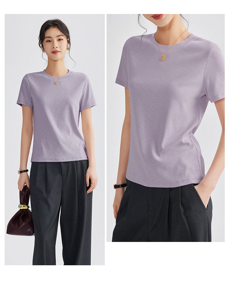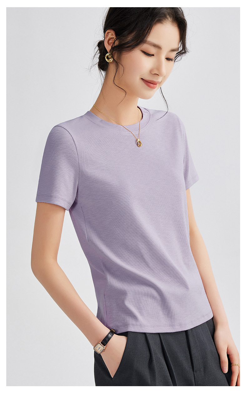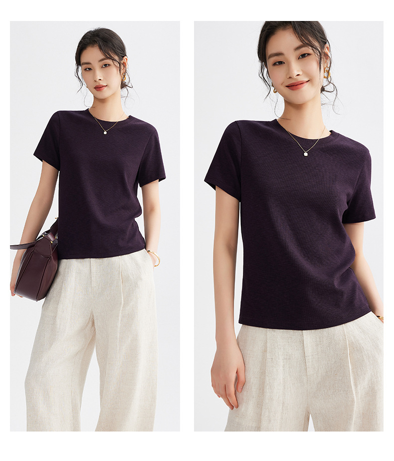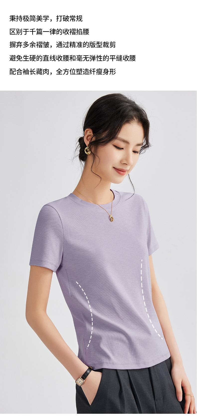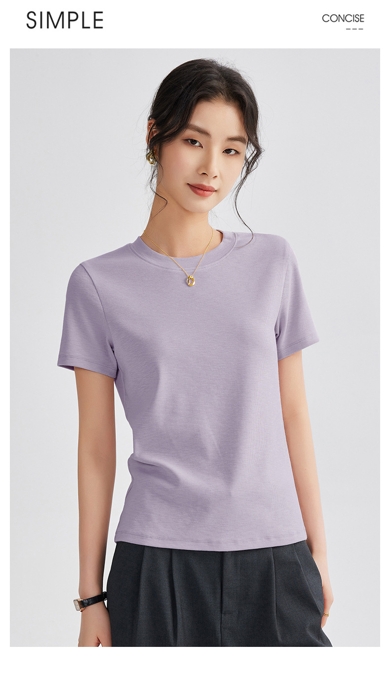 丁摩 圆领纯色百搭重磅竹节雪花棉t恤女新款基础款正肩弹力上衣女5ZF-M677
