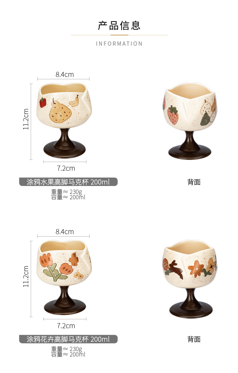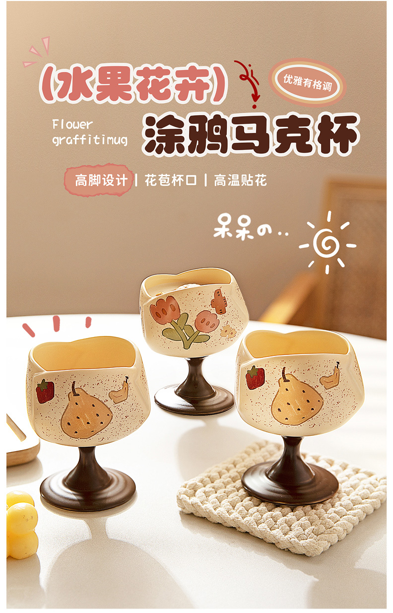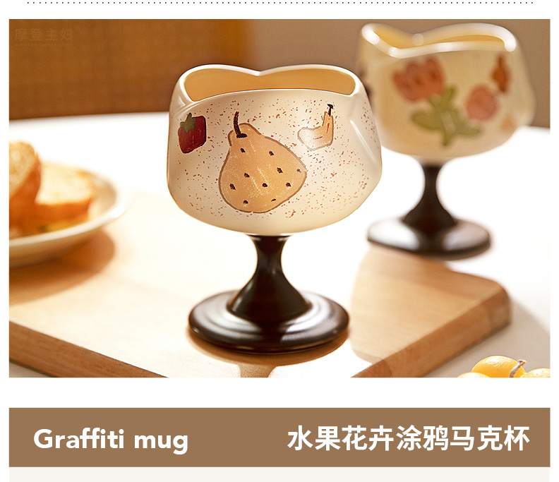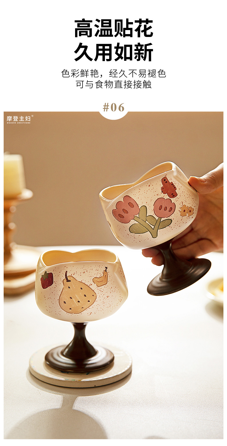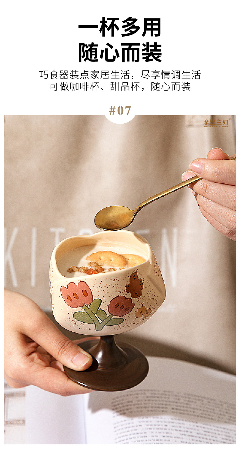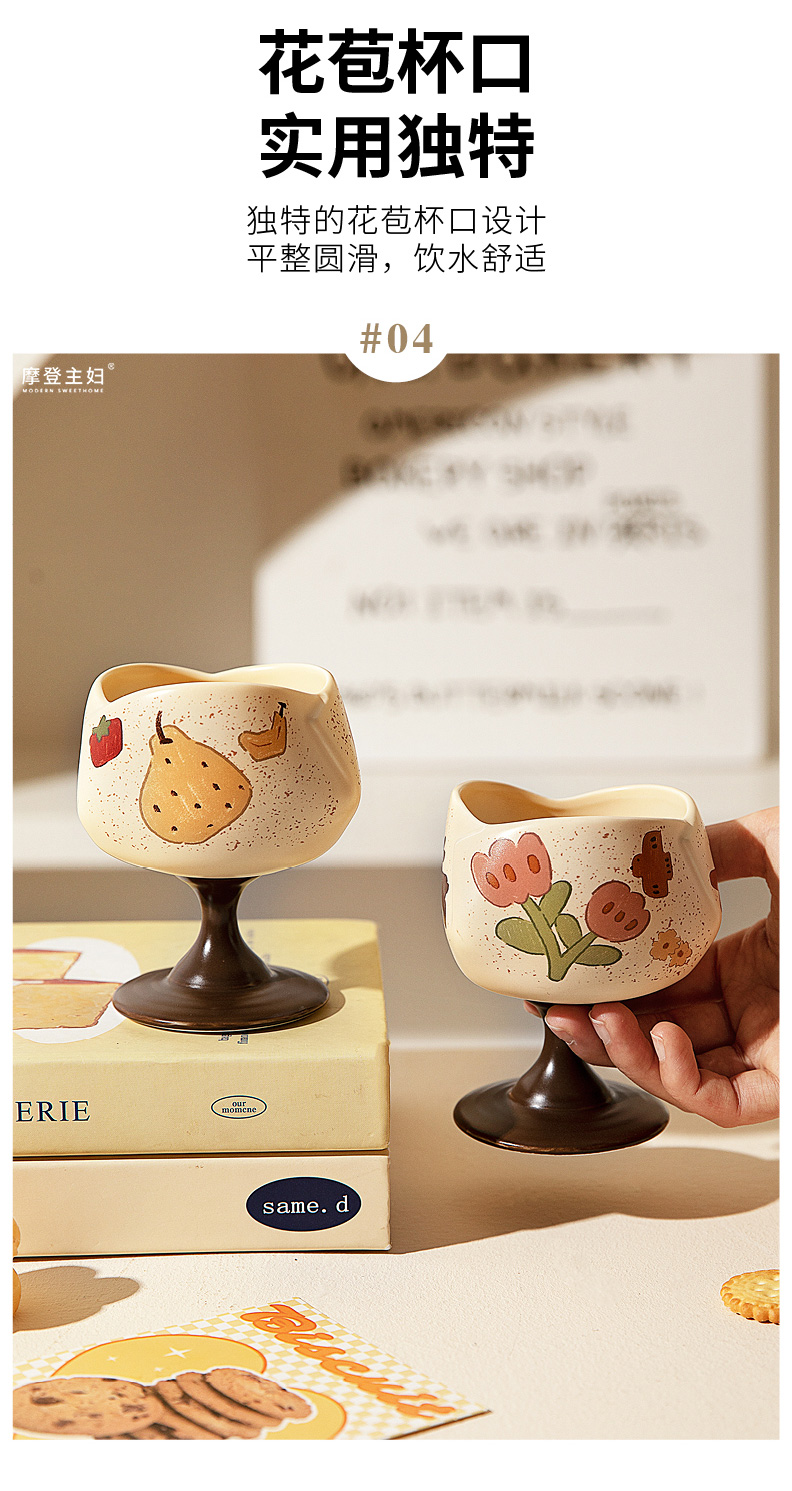 摩登主妇陶瓷马克杯高脚杯高颜值家用喝水杯可爱甜品酒杯咖啡杯子