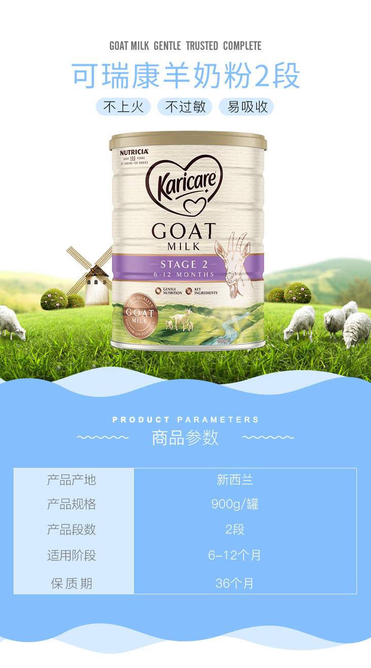 新西兰原装进口 可瑞康(Karicare) 幼儿配方绵羊奶粉2段 900g