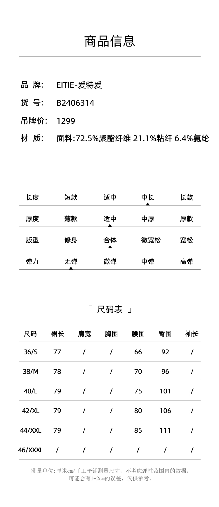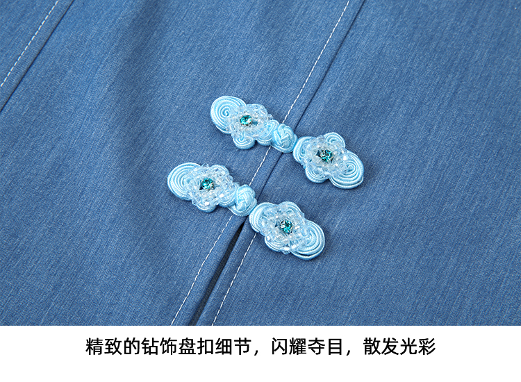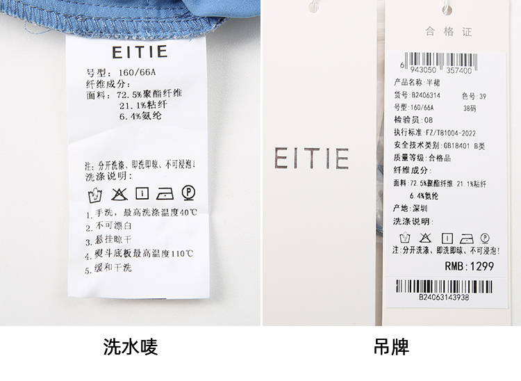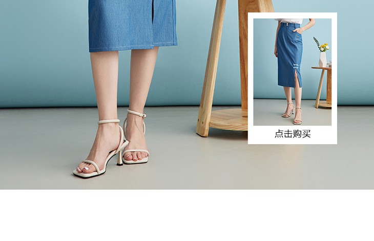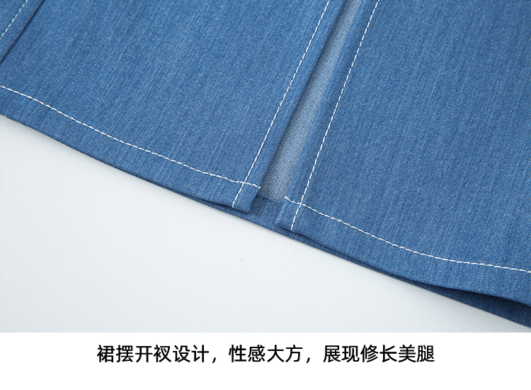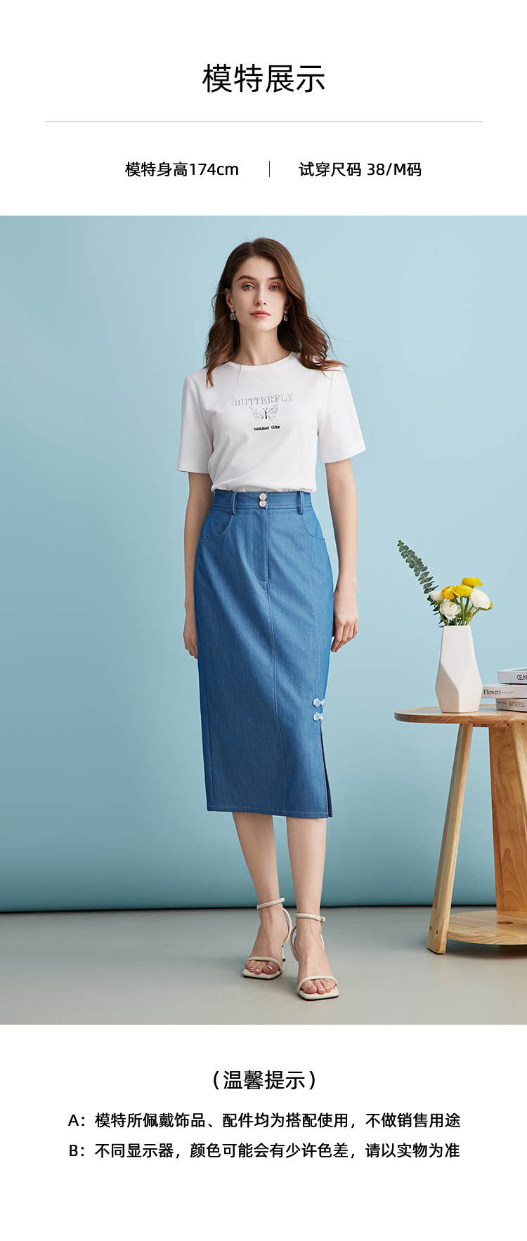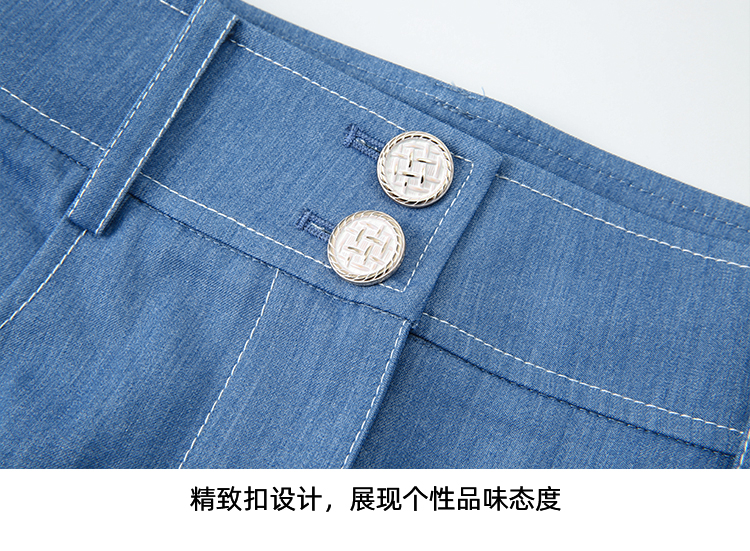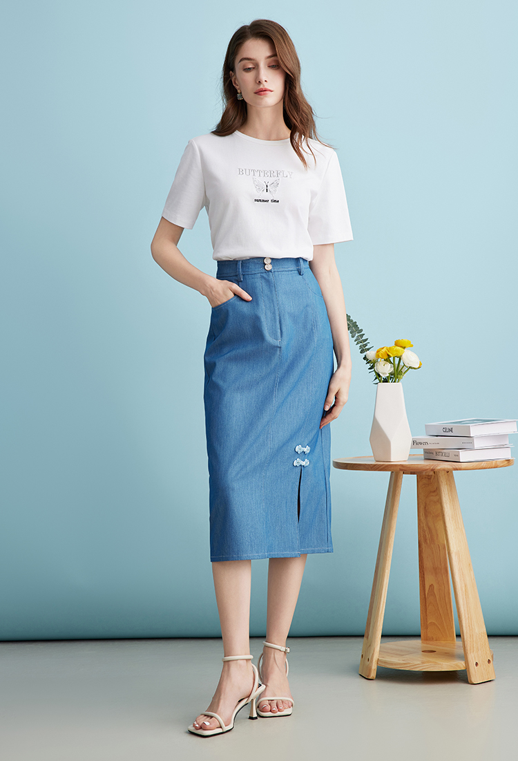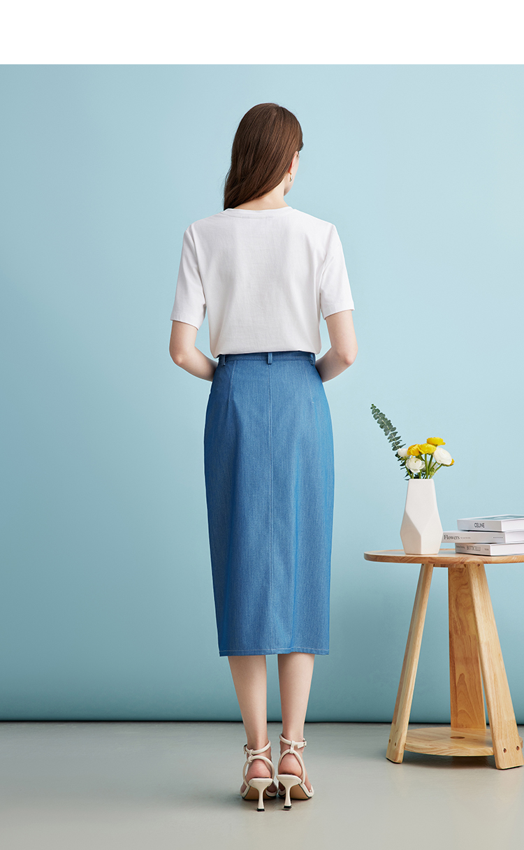 EITIE爱特爱夏季新款时尚复古高腰包臀中式盘扣牛仔蓝半身裙B2406314