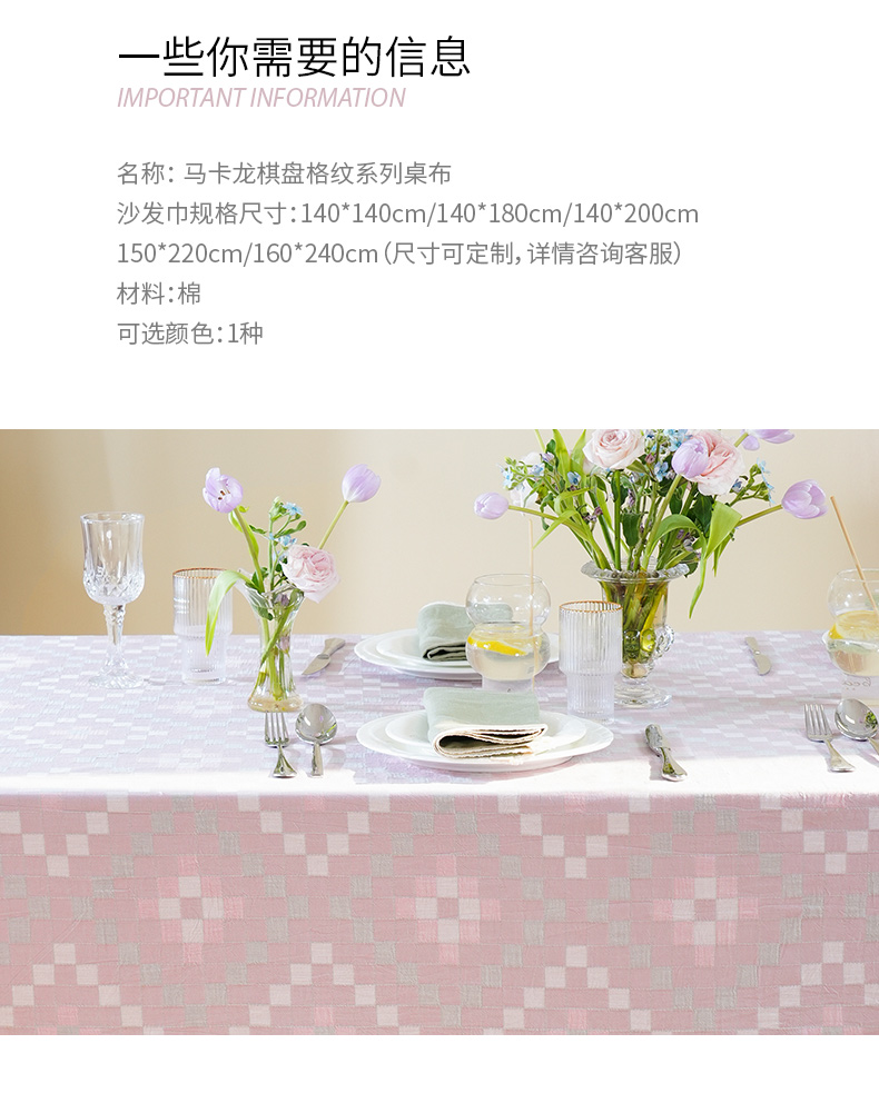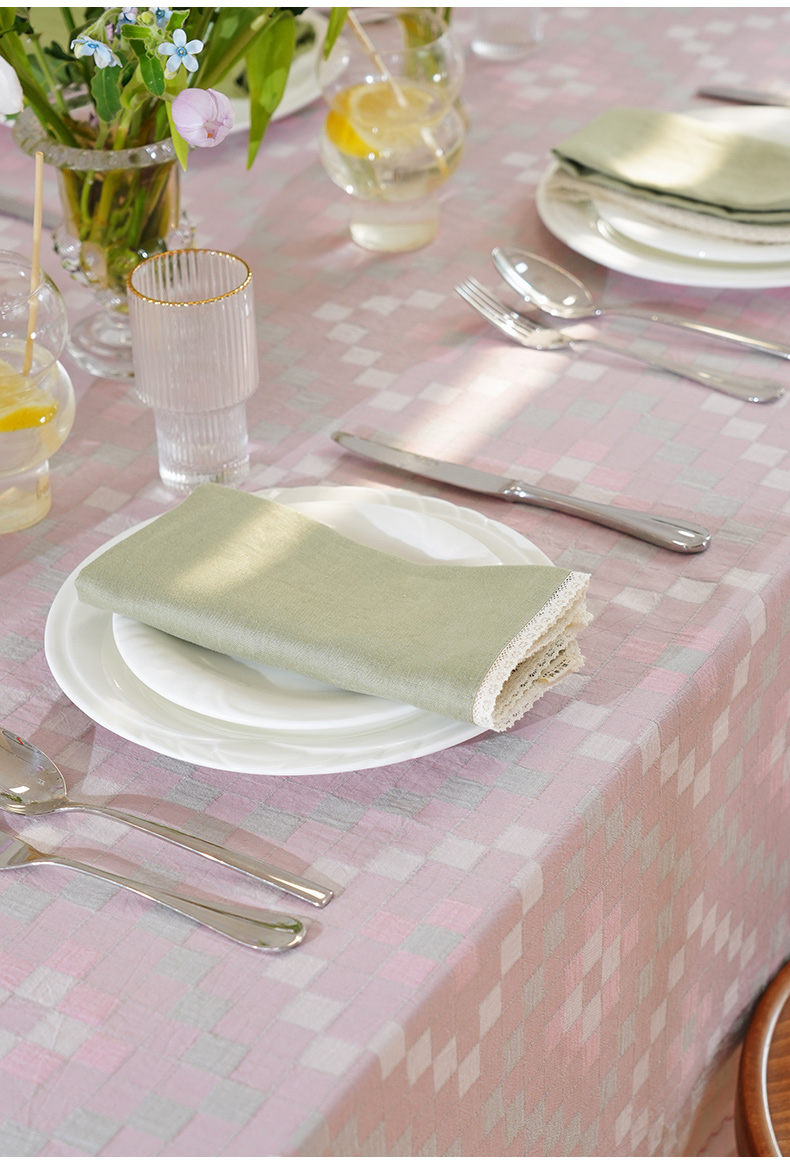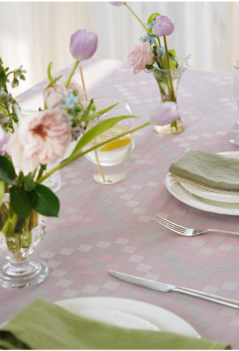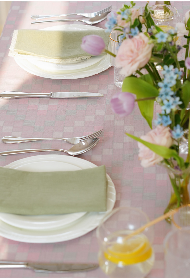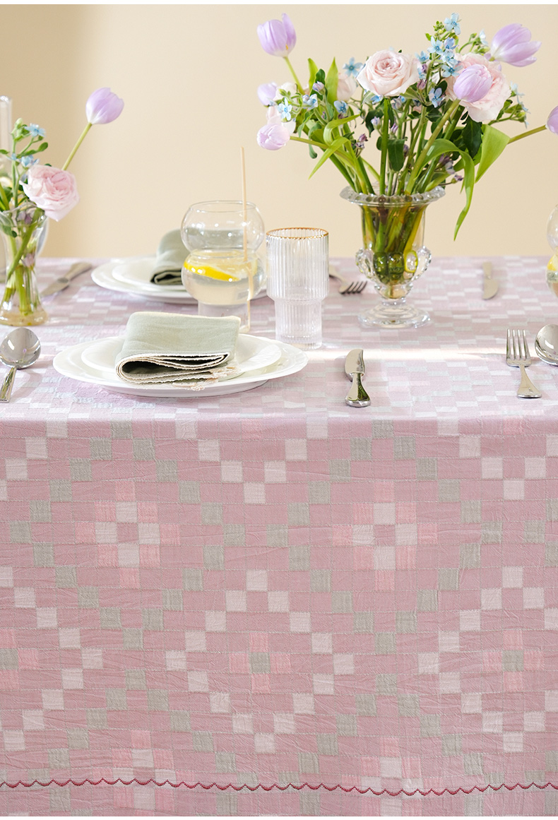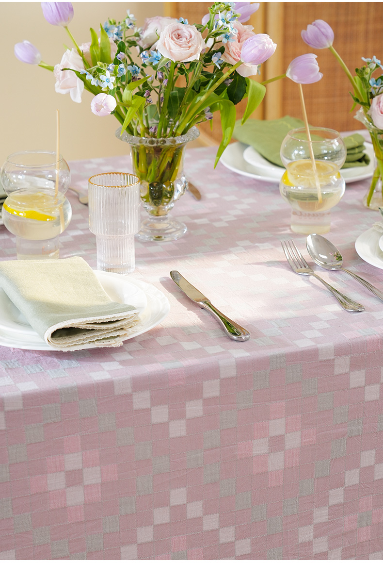 马卡龙棋盘格纹系列桌布茶几餐桌轻奢棉高级感长方形氛围感法式复古结婚定制