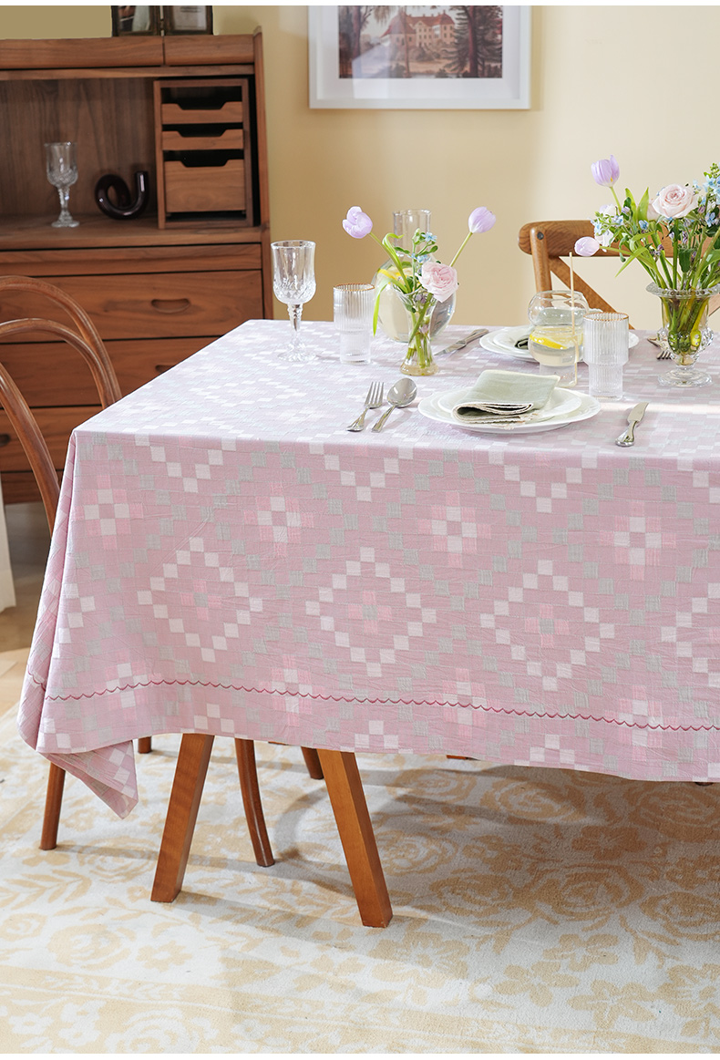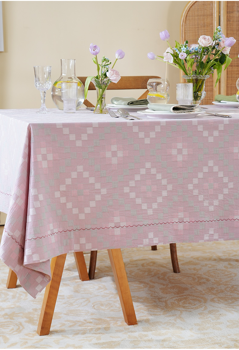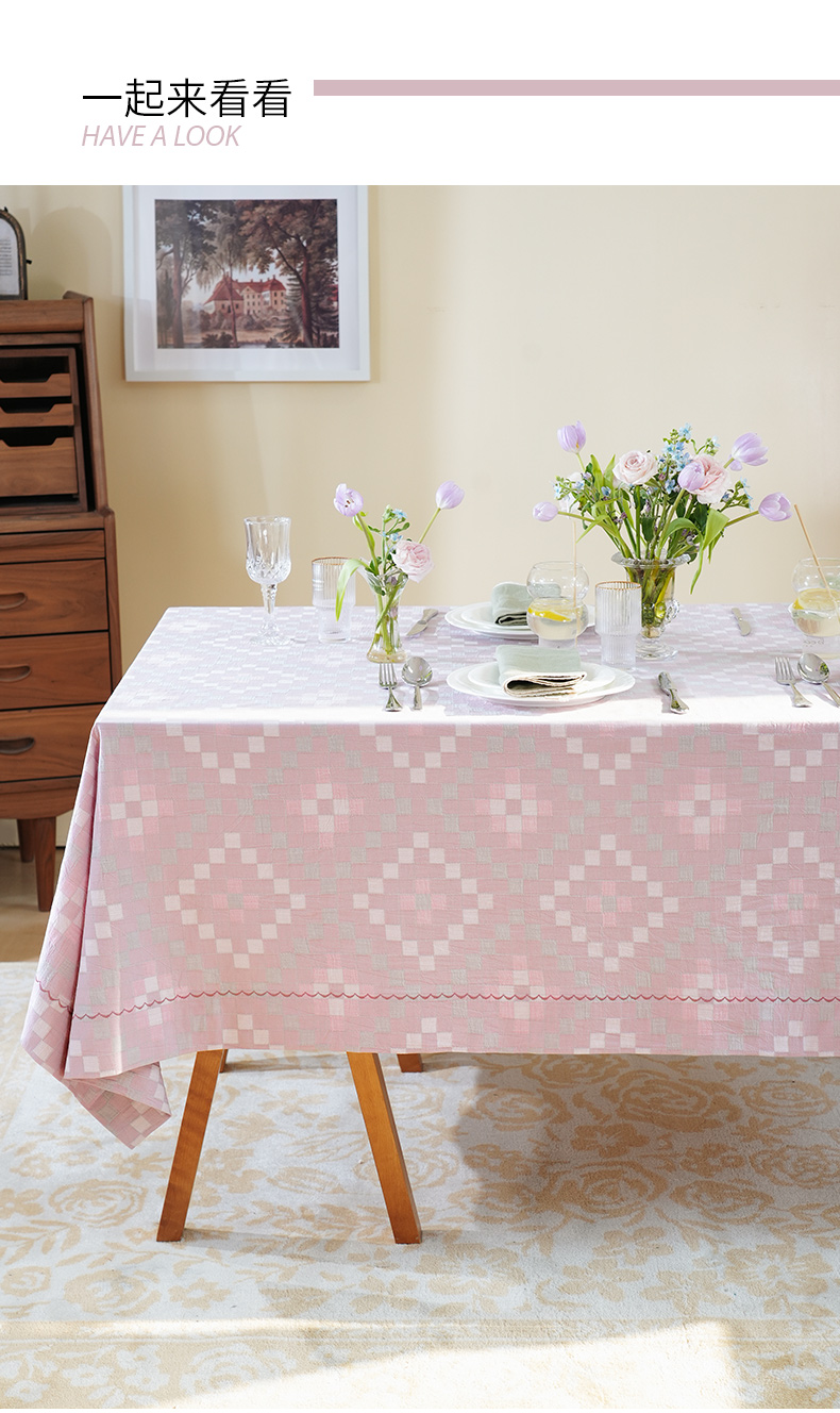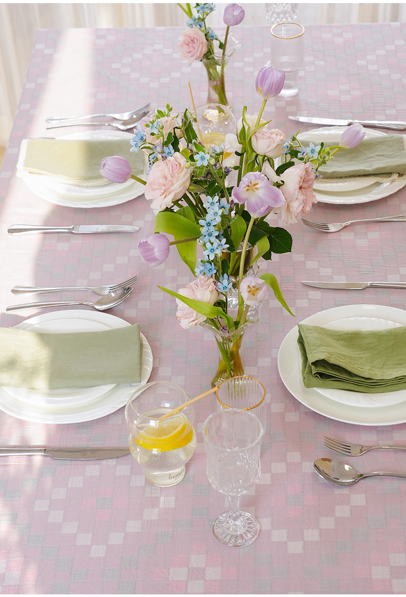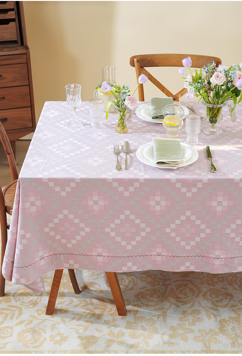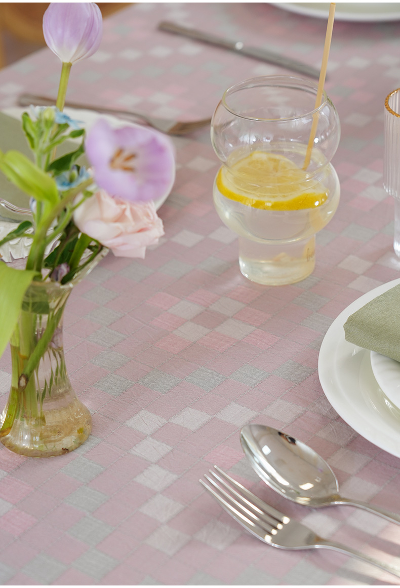 马卡龙棋盘格纹系列桌布茶几餐桌轻奢棉高级感长方形氛围感法式复古结婚定制