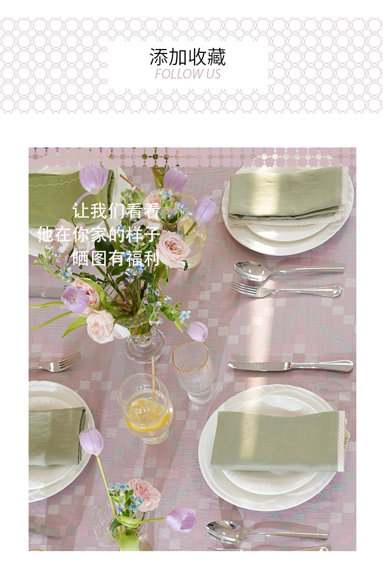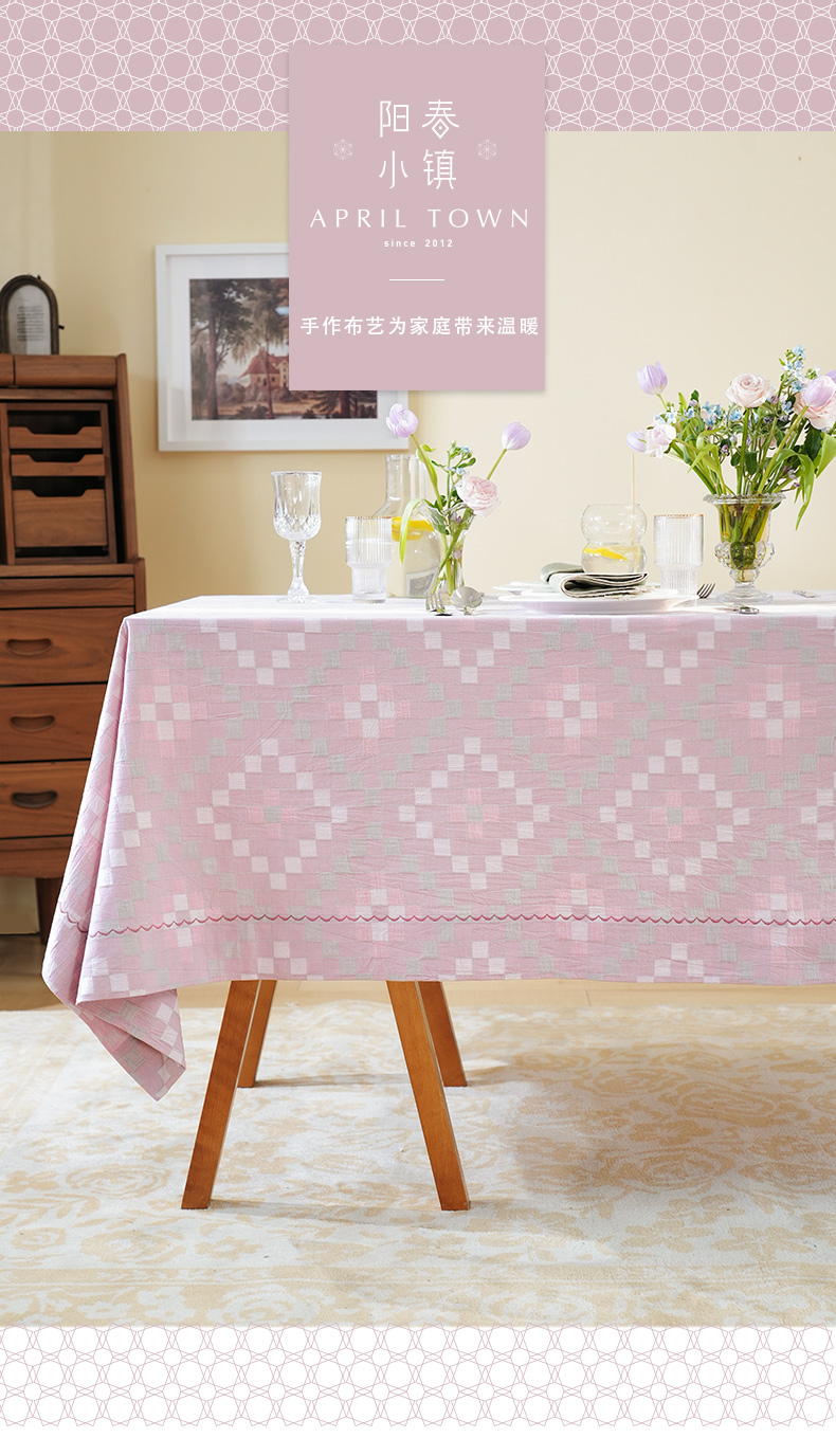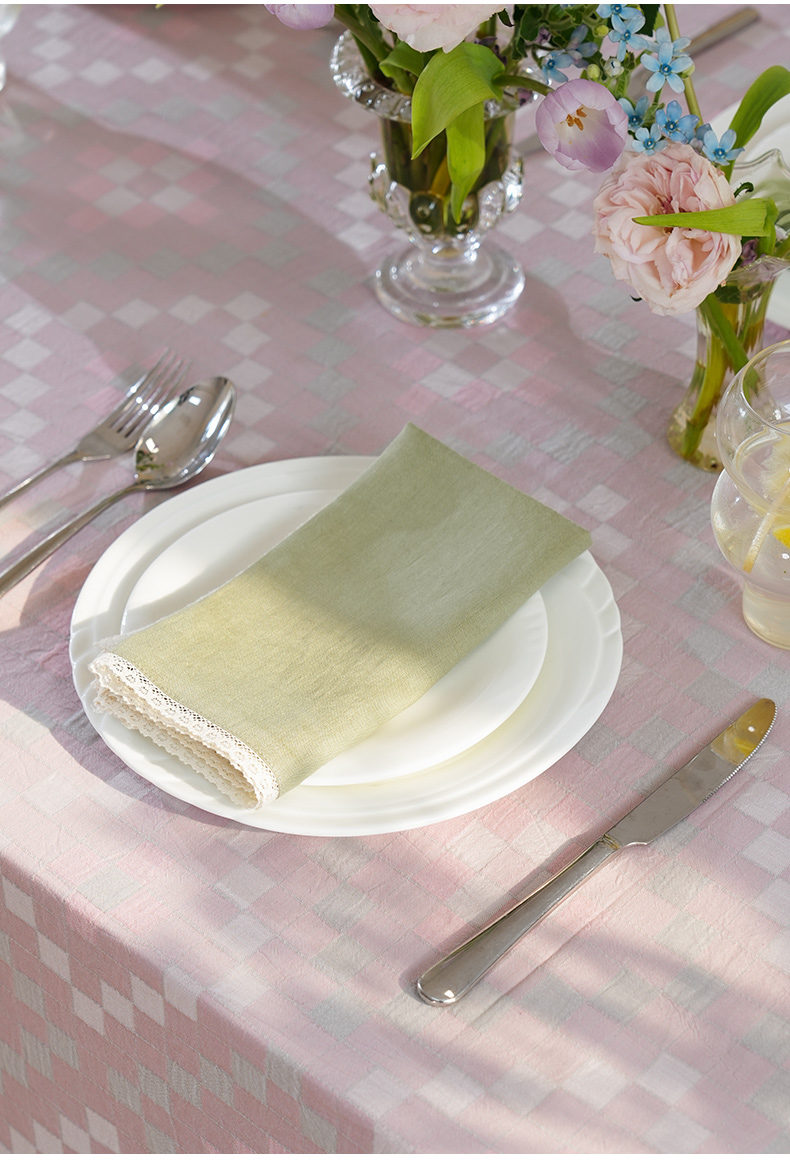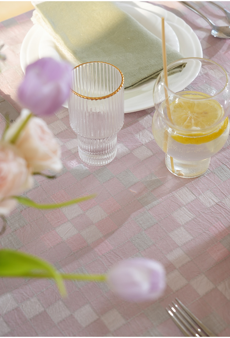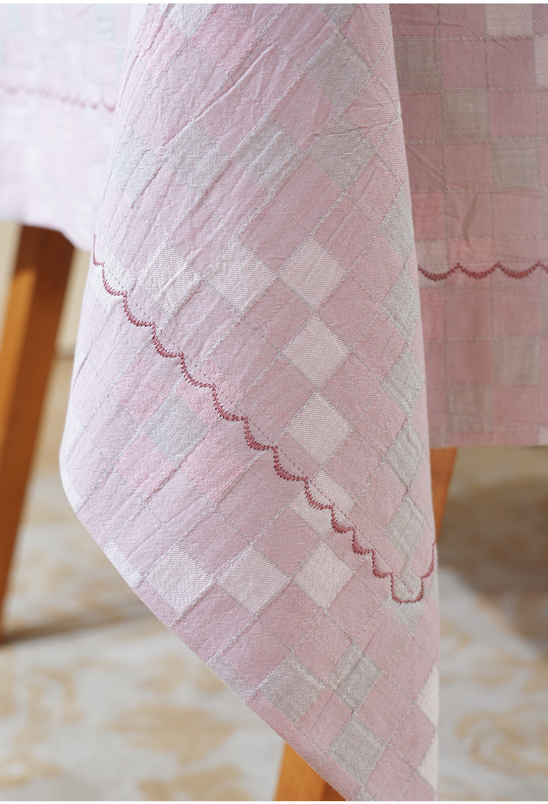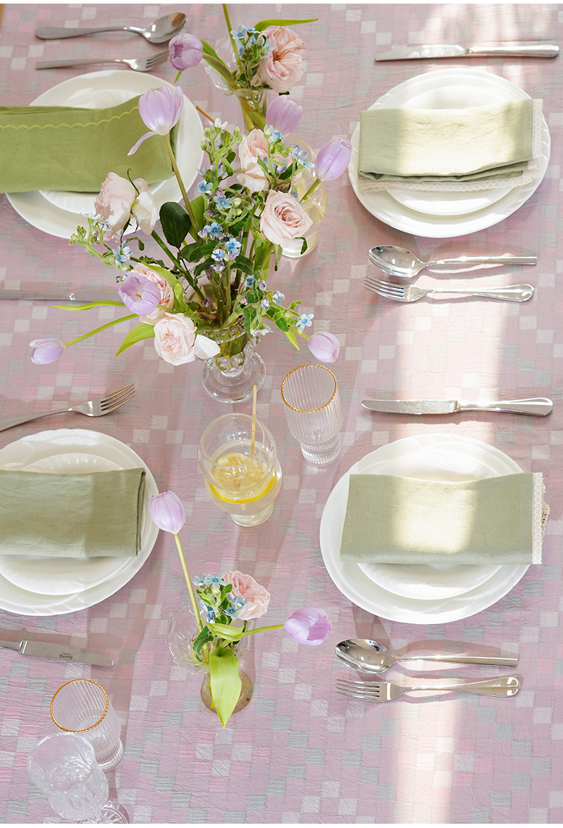 马卡龙棋盘格纹系列桌布茶几餐桌轻奢棉高级感长方形氛围感法式复古结婚定制