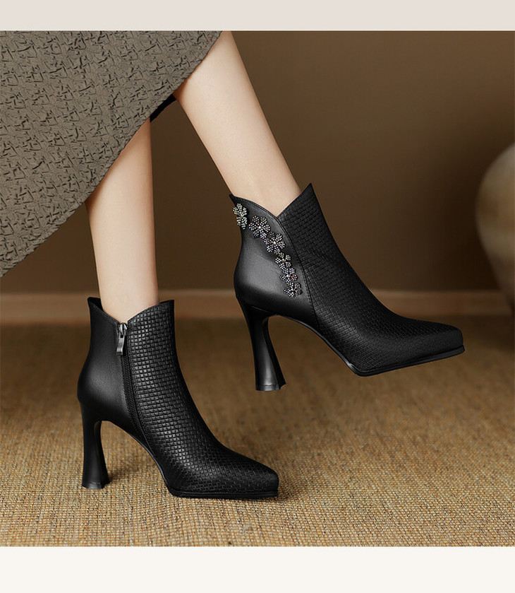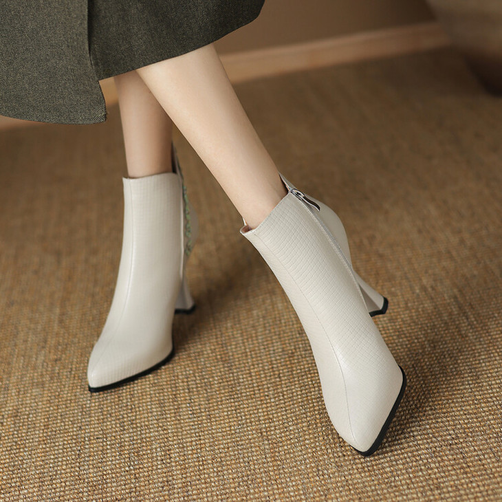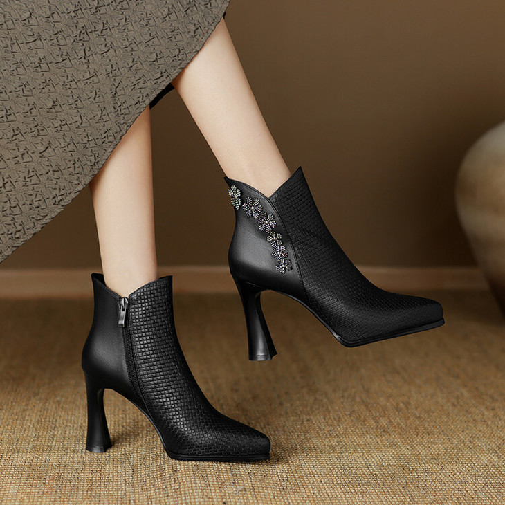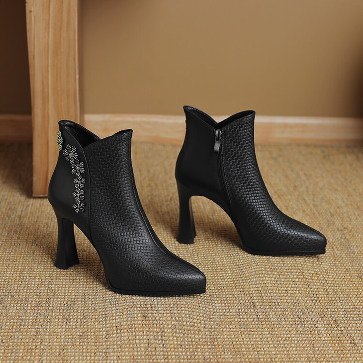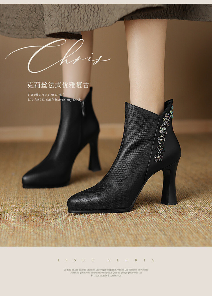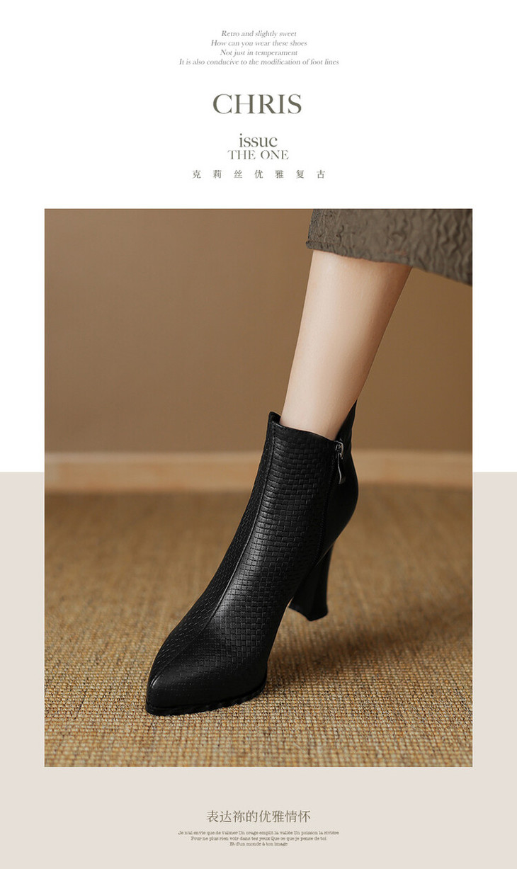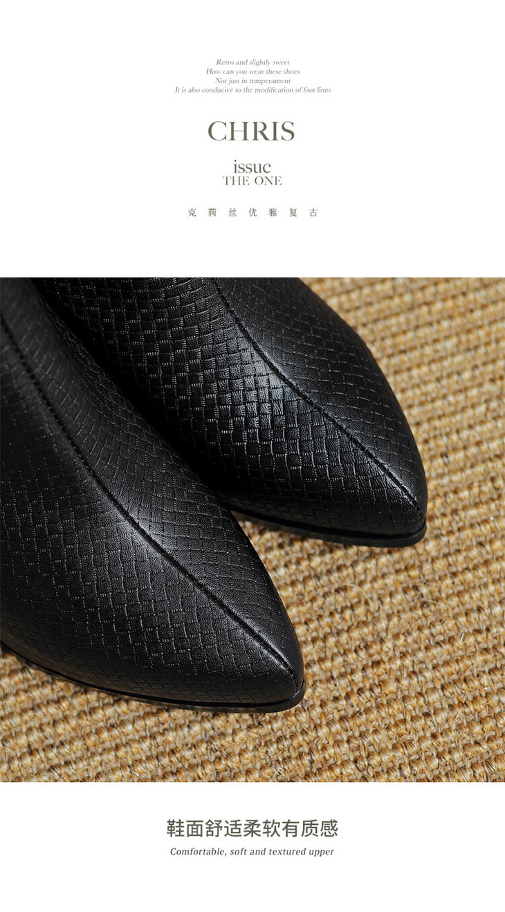货号:1512鞋面材质:牛皮压花内里:单里 绒里鞋底材质:牛筋底跟高:9.5厘米掌 宽:8cm尺码: 34-39颜色:黑色 米白色