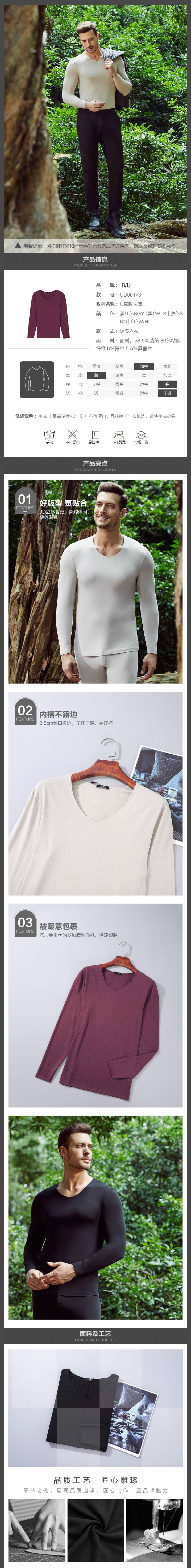 安莉芳旗下IVU男士秋季薄款V领暖衣上装舒适修身打底衫UD00123