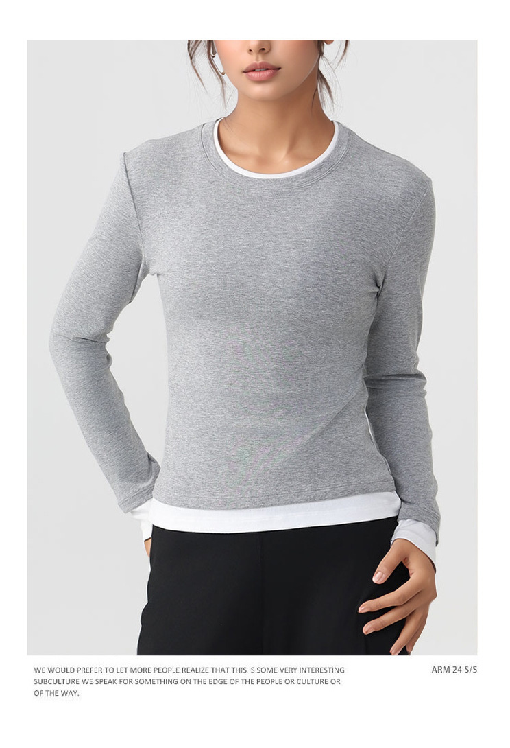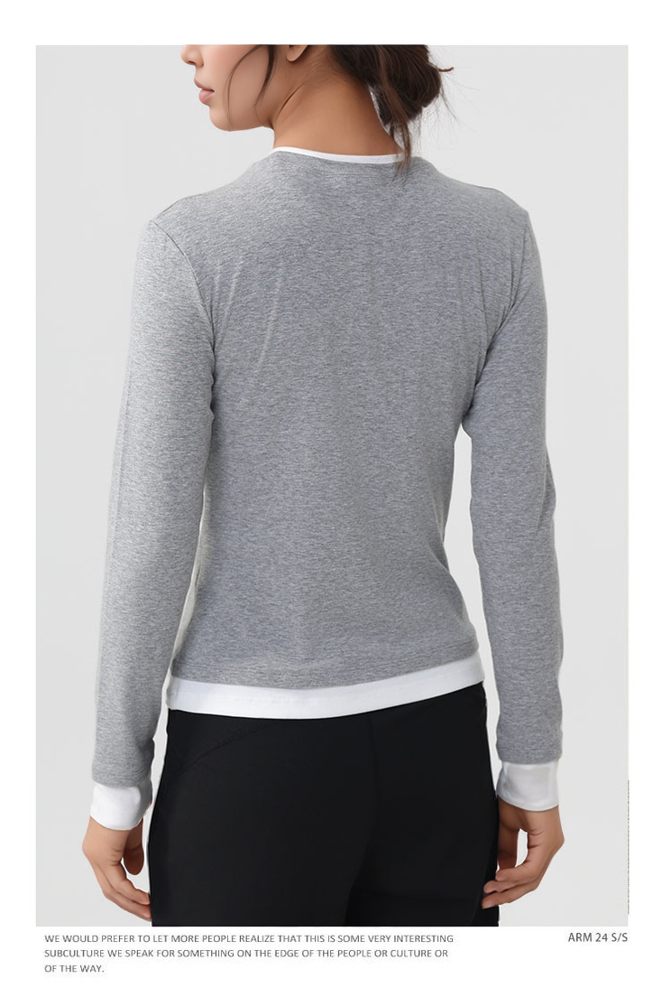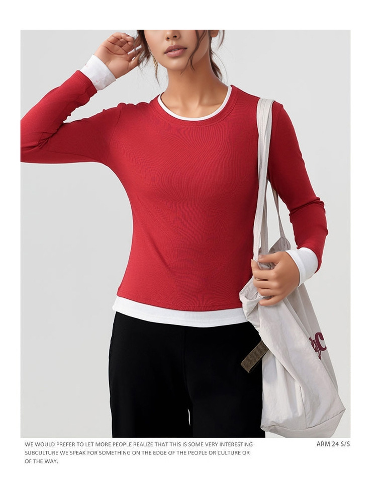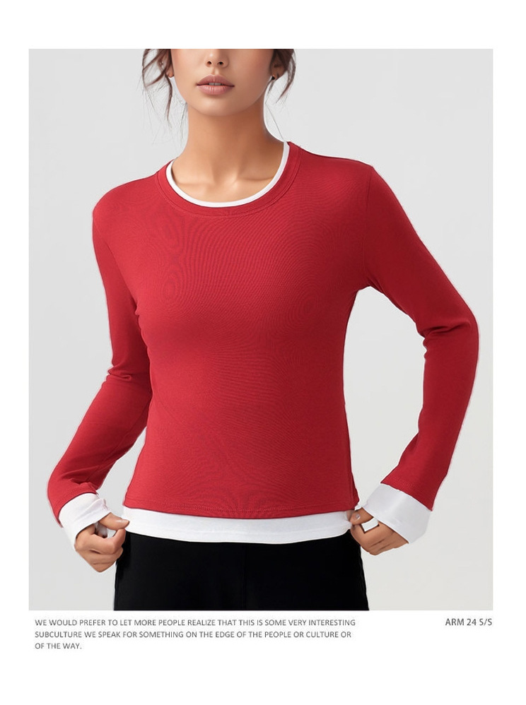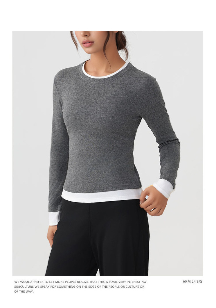 跃牌【美西西系列】天丝圆领撞色无缝一体 假两件修身运动长袖T恤健身瑜伽服CX-926