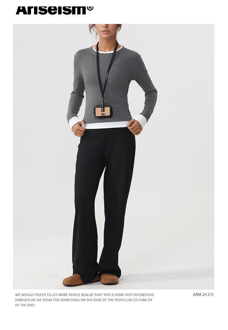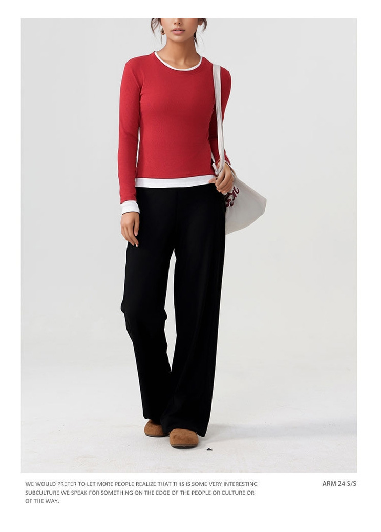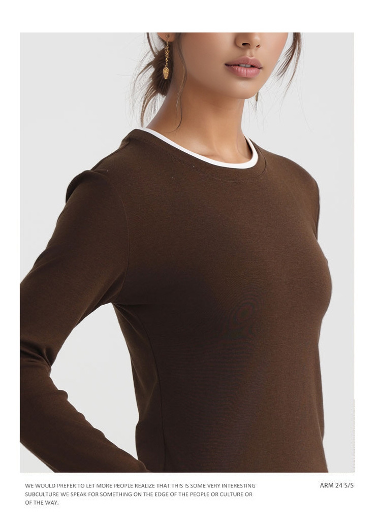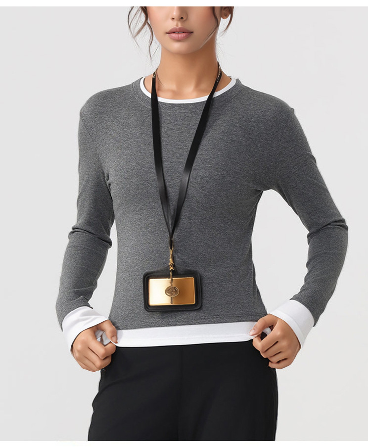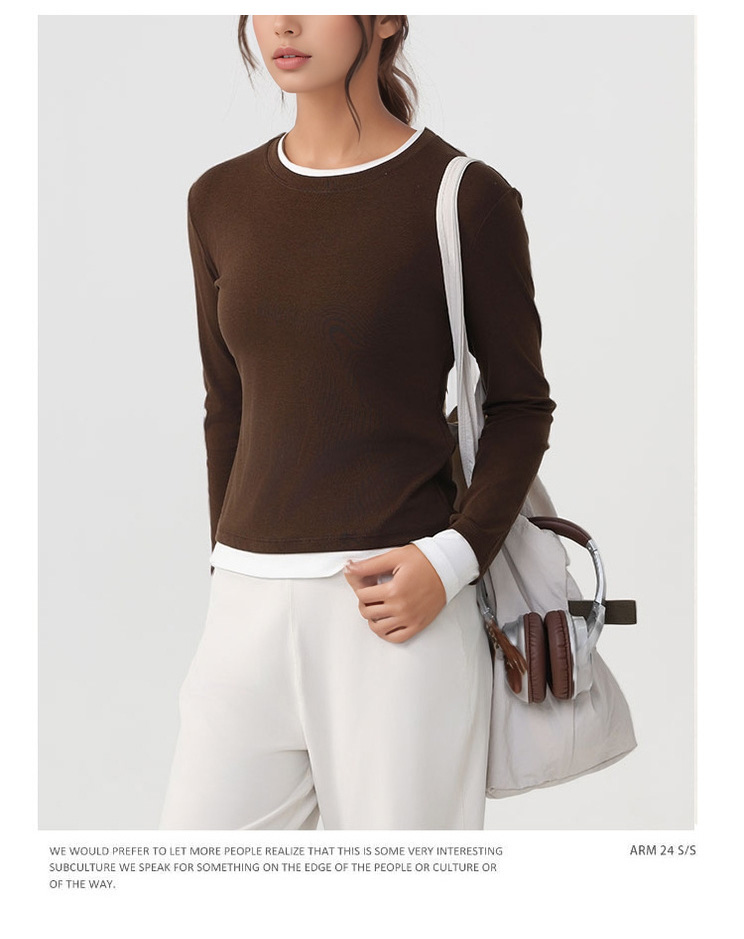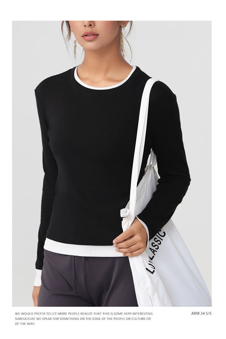跃牌【美西西系列】天丝圆领撞色无缝一体 假两件修身运动长袖T恤健身瑜伽服CX-926