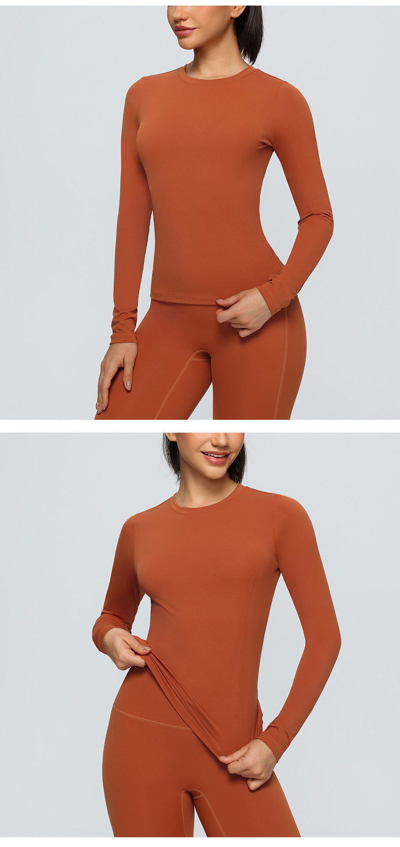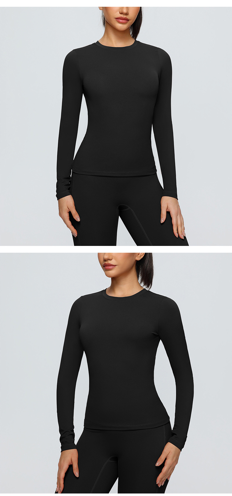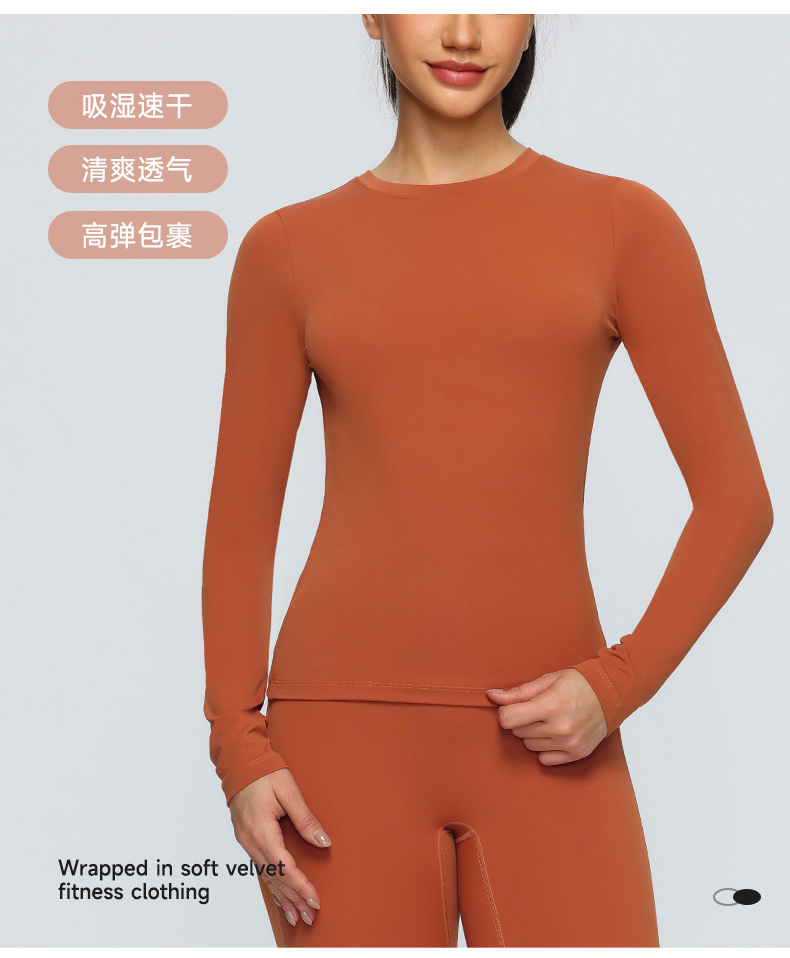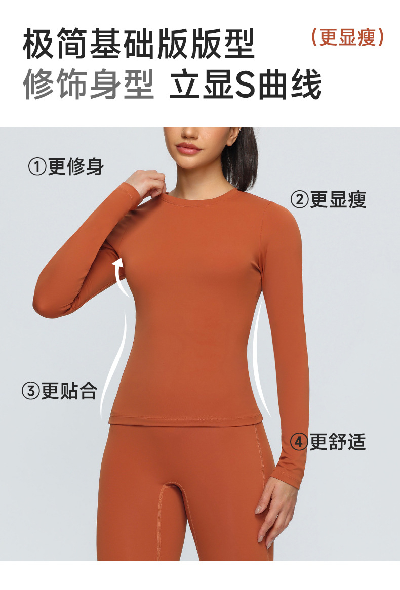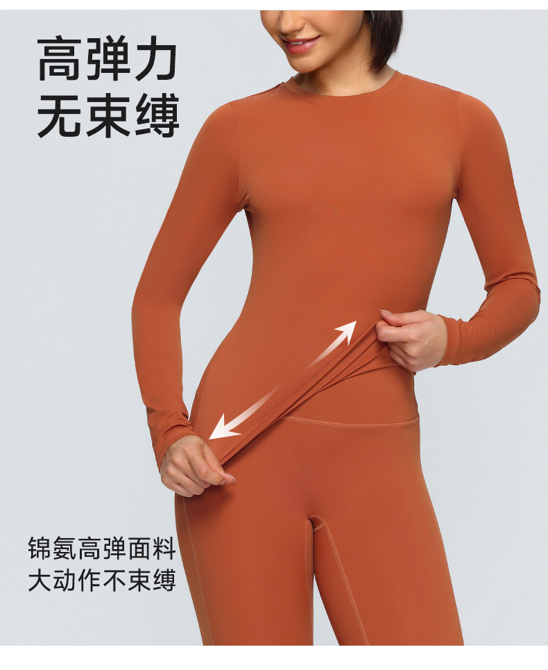 跃牌【欲动春风】系列 双面磨毛瑜伽长袖紧身训练运动T恤透气健身瑜伽服女52540