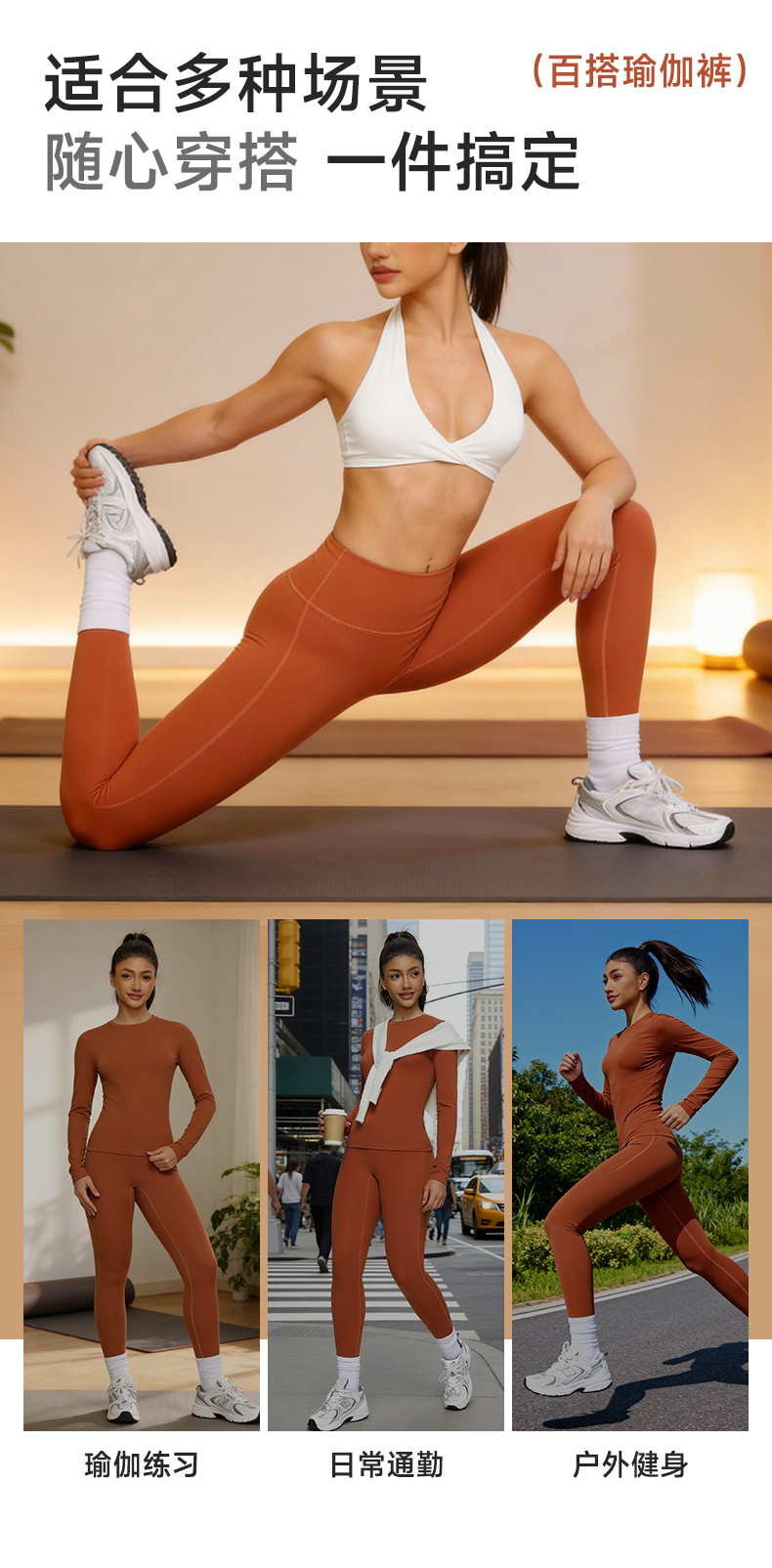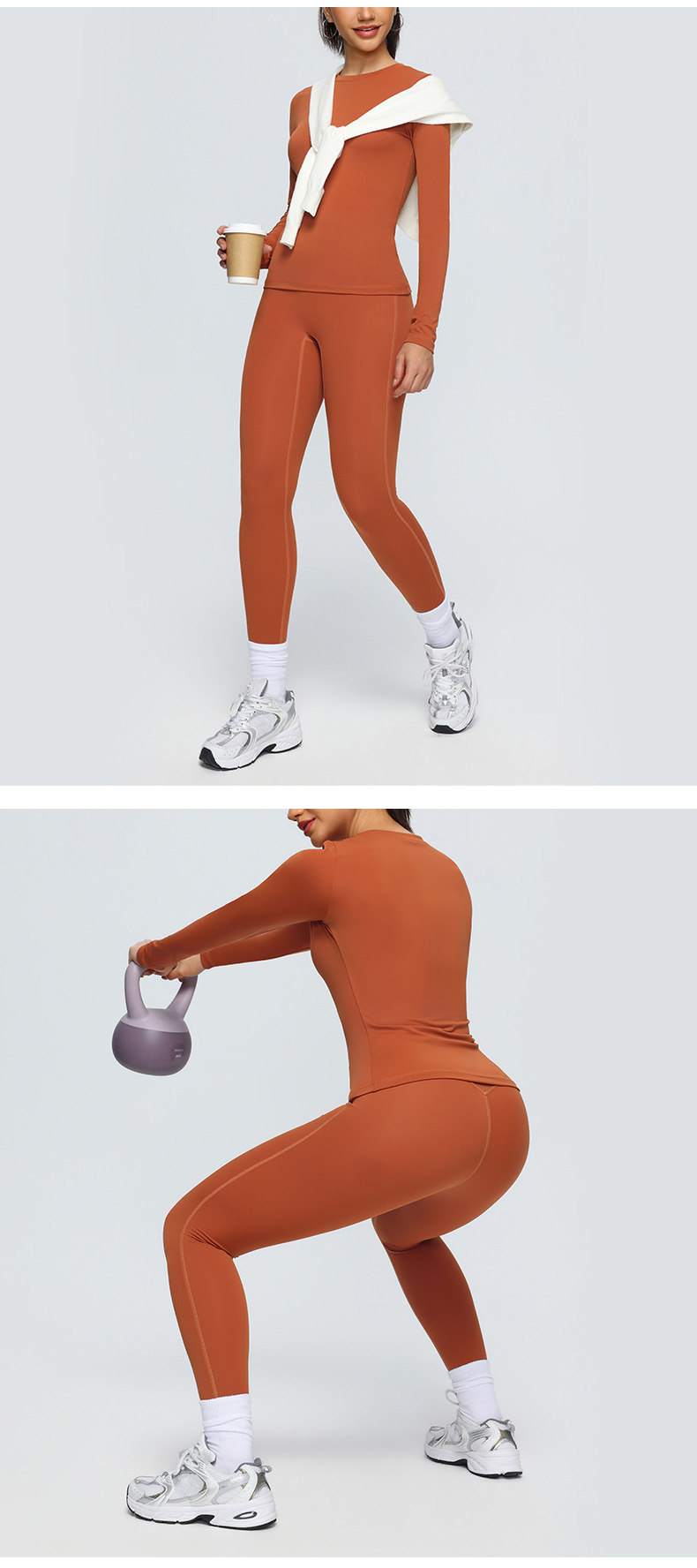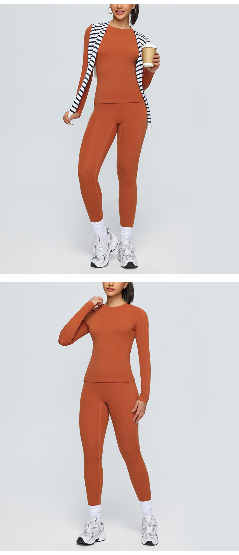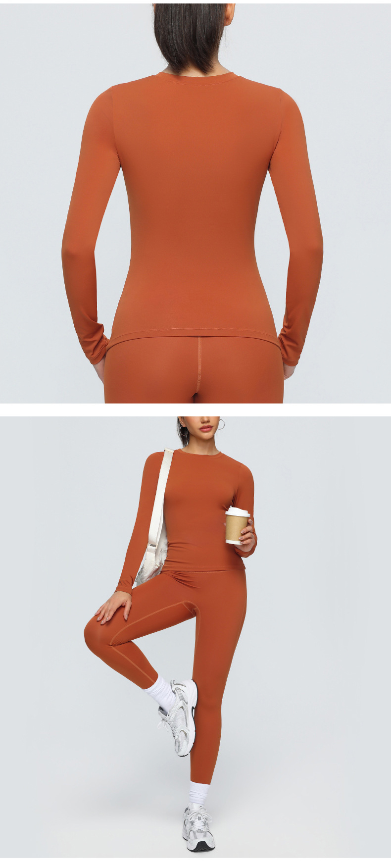 跃牌【欲动春风】系列 双面磨毛瑜伽长袖紧身训练运动T恤透气健身瑜伽服女52540