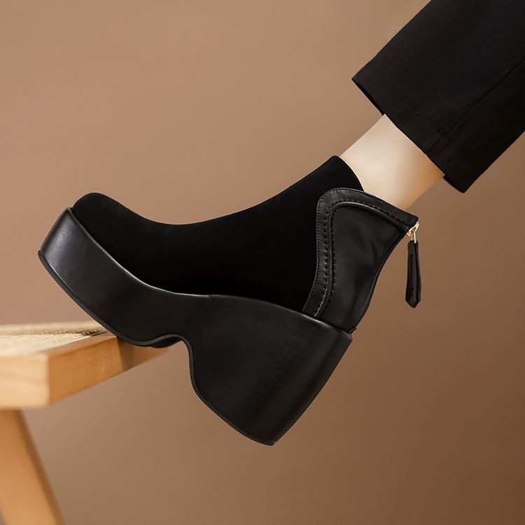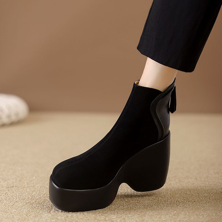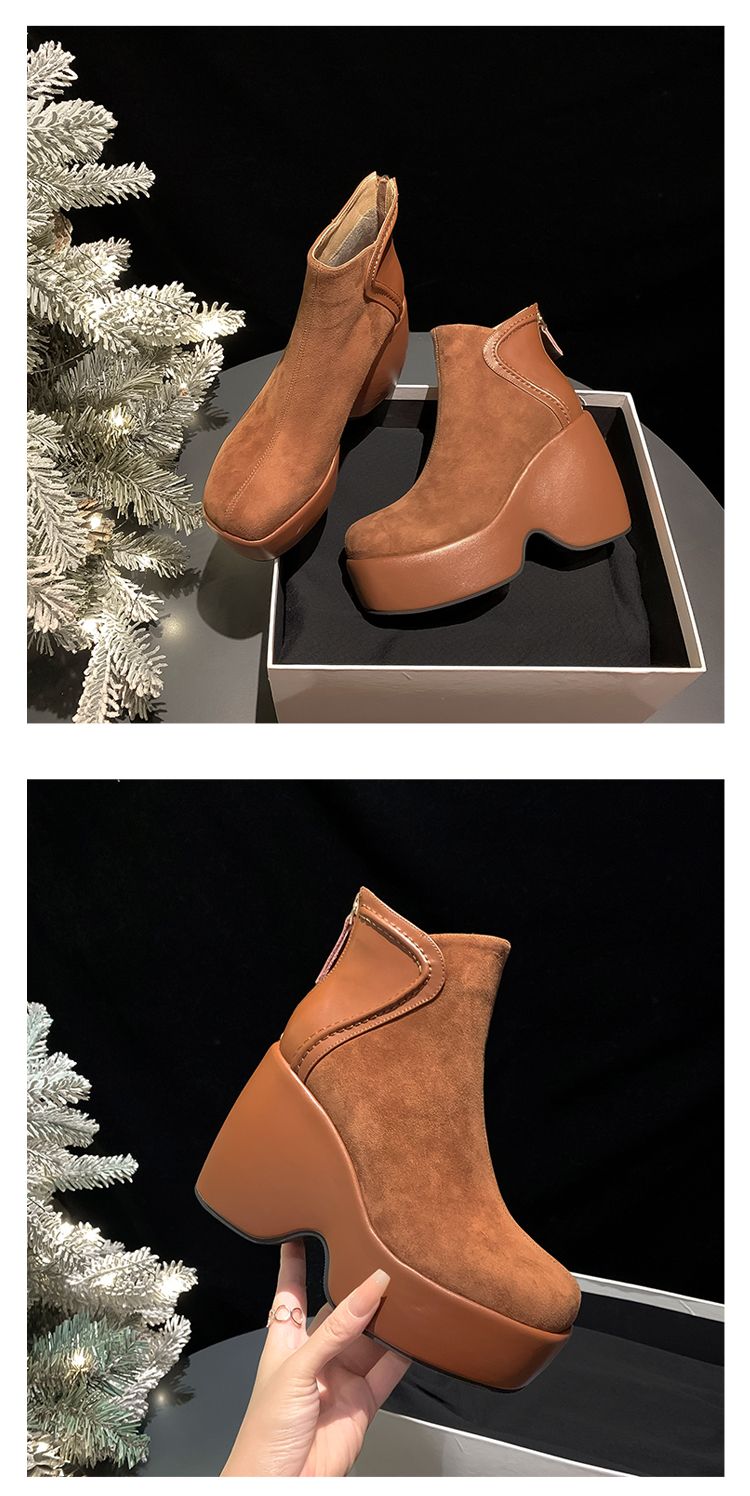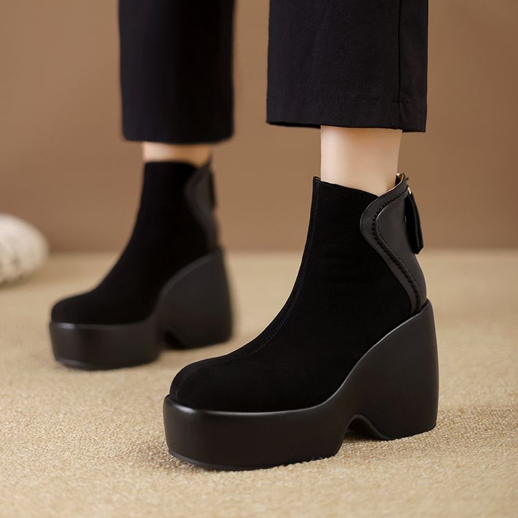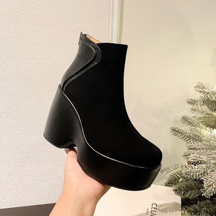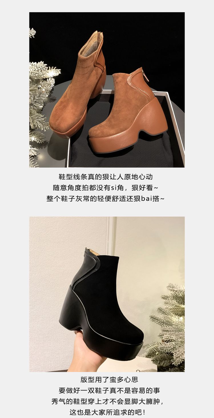 【预售5天】小个子厚底马丁靴女松糕瘦瘦靴秋冬季新款超高跟坡跟女短靴ZMXY&JL2648