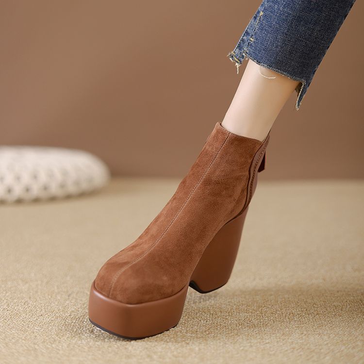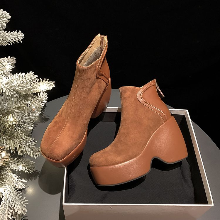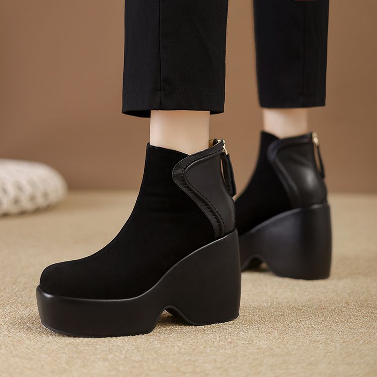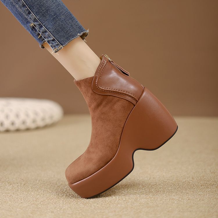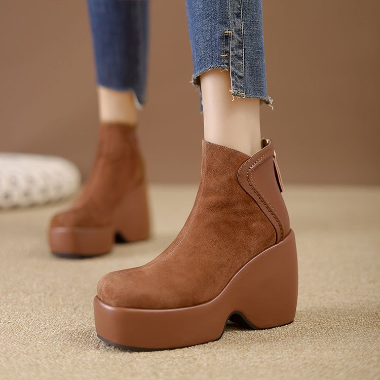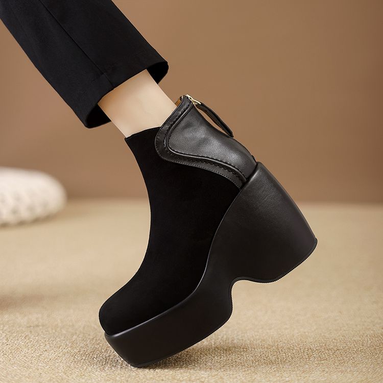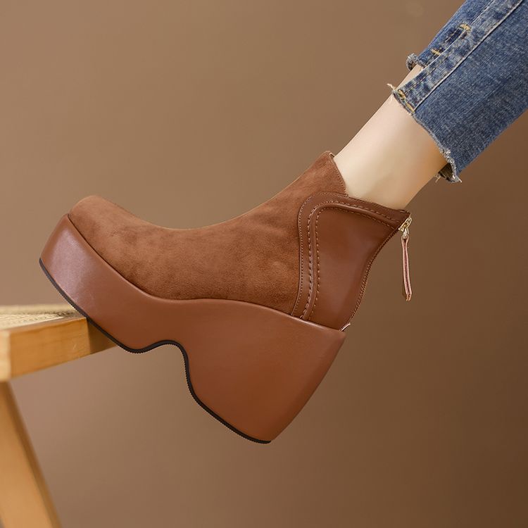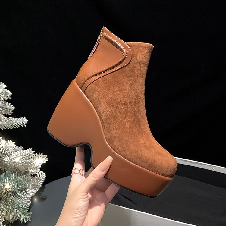 【预售5天】小个子厚底马丁靴女松糕瘦瘦靴秋冬季新款超高跟坡跟女短靴ZMXY&JL2648