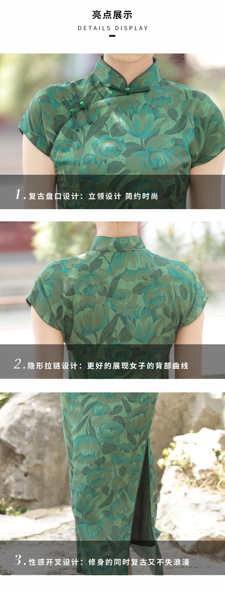 温婉优雅,淑女范真开墨绿色旗袍春夏新款改良年轻款YG-2247
