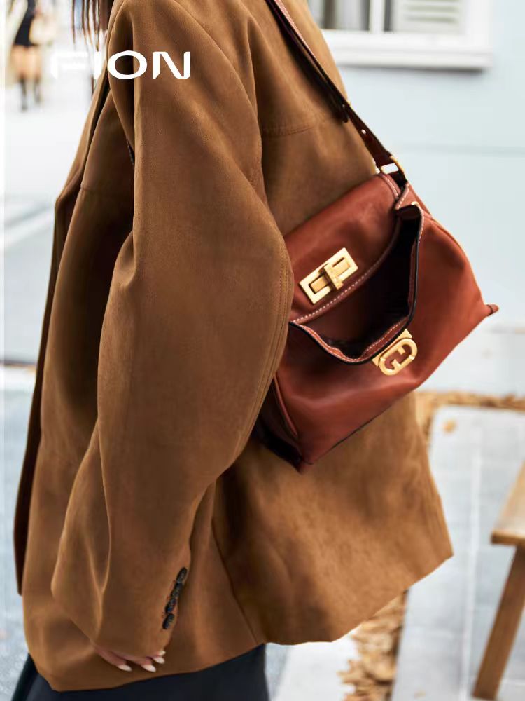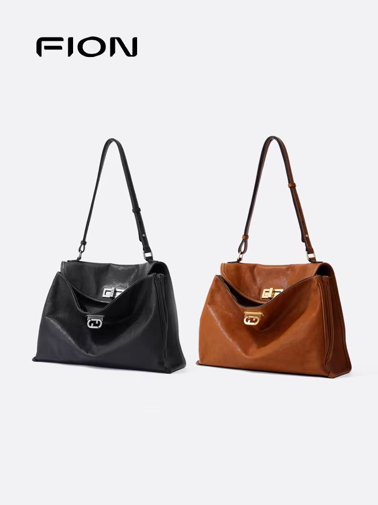 Fion/菲安妮真皮托特包2024秋冬新款大容量植鞣皮单肩斜挎包包女