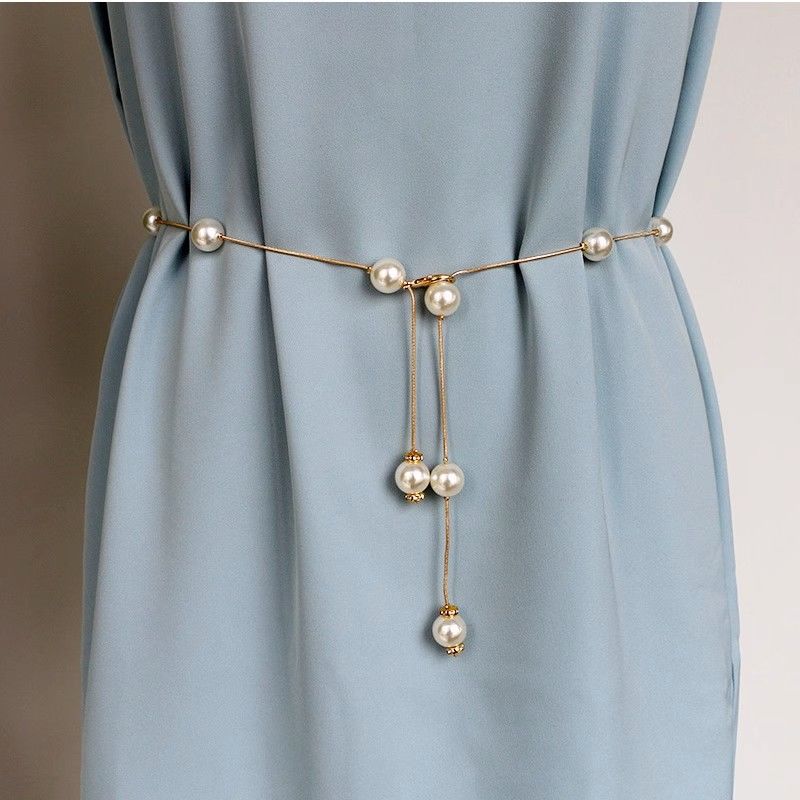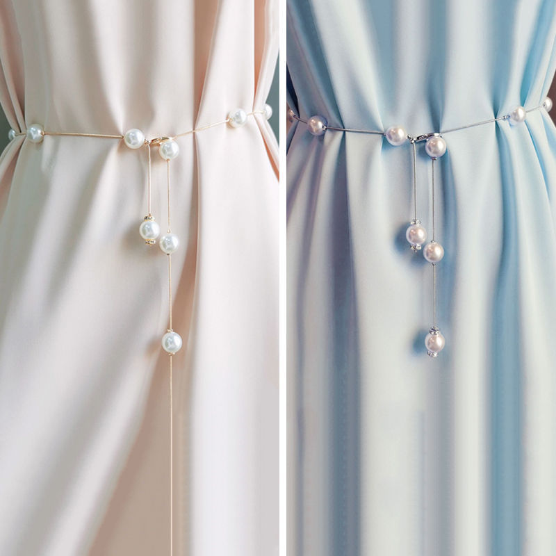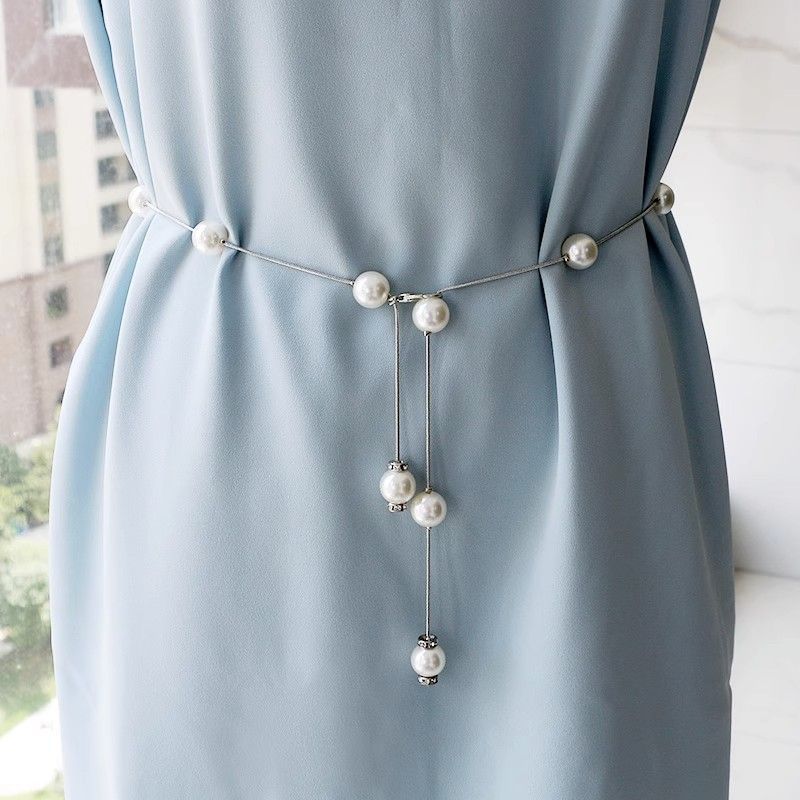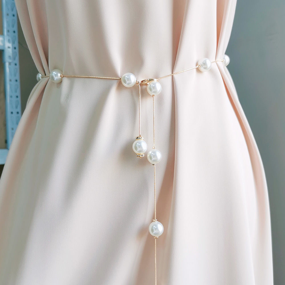 雀说链条细腰带女连衣裙腰链收腰夏季配饰配裙子珍珠百搭装饰腰带配件AL3375
