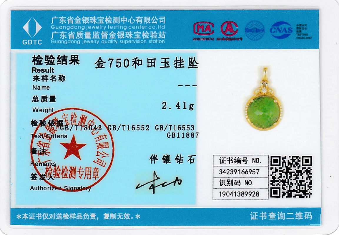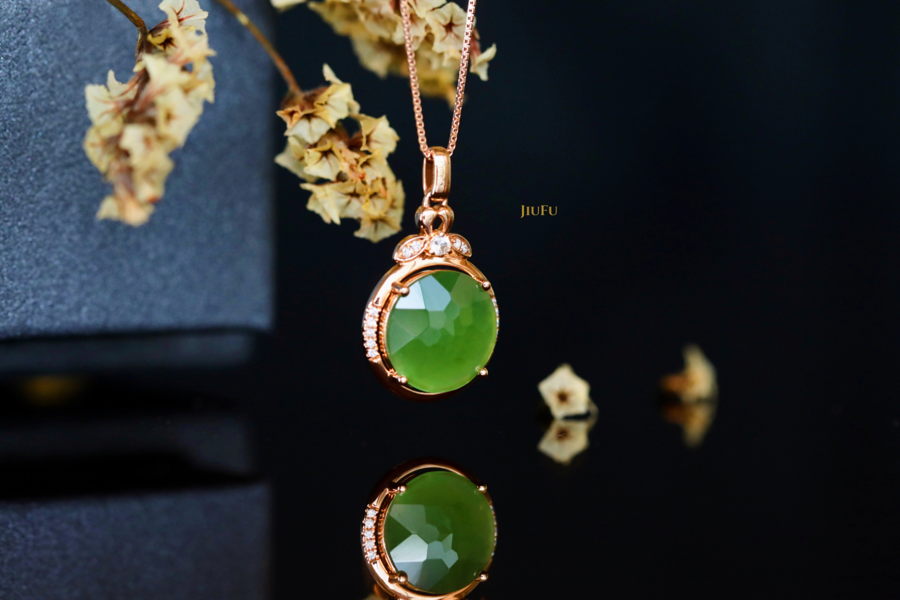 18K玫瑰金和田玉(碧玉)吊坠