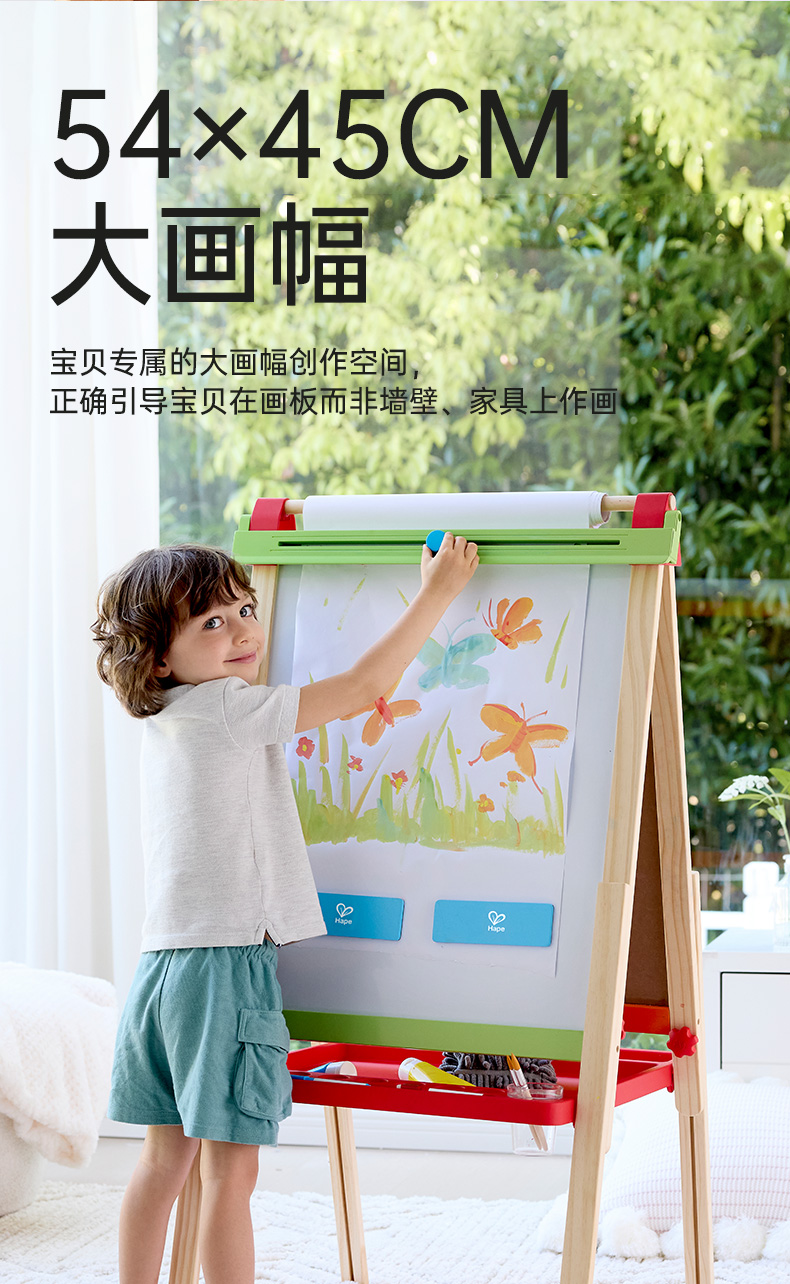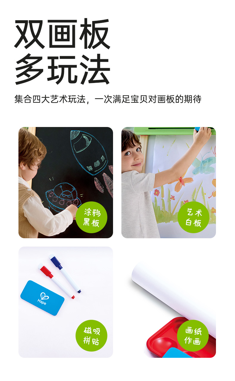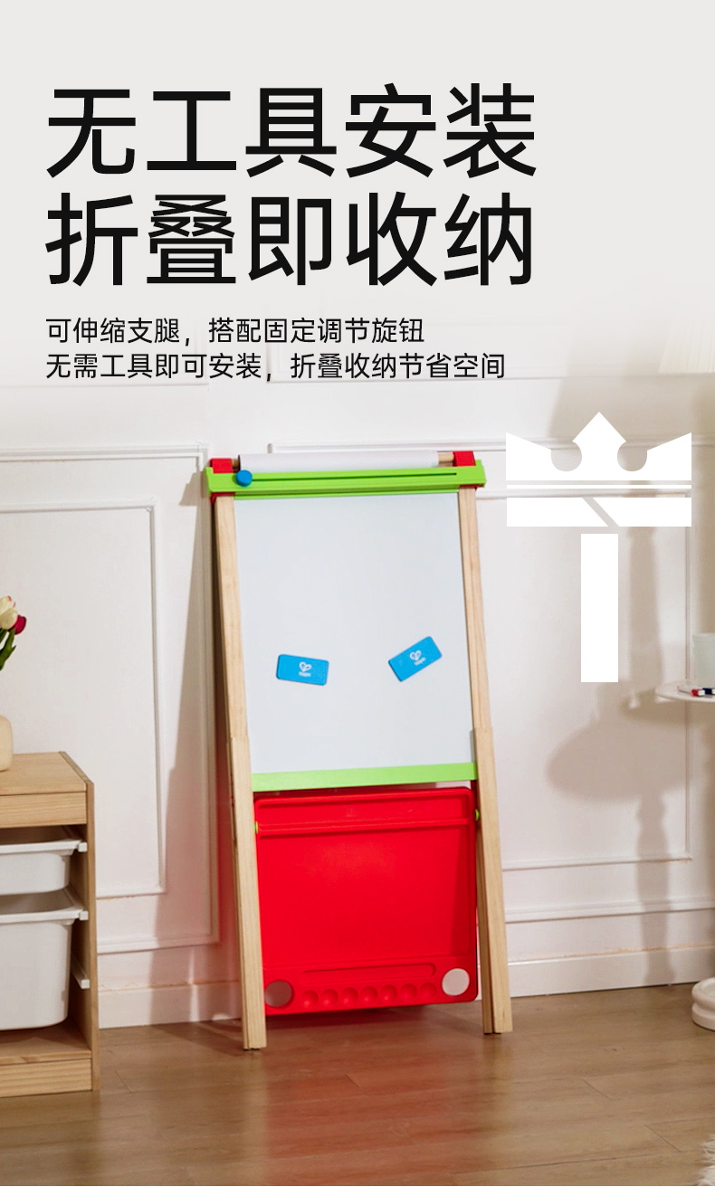 Hape儿童画板 可升降磁吸折叠多功能黑白板 早教3-6岁男女儿童礼物 小艺术家画架 E2016