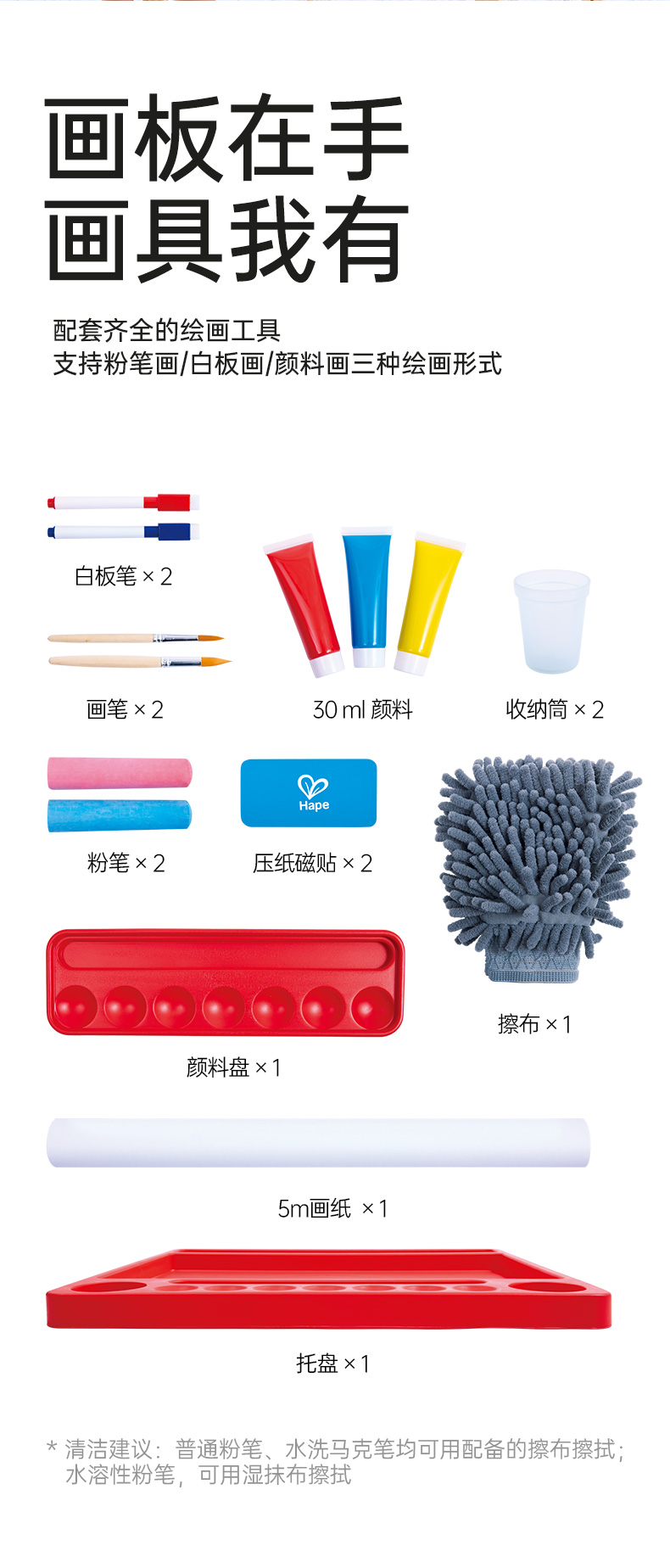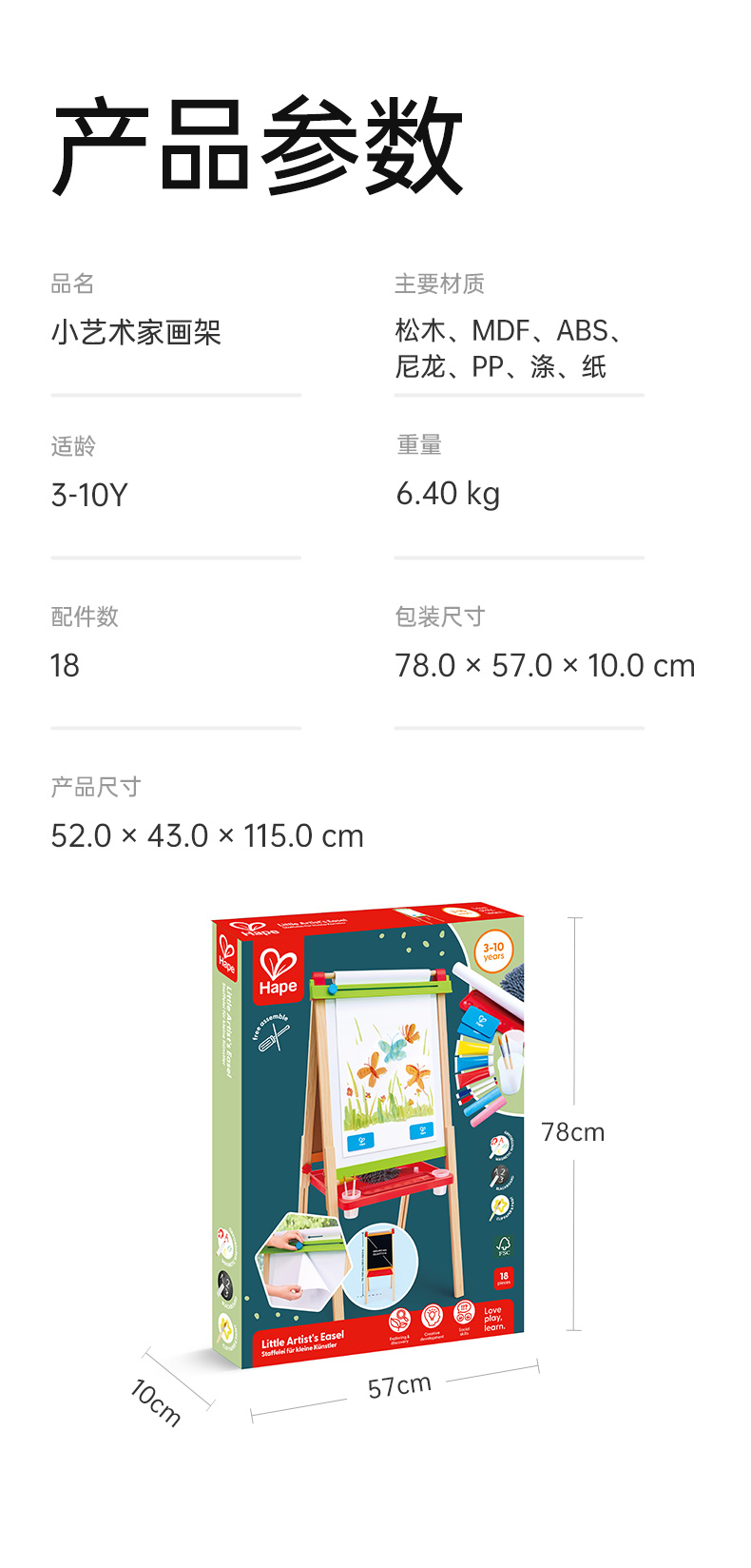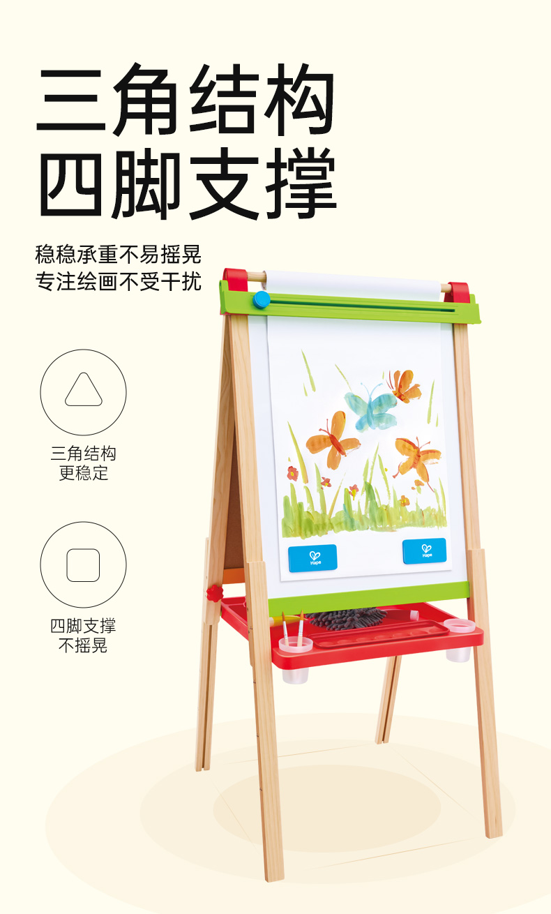 Hape儿童画板 可升降磁吸折叠多功能黑白板 早教3-6岁男女儿童礼物 小艺术家画架 E2016