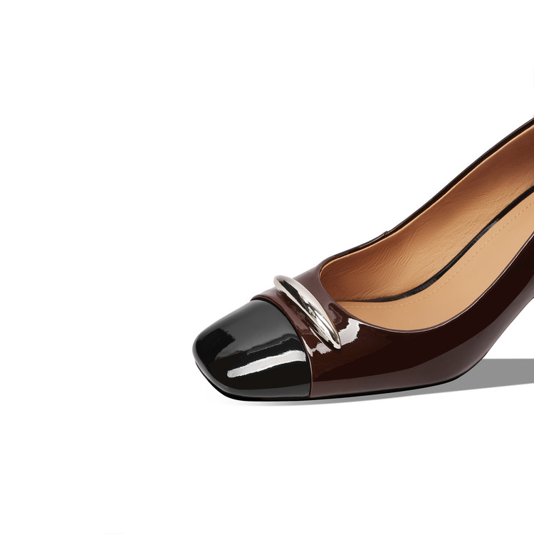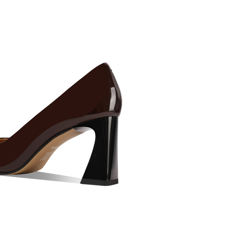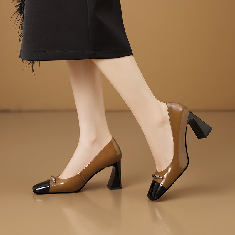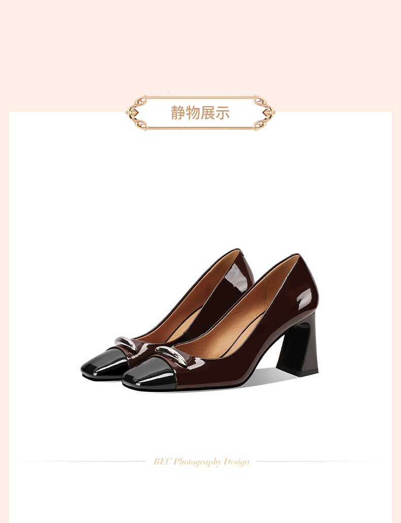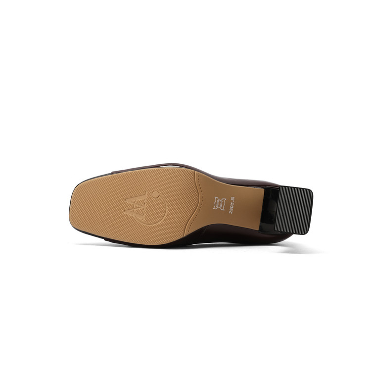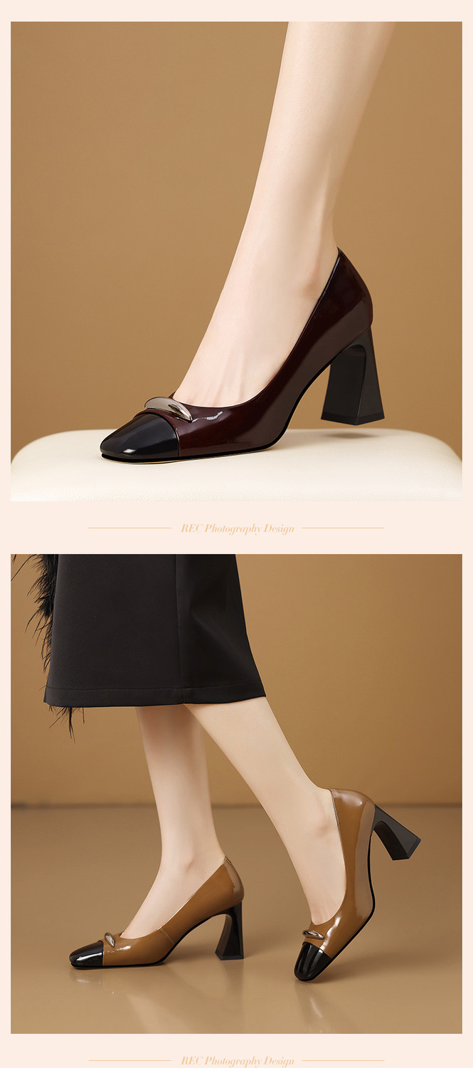 【预售5天】酒红色气质通勤高跟鞋女款秋季真皮方头高级感粗跟浅口单鞋HY&H3704