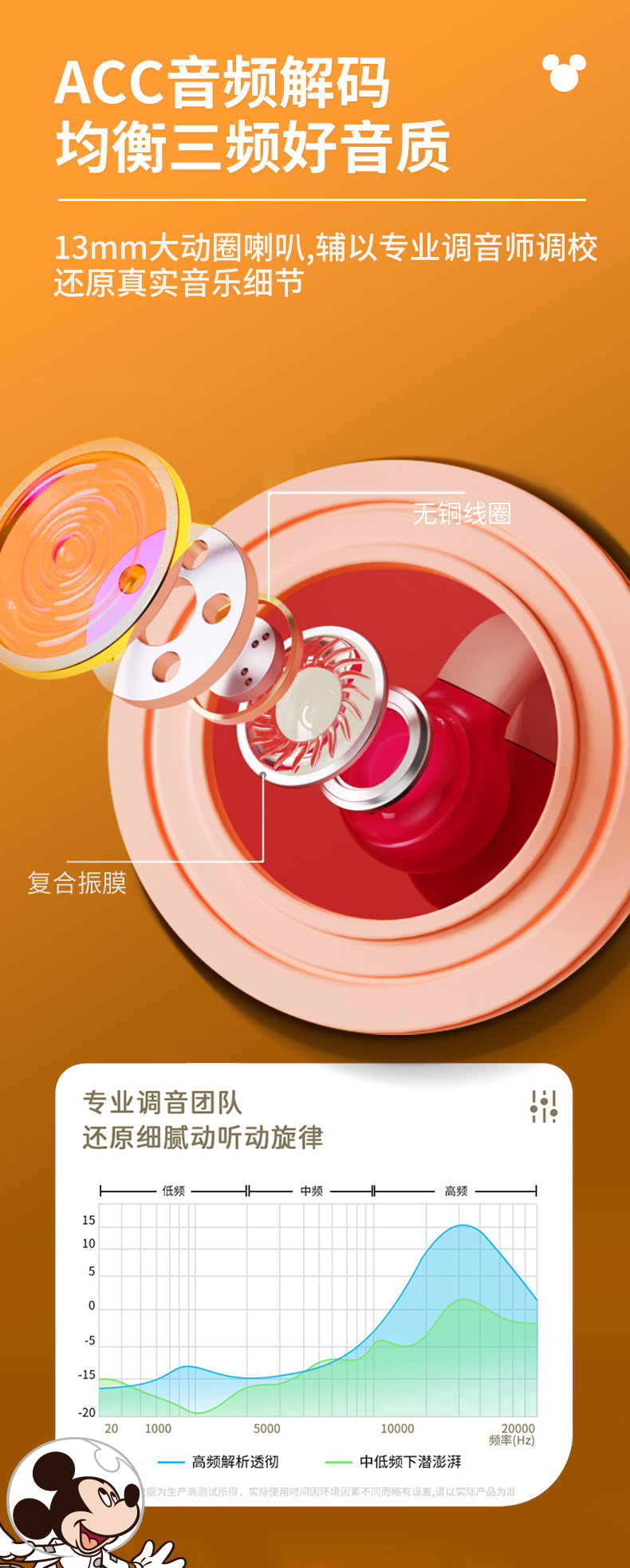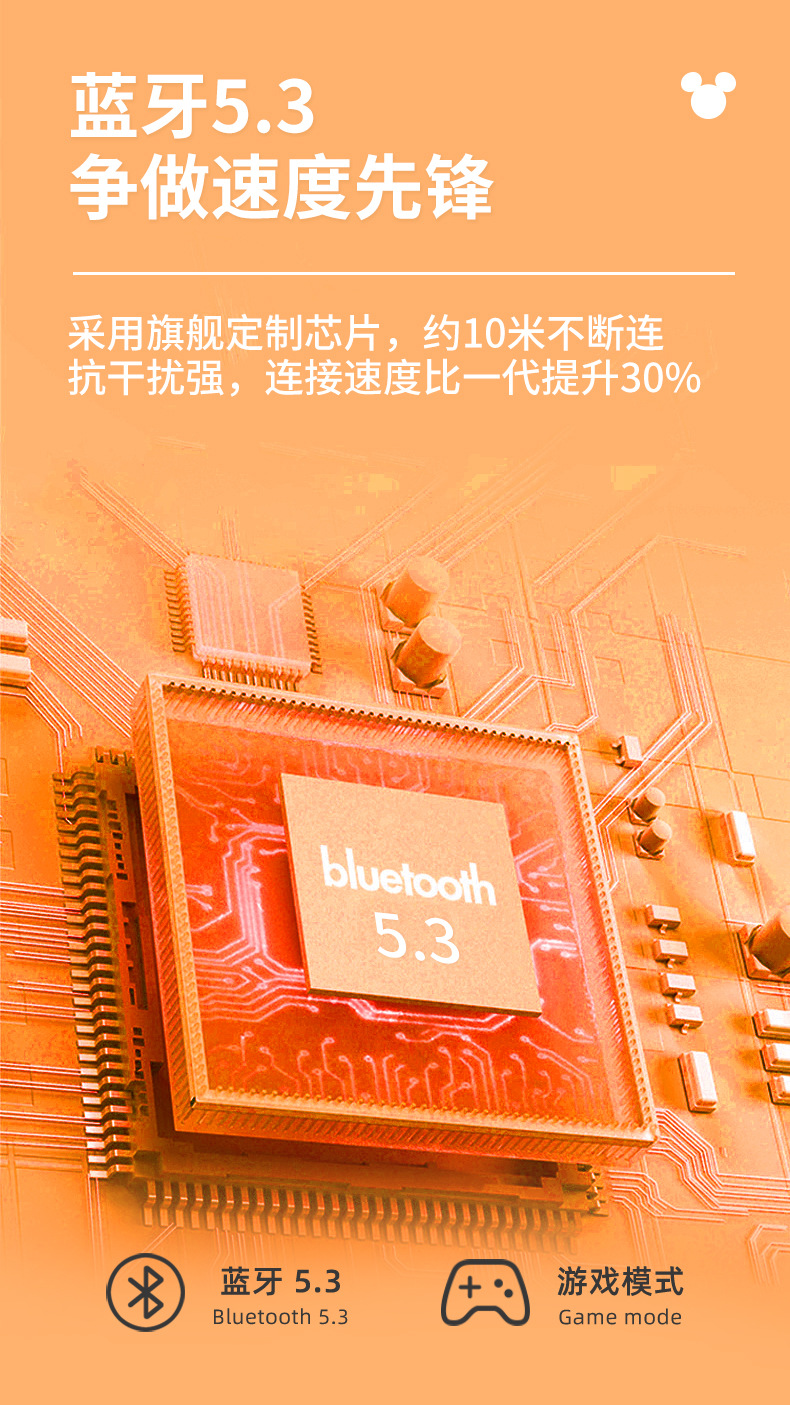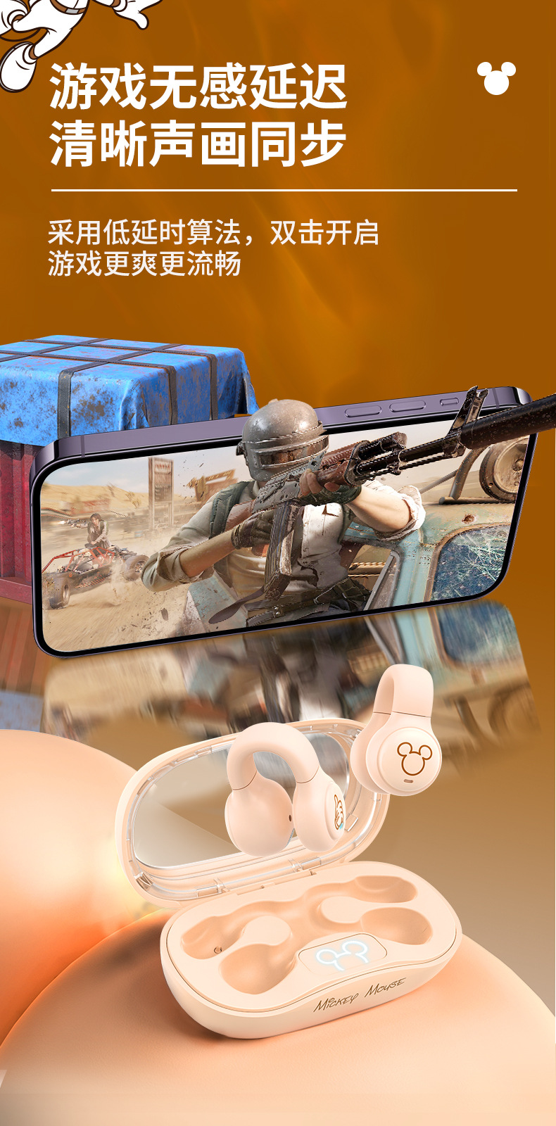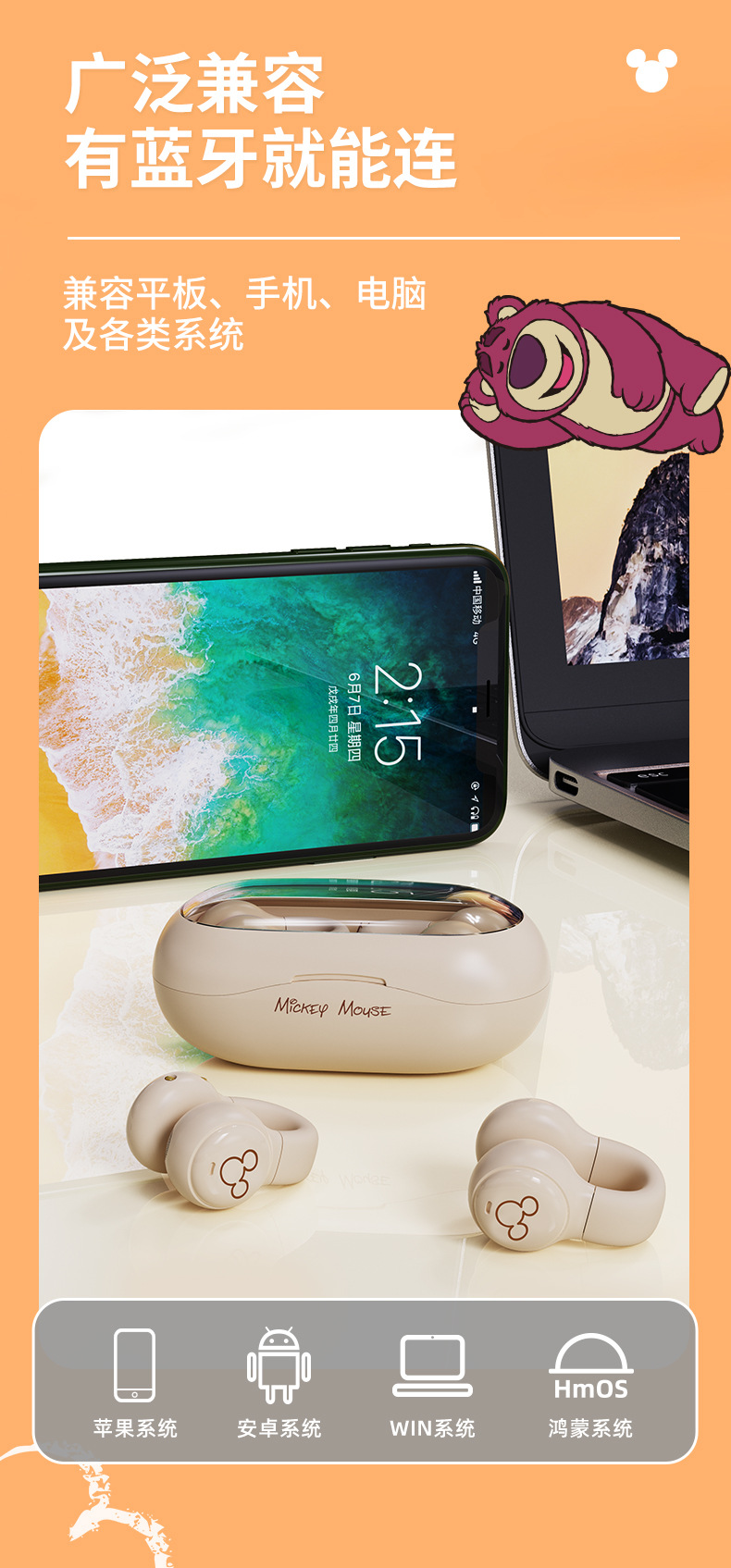 Disny/迪士新款夹耳式蓝牙耳机透明仓开盖即连呼吸灯设计