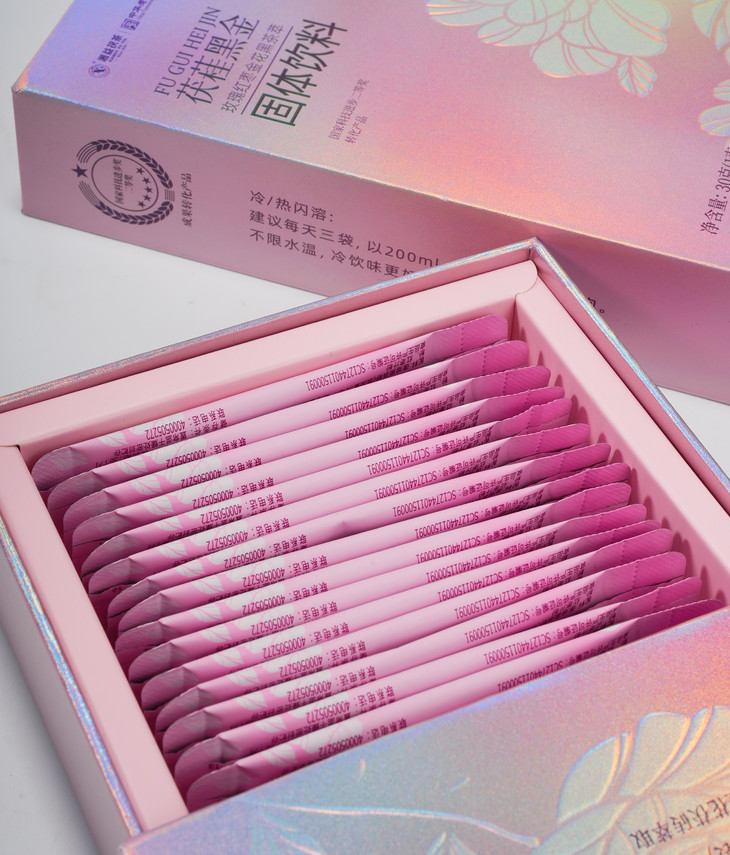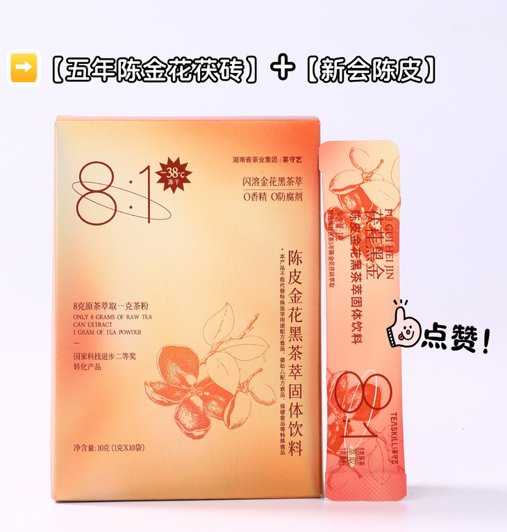它采用了独特的低温萃取和冻干锁鲜技术,把黑茶中的精华——茯茶素A+B和金花香精提取出来。